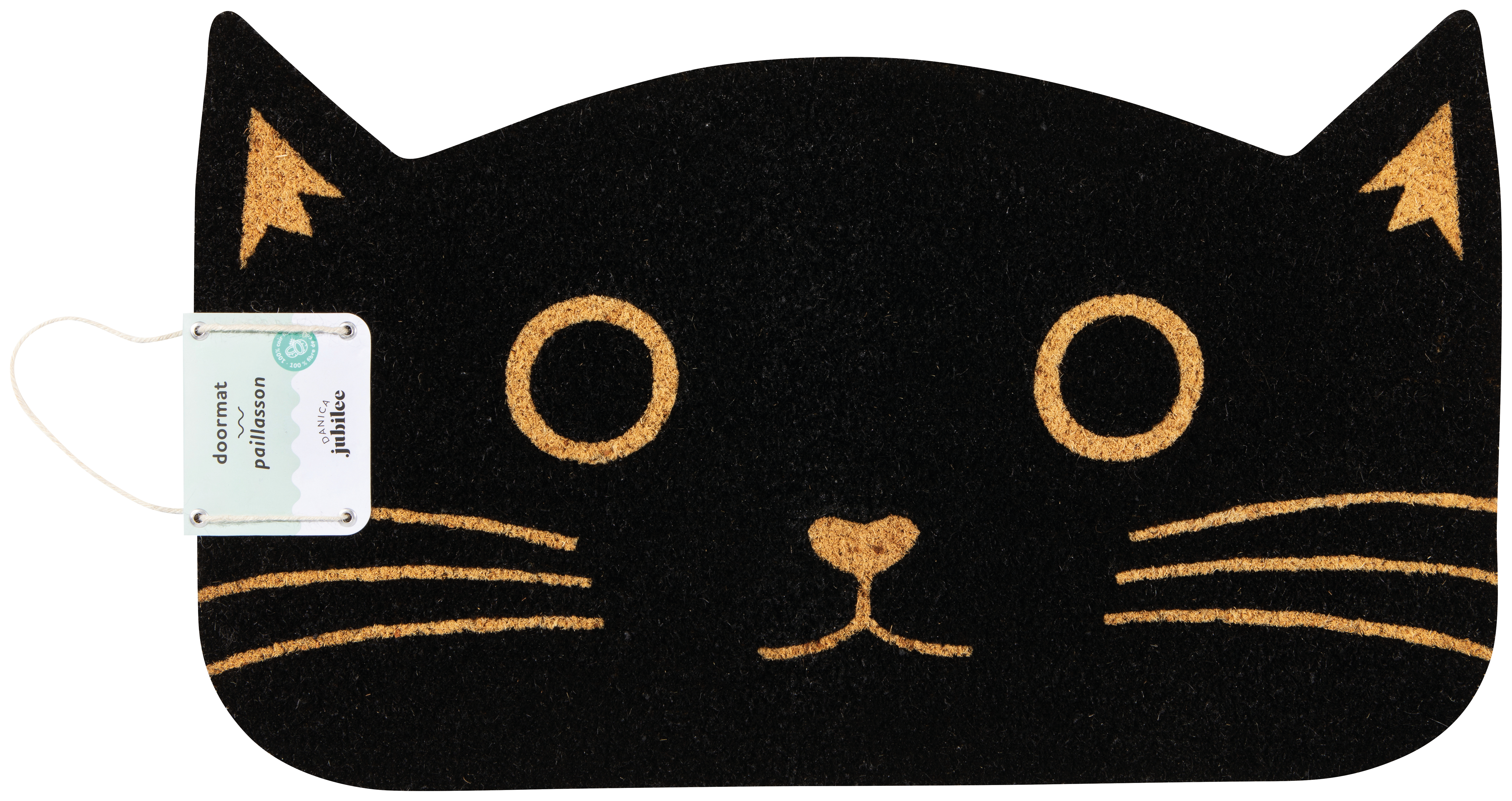 - These coconut fiber mats will make visitors feel welcome. Printed with fade resistant inks, they have a strong U-shaped label with jute rope hook for easy hanging. The coir fiber is hyper renewable and backed with durable vinyl. Dimensions: W18 x L30in Material: Body: 100% Coir Backing: 100% Vinyl Care Instructions: Spot clean only.