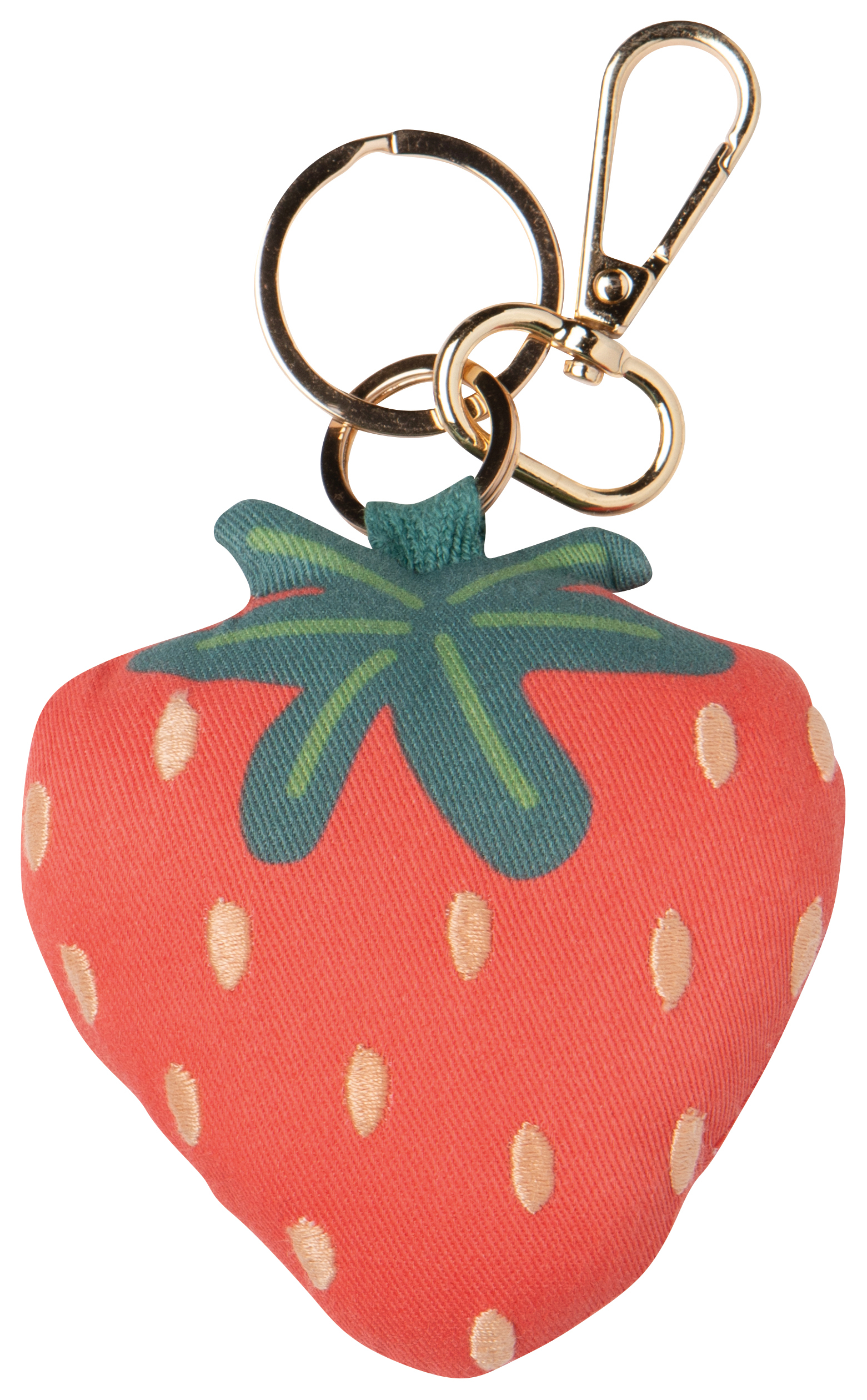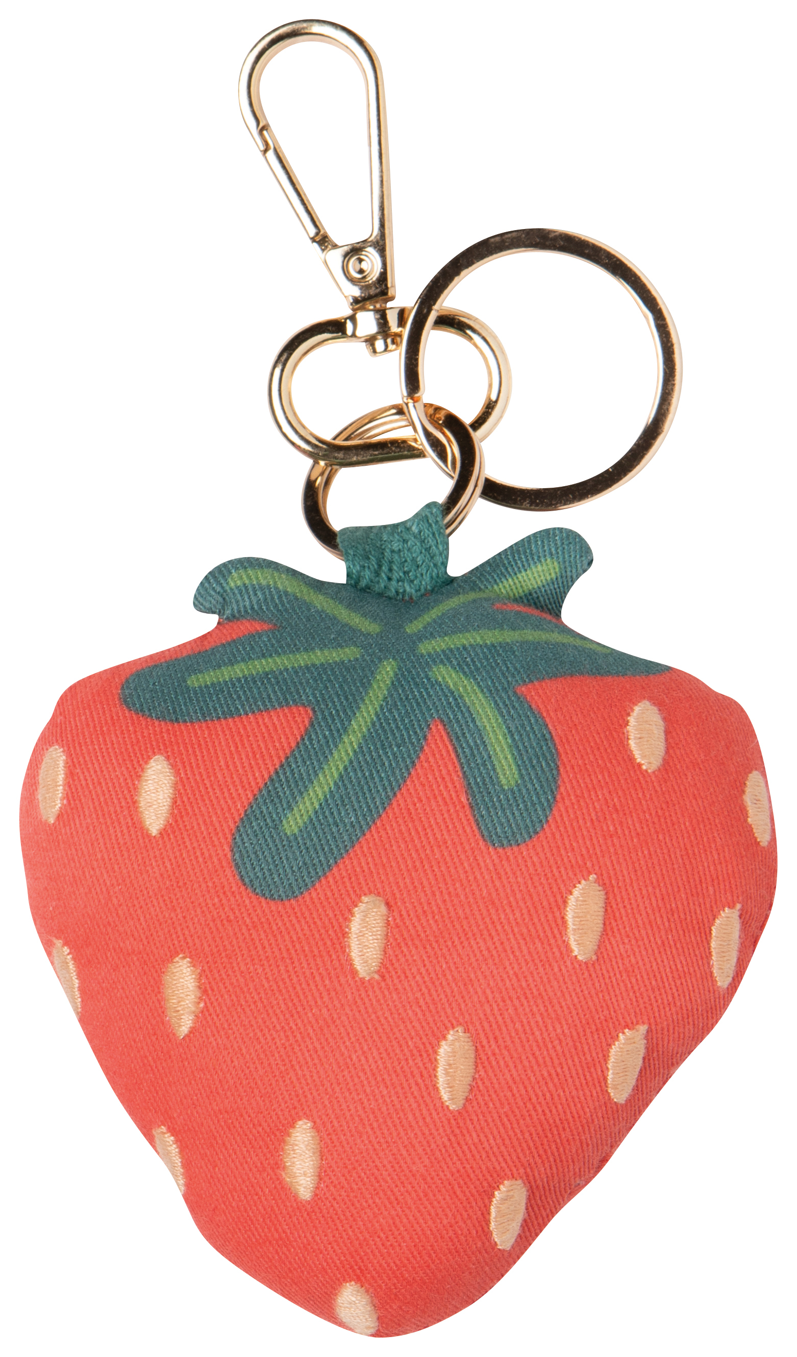 - Soak up the sun, jam to your own beat, and let your ideas ripen in forever fields with this Berry Sweet cotton bag charm. Making keys feel famous and bags brag-worthy, our plush and playful Bag Charm adds sparkle and style to everyday items. Collectible, giftable, and packed with personality. Dimensions: W3.5 x L4in Material: Outer: 100% Cotton Fill: 100% Polyester Hardware: 100% Zinc Care Instructions: Spot clean only.
