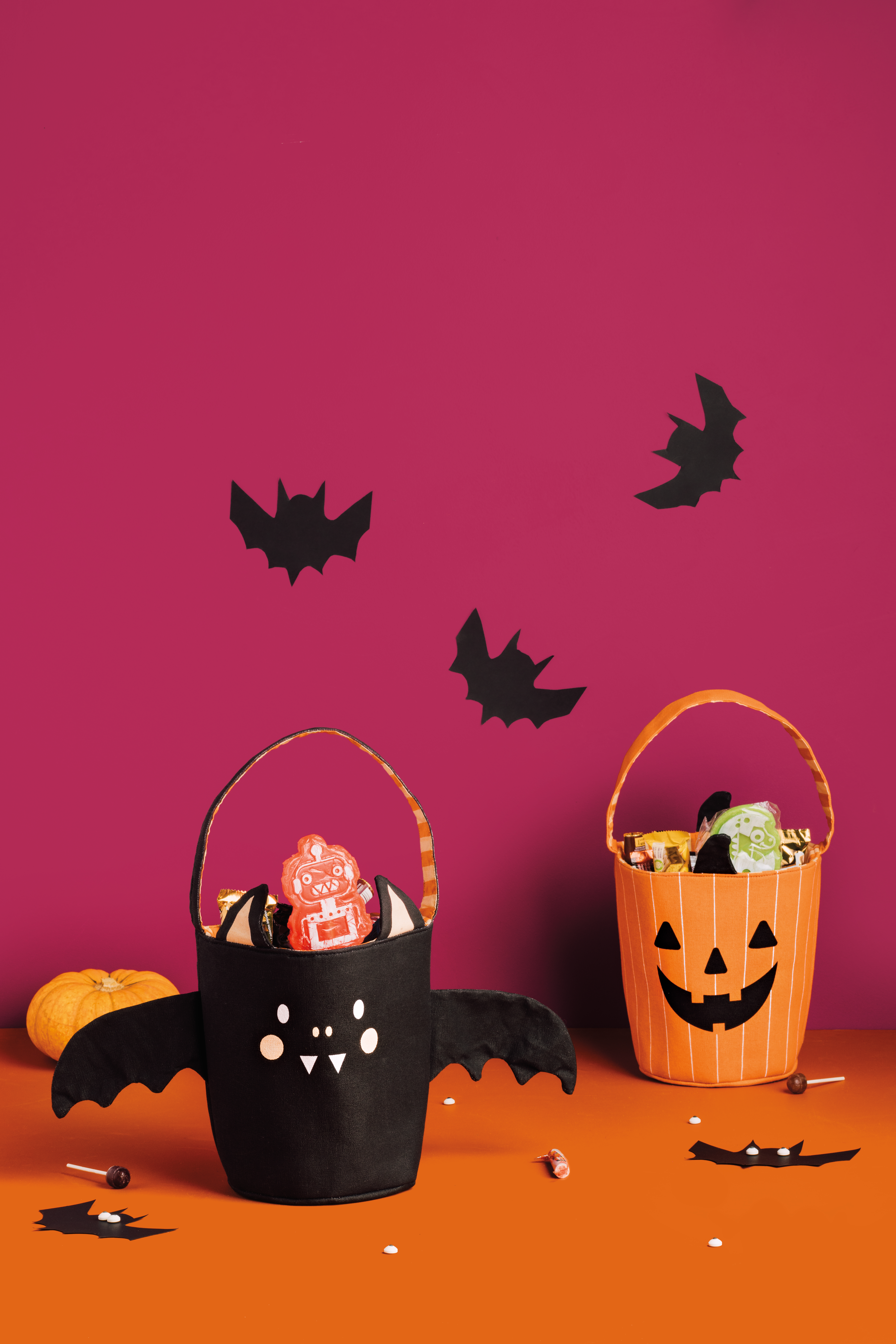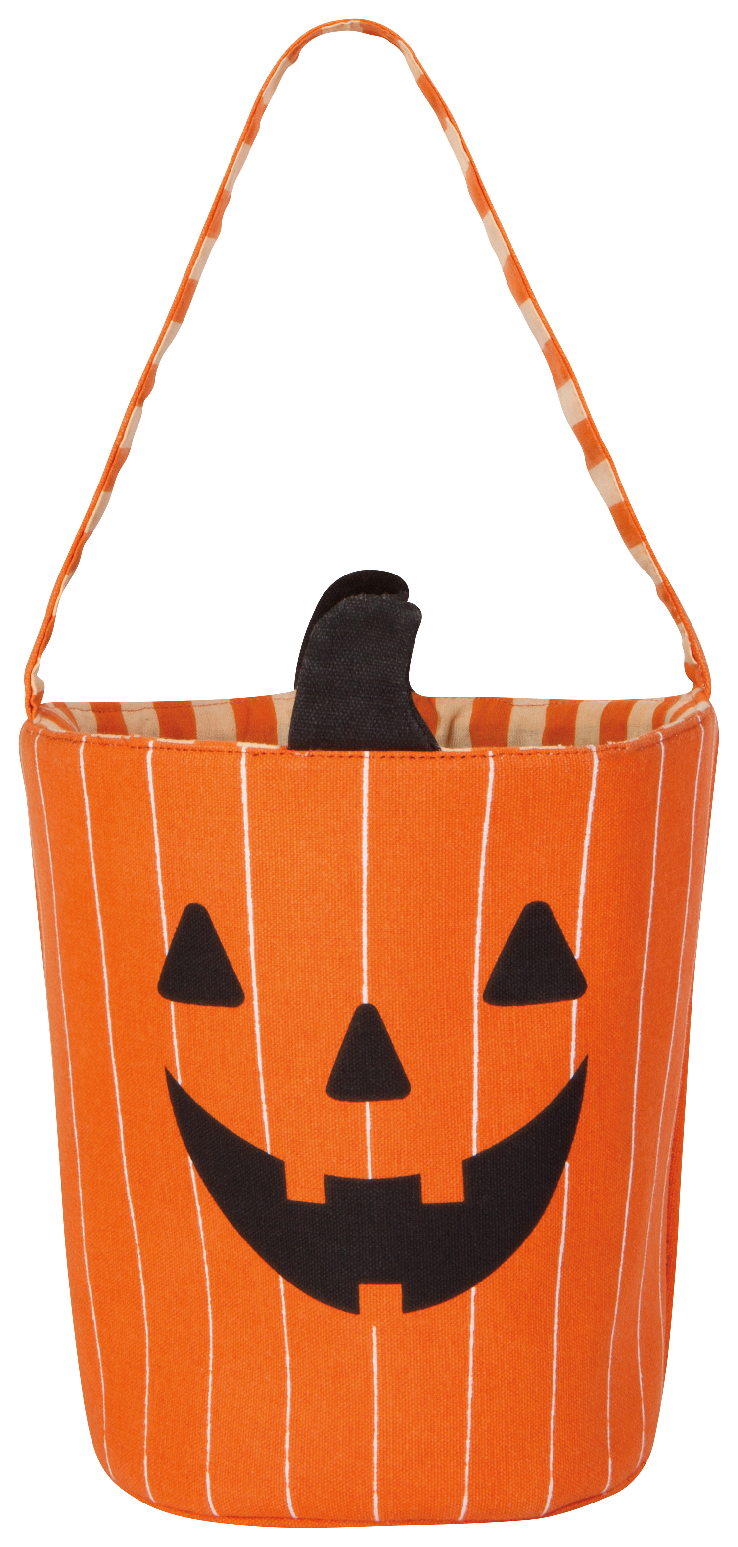 - A gleeful, ghoulish grin welcomes some frightfully good fun. Glowing with good humour, this colorful basket is ready for some sweet trick-or-treating. With a soft but sturdy structure, this reusable bag will haunt many happy Halloween adventures. • Dimensions: DIA9 x H8in • Material: 100% Cotton • Care Instructions: Spot clean only