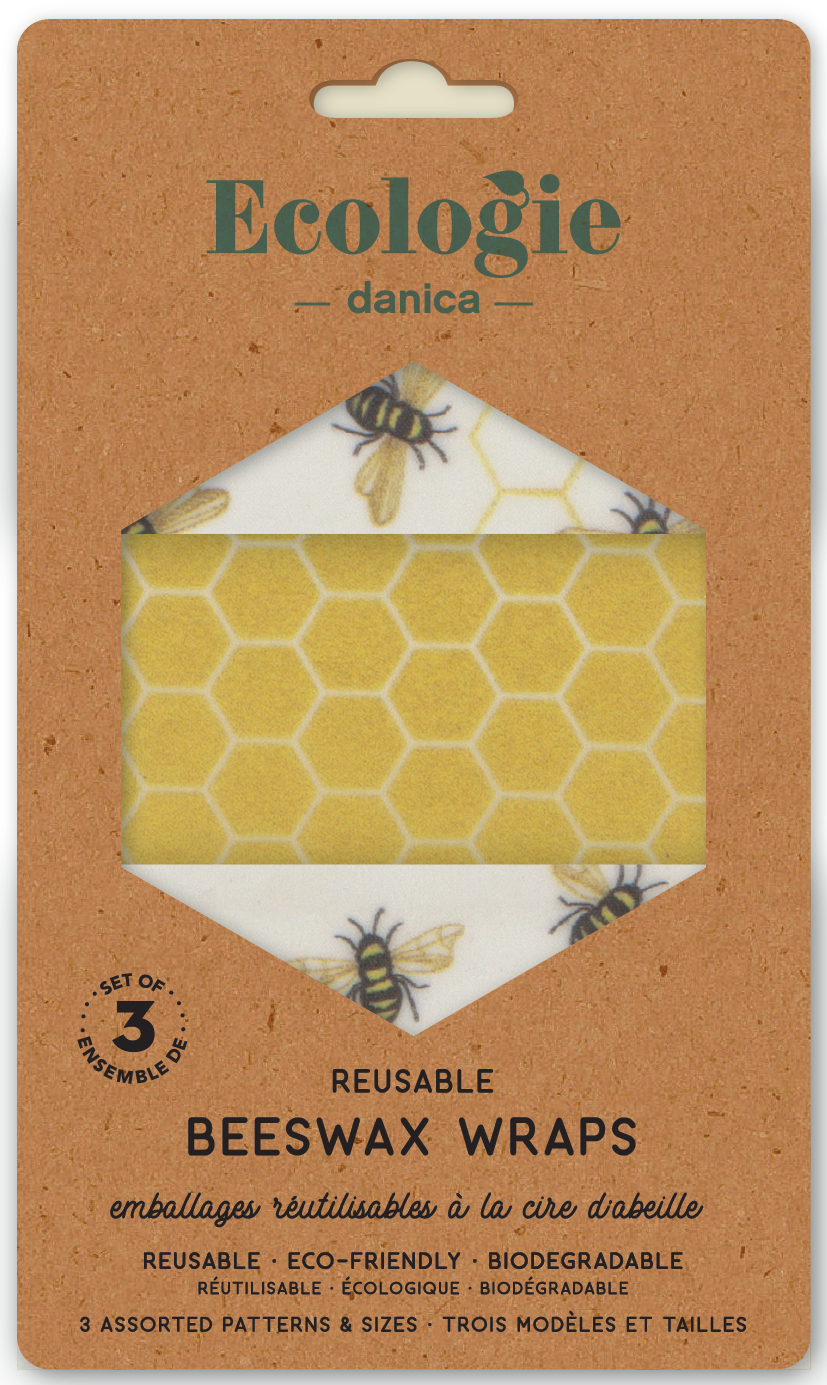 - Our Beeswax Wraps ‘freshen up’ food storage, in the fridge or on the go. In sets of 3, these vibrant and colorful wraps are washable, durable and reusable for a year or more - your leftovers and lunchbag have never looked so good! Wash, wrap, repeat! Completely safe and nontoxic, beeswax wraps can be used with a variety of foods. Reuse your beautifully durable beeswax food wraps again and again for about one year, then add it to your compost bin. Dimensions: W7 x L8in / W10 x L11in / W13 x L13.75in Material: 100% Cotton / Beeswax / Coconut Oil / Tree Resin Care Instructions: Hand wash in cold water. Lay flat to dry.