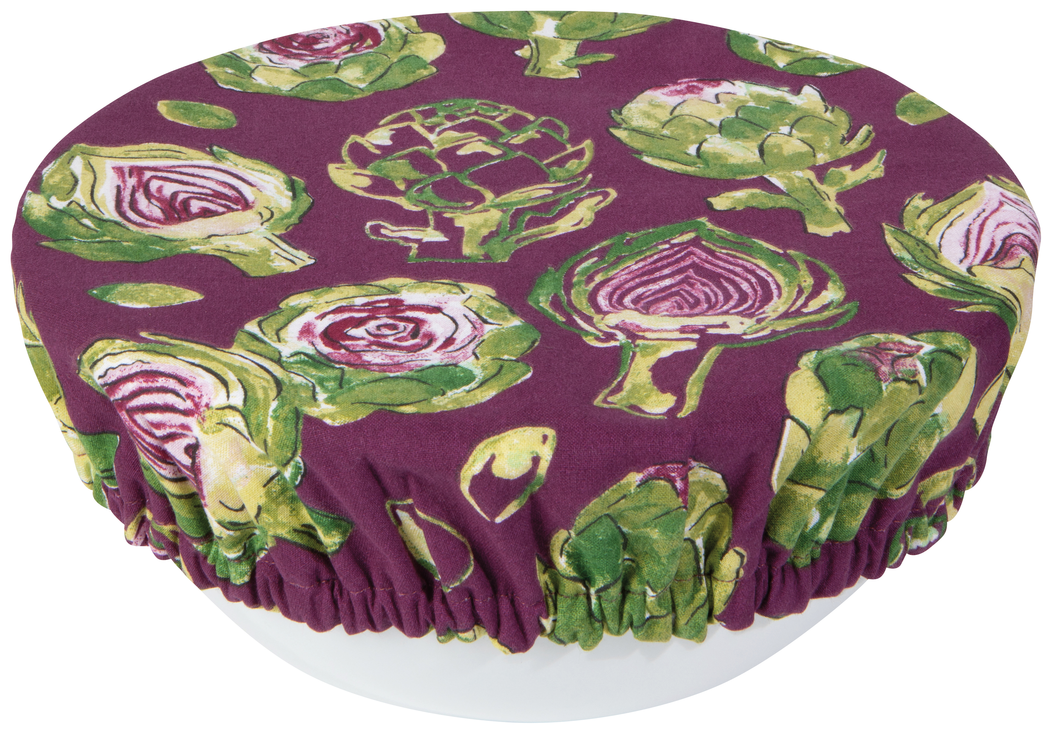 - Eliminate plastic wrap with these reusable Artichoke bowl covers. The lining prevents moisture from escaping and keeps food happy. Remove, machine wash, and repeat. Nature’s artistry meets farm-to-table living in our Artichoke collection. Painterly watercolor, expressive ink details, and hearty purples and greens elevate gourmet endeavors. Dimensions: DIA7.5in / DIA9.25in Material: Outer: 100% Cotton Lining: 50% Polyurethane, 50% Polyester Care Instructions: Machine wash warm, lay flat to dry. Do not microwave.