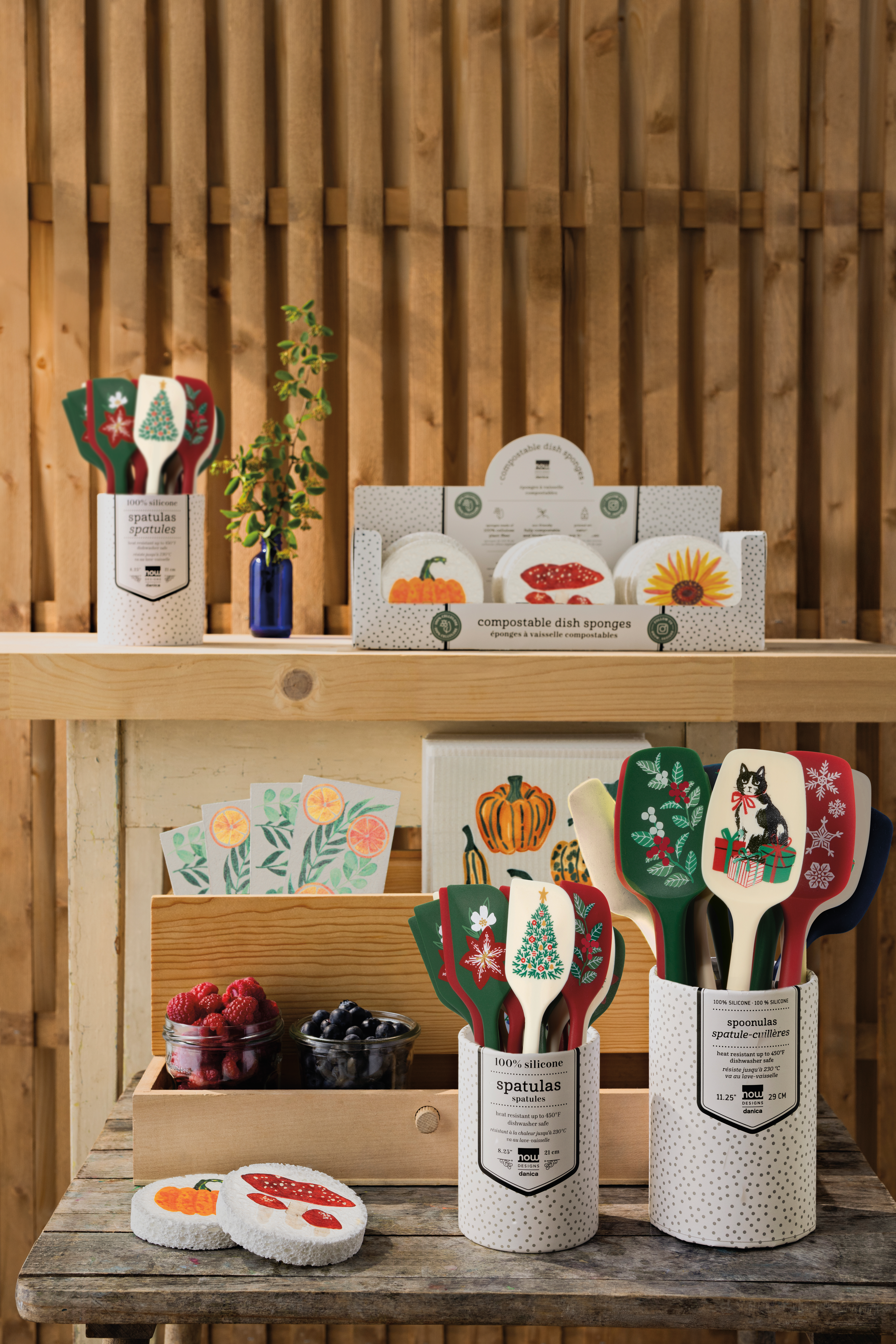 - One for me, one for you — compostable Autumn Bounty sponges make design-savvy and eco-conscious additions to gifts and purchases. Our counter display keeps these lovely printed sponges in view and top of mind. Dimensions: CDU: L12.75 x D7 x H3.75in / Sponge: DIA3.5in Material: 100% Cellulose Care Instructions: Rinse, squeeze to remove excess water, and place in a dry spot to allow sponge to dry in between uses. Place in the dishwasher to disinfect. Replace every 3 months or as needed.