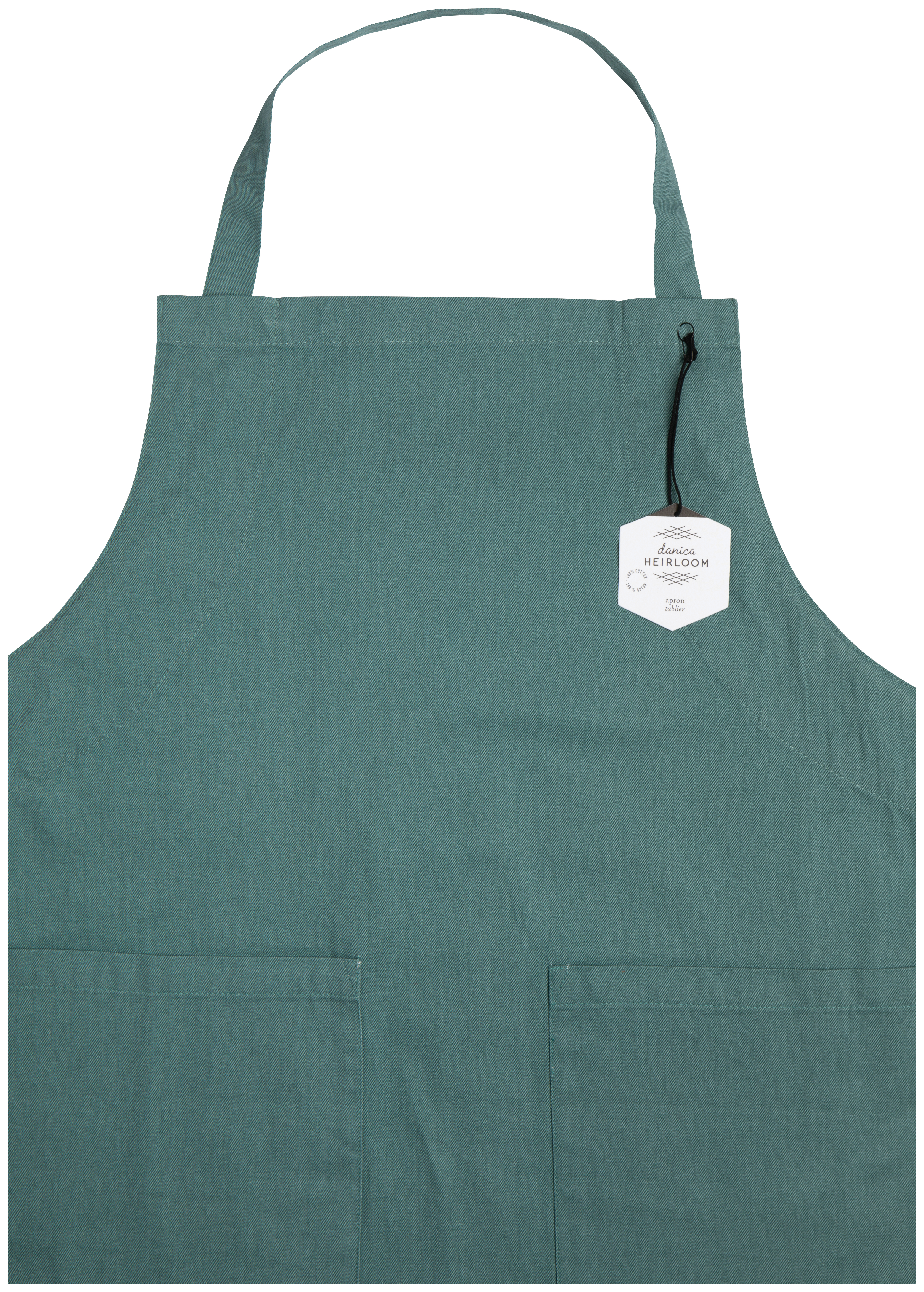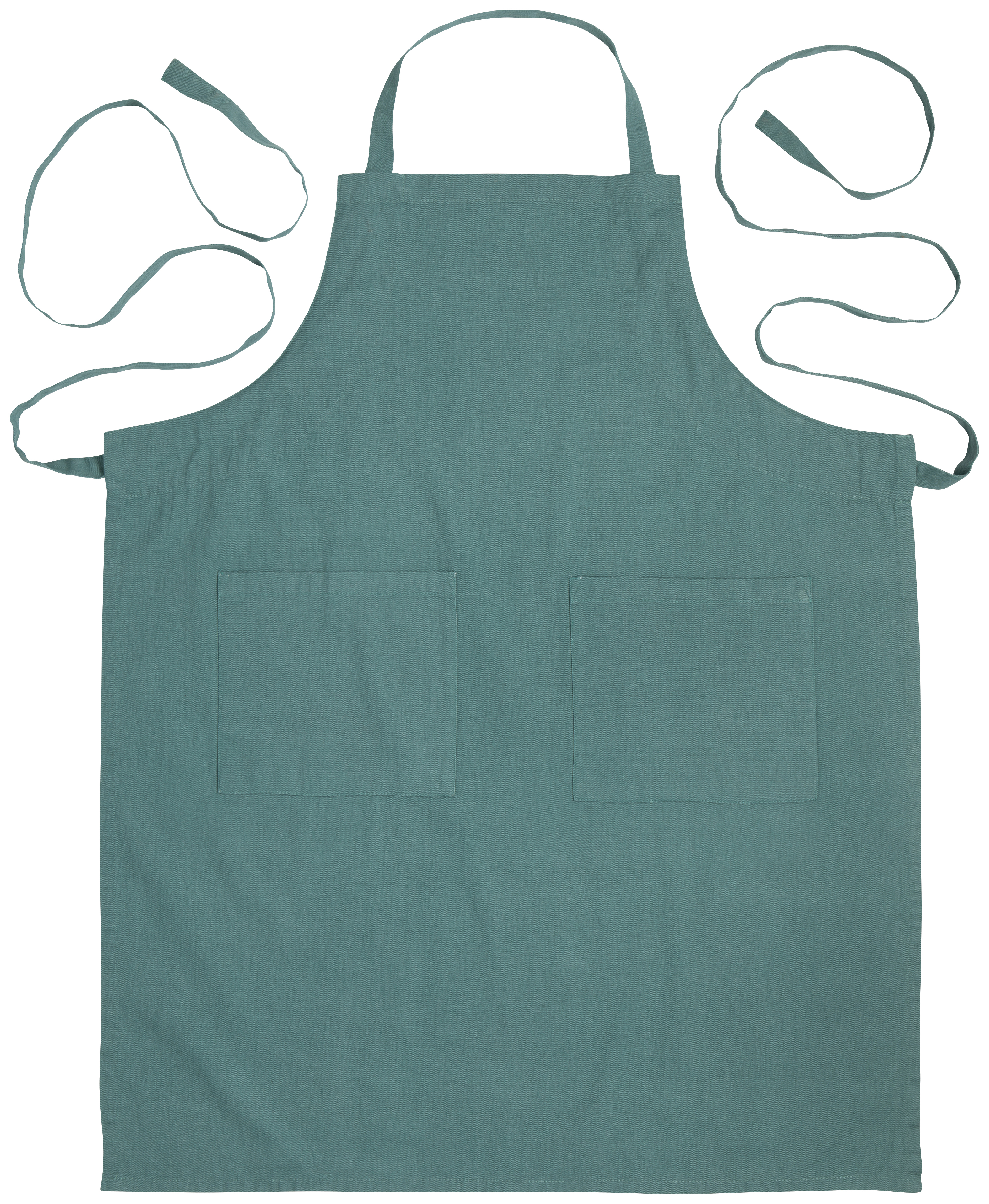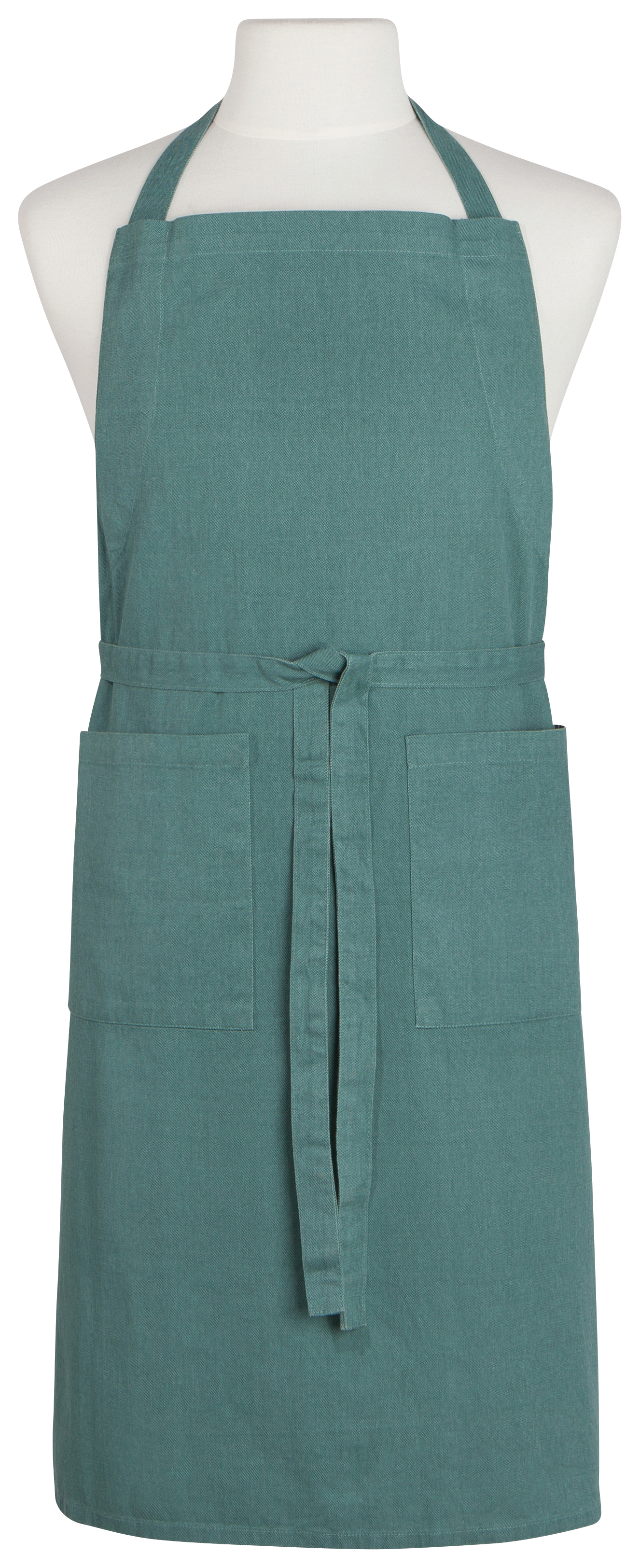 - Soft stonewashed cotton gives these aprons a lived-in feel. Their generous size features two pockets, an adjustable strap, and a hanging loop for easy merchandising. Part of the medley collection of color-coordinated kitchen and table linens from Danica heirloom. Dimensions: W28 x L36in Material: 100% Cotton Care Instructions: Machine wash cold, hang to dry.