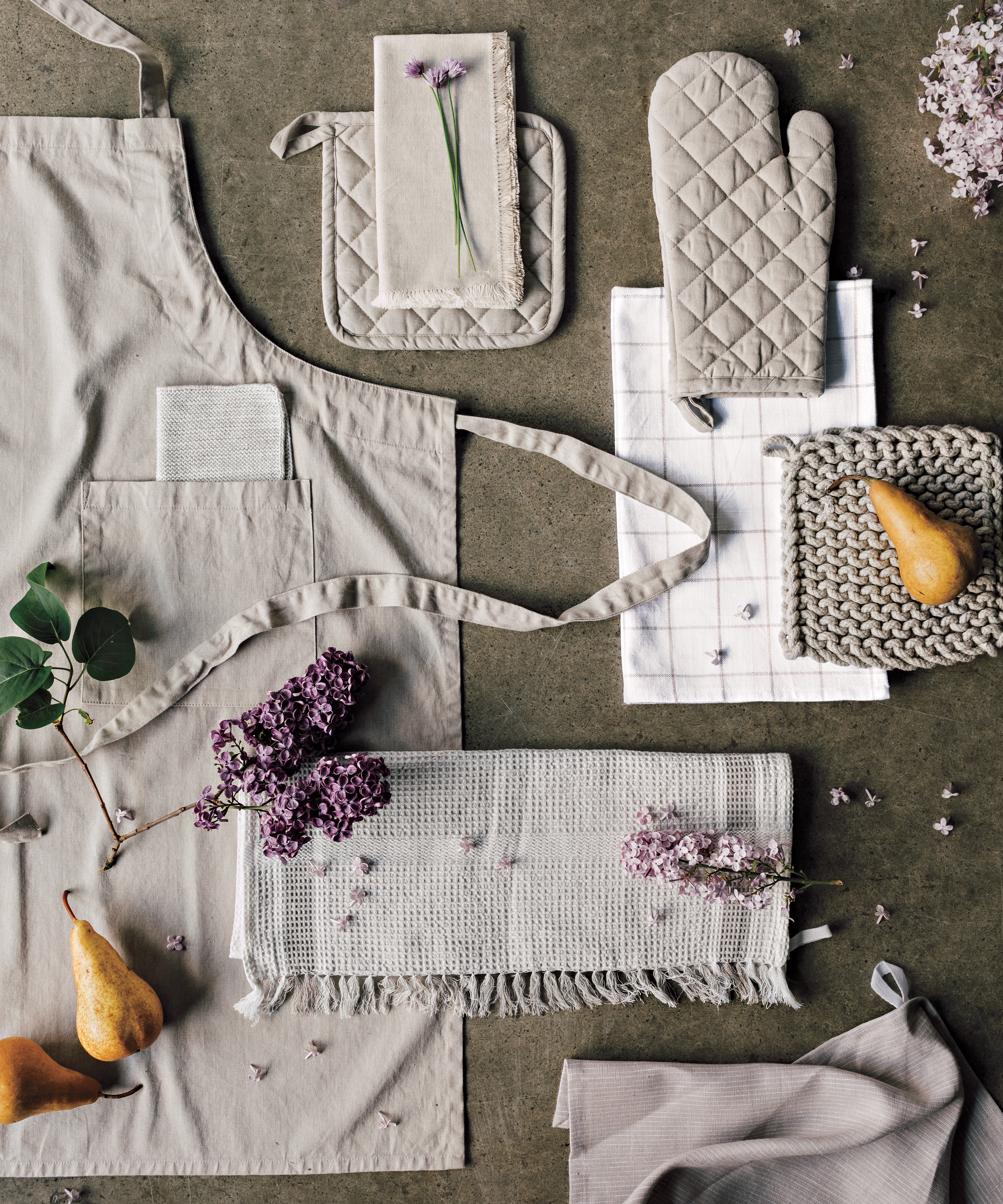 - Soft stonewashed cotton gives these aprons a lived-in feel. Their generous Size features two pockets, an adjustable strap and a hanging loop for easy merchandising. Part of the Medley collection of color-coordinated kitchen and table linens from Danica Heirloom. Dimensions: W28 x L36in Material: 100% Cotton Care Instructions: Machine wash cold, hang to dry.