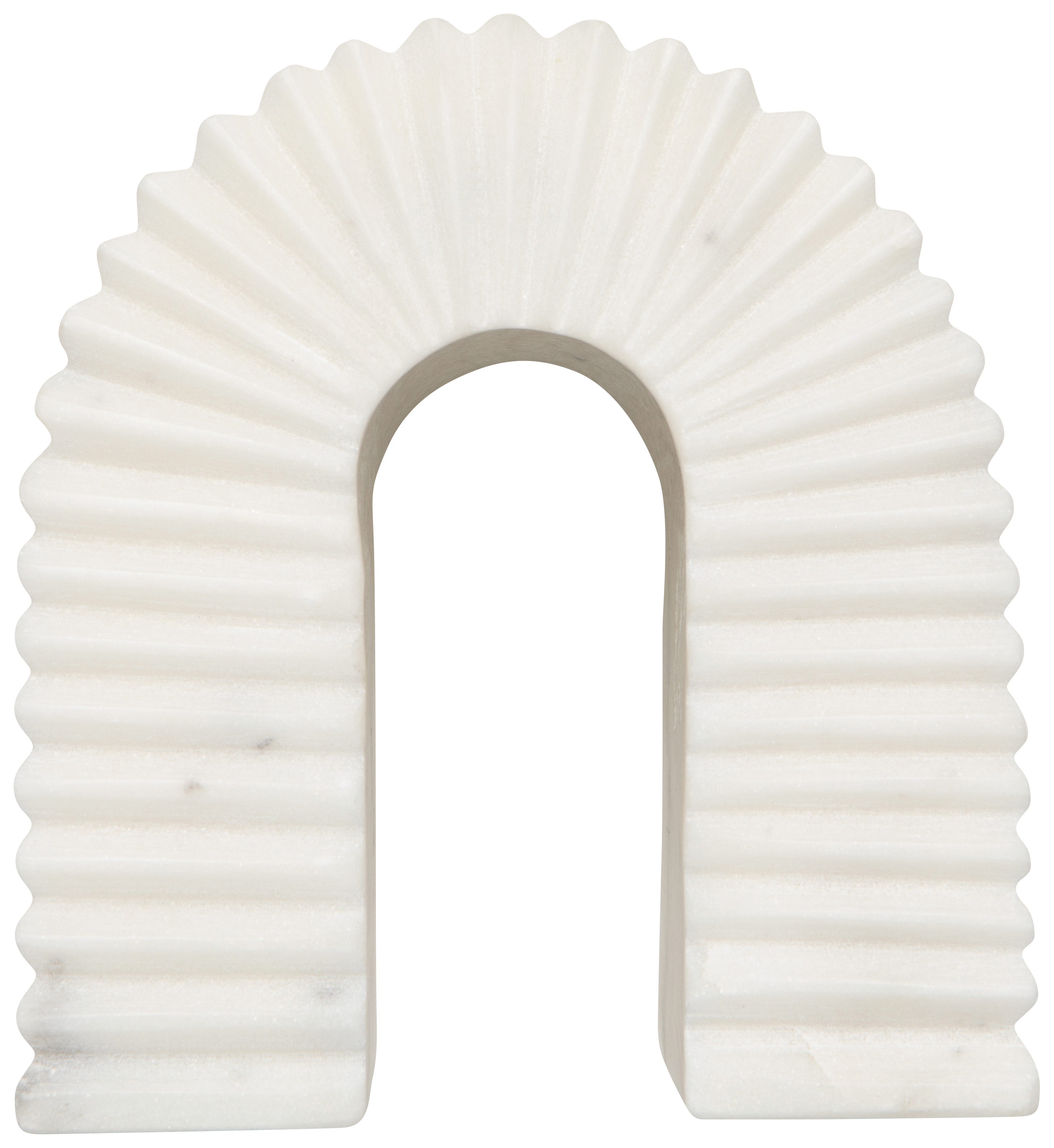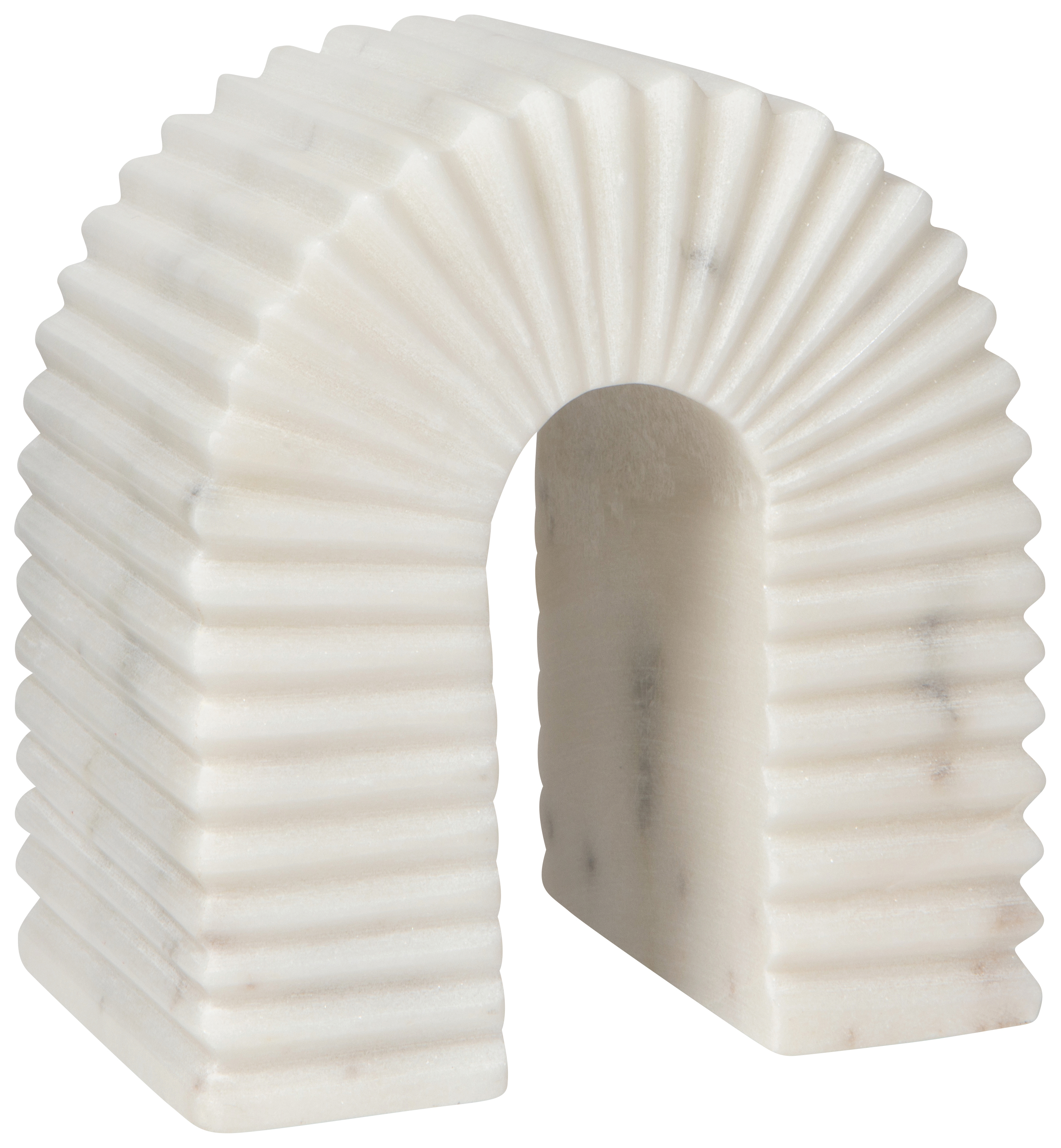 - The clean, cool Arch creates a canvas for stylish entertaining. Carved from marble, this sculptural form captures the poetry of stone. Veins and contours are polished to a soft, luminous sheen, adding artful interest to shelves, mantels, and curated displays. It can also double as a bookend to elegantly prop up your cherished volumes. Dimensions: W3 x L4.5 x H5in Material: 100% Marble Care Instructions: Wipe with a soft damp cloth.