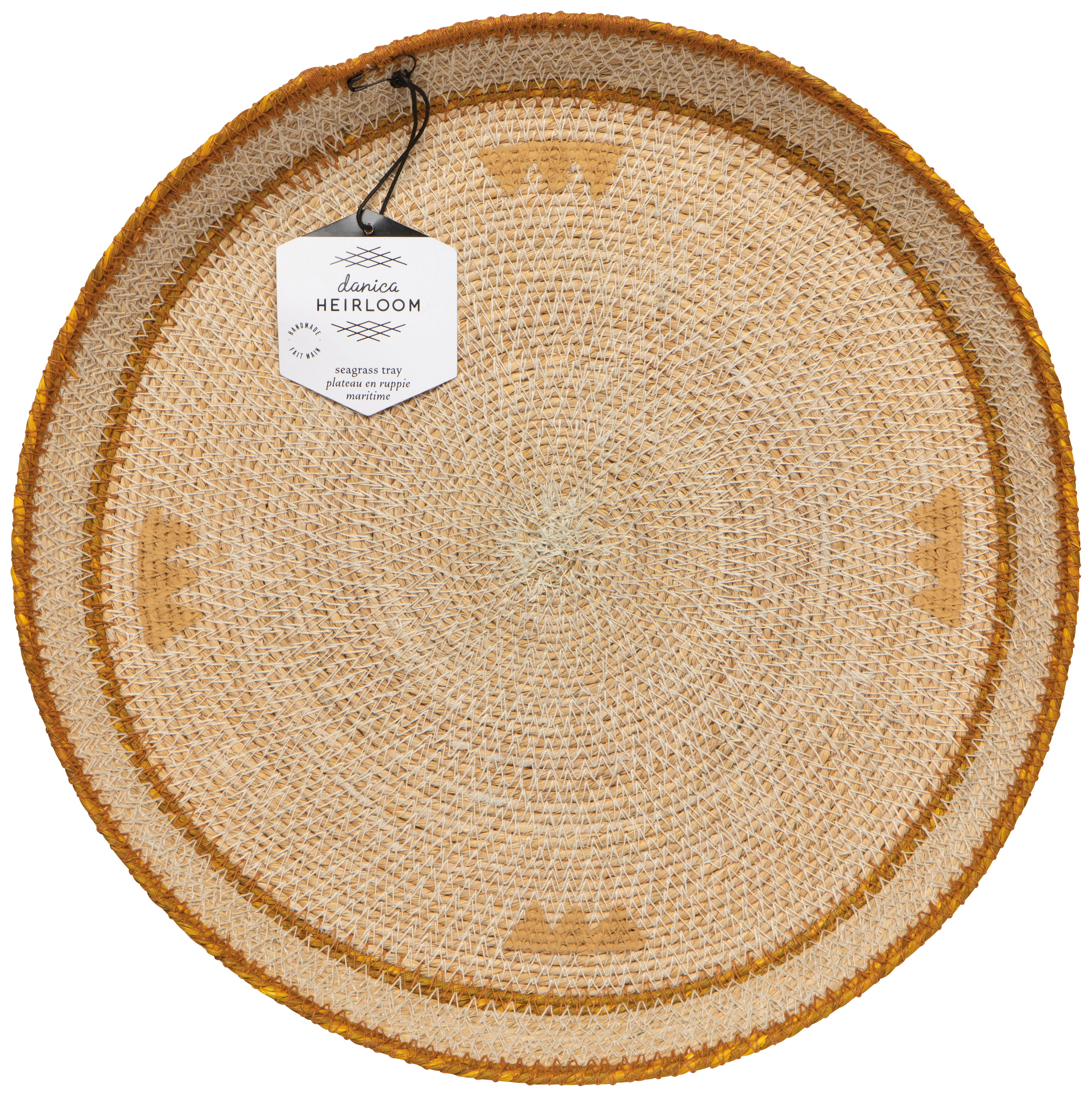- Richly woven seagrass forms the versatile Apex tray. Natural texture and a bold color offer a timeless balance of function and beauty. Dimensions: DIA14 x H1.25in Material: 100% Seagrass Care Instructions: Spot clean only.