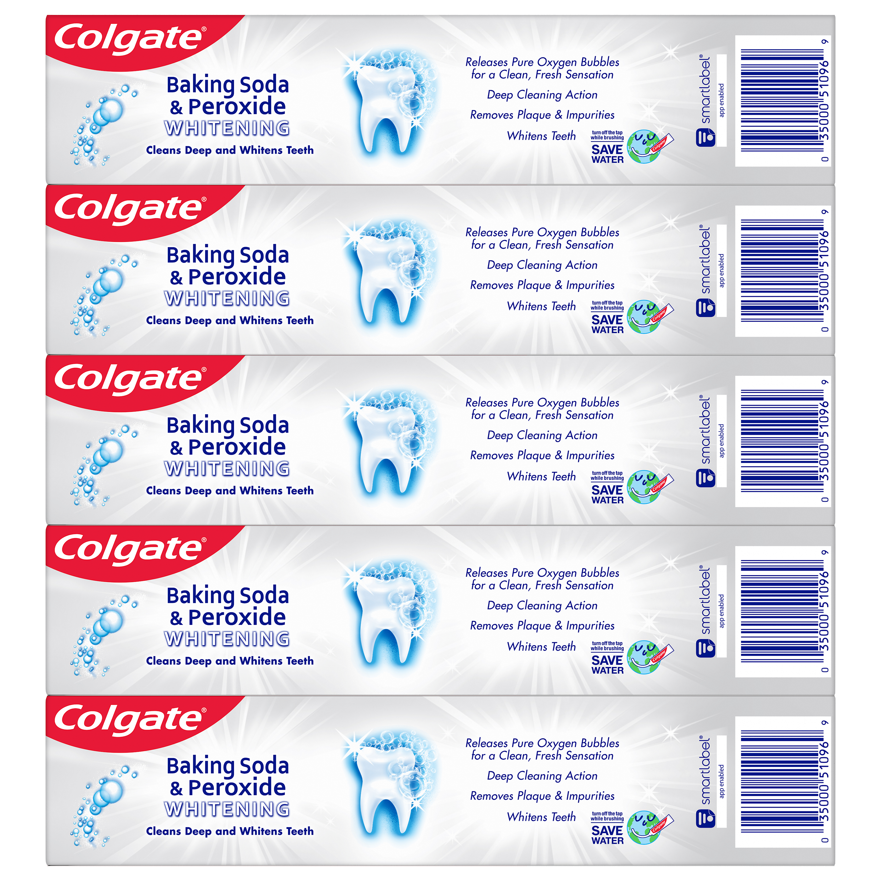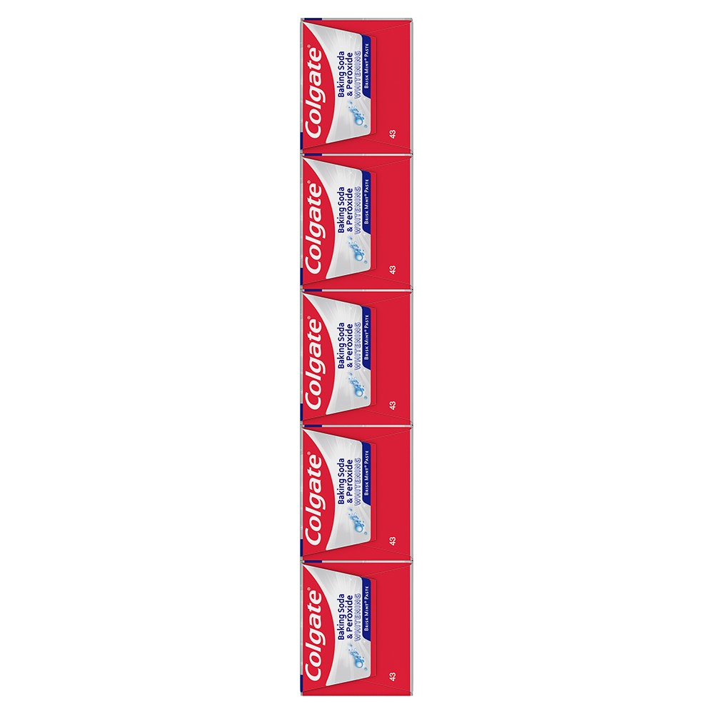 SKU 107376 Consumer Unit - GTIN 00035000999993 Case - GTIN 10035000761603 Product Category Oral Care Product Sub Category Toothpaste Product Equity (Brand) Colgate Product Sub Brand Colgate Baking Soda TP Product Title Colgate Baking Soda and Peroxide Whitening Toothpaste - 8 ounce (5 Pack) Product Description Refreshes and cleans for whiter teeth.