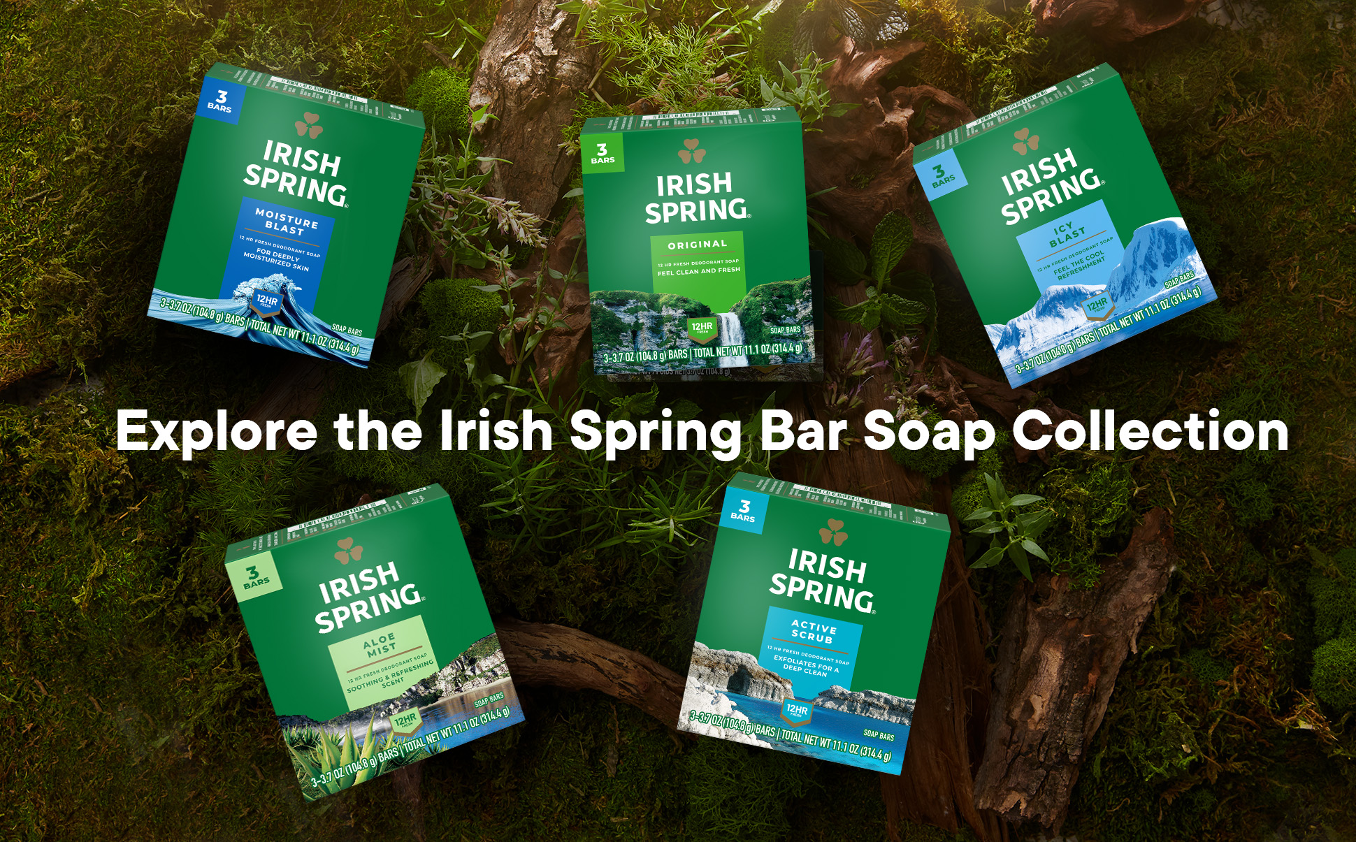 SKU 114170 Consumer Unit - GTIN 00035000141187 Case - GTIN 00035000141705 Product Category Personal Care Product Sub Category Bar Soap Product Equity (Brand) Irish Spring Product Sub Brand Irish Spring BS Product Title Irish Spring Aloe Mist Deodorant Bar Soap for Men, 12 Hour Fresh Deodorant Soap, 3.7 oz Bar (8 Pack) Product Description Count on Irish Spring Aloe Mist Bar Soap to leave your skin feeling clean. Our deodorant bar soap for men is made with a 98% naturally derived formula that keeps you fresh for 12 hours and is suitable for all skin types. For deeply moisturized skin, Irish Spring Aloe Mist Bar Soap helps attract and lock in moisture. Our soap bar can be used as a hand soap or face wash. This bar soap is suitable for all skin types, including normal, oily, and dry skin, ensuring a gentle yet effective cleanse. It is also paraben, phthalate, and gluten free. Add some adventure to your everyday life with the entire Irish Spring line of body washes and bar soaps for men. eCommerce Copy- Long Description Irish Spring Aloe Mist Deodorant Bar Soap, 8 Pack Smell like you came from a nice-smelling place with Irish Spring Bar Soap. Irish Spring Aloe Mist bar soap provides deep moisturization and is made with a 98% naturally derived formula. Count on Irish Spring Bar Soap to leave your skin feeling clean — our bar soap for men keeps you fresh for 12 hours. Fresh Look, Great Smell Feel clean, smell serene with the new Irish Spring. Our recyclable carton might have a new design, but it’s still the same great bar soap you love. Our packaging refresh is all part of our master plan to bring the amazing places you love to smell straight to your bathroom. Get as fresh as the great outdoors and add some adventure to your everyday with the whole line of body washes and bar soaps for men. We want you to smell as great as you feel, so you can focus on moments that turn into memories. Bar Soap for Body and Hands Irish Spring Bar Soap has a sudsy lather that washes away bacteria, so you can use it as a hand soap bar and keep the fresh smell going all day long. Plus, this soap bar is mild for skin. It’s paraben, phthalate and gluten free and has flaxseed oil. Feel good while washing your hands and body with Irish Spring. Irish Spring Bar Soap Pack Never go without smelling your best. The Irish Spring bar soap pack is conveniently packaged so that you can stock up. Keep some in your bathroom, in the pantry, give some to your friends and keep the good smells going. Bullet 1 What’s Included: Eight 3.7 oz soap bars of Irish Spring Aloe Mist Deodorant Bar Soap for Men Bullet 2 Deodorant Soap: 12 hour fresh deodorant soap that leaves you feeling clean, fresh, and confident throughout the day Bullet 3 Versatile Use: Irish Spring bar soap has a sudsy lather and can be used as a hand soap or a face wash Bullet 4 Natural Ingredients: 98% naturally derived formula, gluten free, paraben free, and formulated without phthalates Bullet 5 Sustainably Packaged: Carton made from 90% recycled paperboard, 60% post-consumer content Bullet 6 Soothing and Refreshing Scent: That cool outdoor Freshness? We’re bringing it to the palm of your hand Walmart RPC 10312242 Walmart URL (Computed) https://www.walmart.com/ip/a/10312242 Albertsons RPC 960012289 Albertsons URL https://www.albertsons.com/shop/product-details.960012289.html CVS RPC 683986