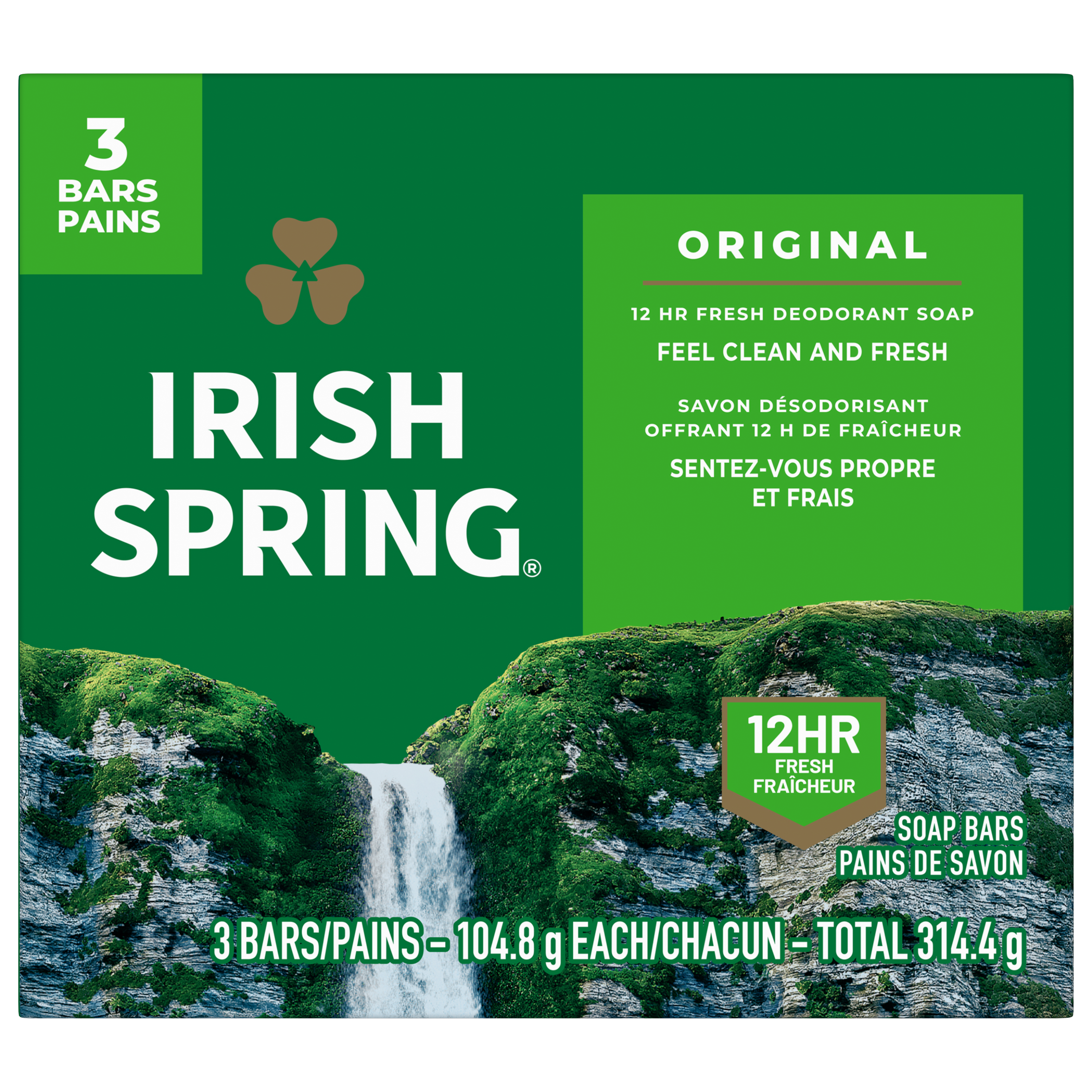 SKU 114177 Consumer Unit - GTIN 00035000141088 Case - GTIN 00035000141774 Product Category Personal Care Product Sub Category Bar Soap Product Equity (Brand) Irish Spring Product Sub Brand Irish Spring BS Product Title Irish Spring Original Deodorant Bar Soap for Men, With Flaxseed Oil, 12 Hour Fresh Deodorant Soap, 3.7 oz Bar (3 Pack) Product Description Count on Irish Spring Original Bar Soap to leave your skin feeling clean and fresh. Our deodorant bar soap for men is made with a 98% naturally derived formula that keeps you fresh for 12 hours and is suitable for all skin types. Irish Spring Original Bar Soap can be used as a hand soap or face wash. This bar soap is suitable for all skin types, including normal, oily, and dry skin, ensuring an effective cleanse. It is also paraben, phthalate, and gluten free and has flaxseed oil. Add some adventure to your everyday life with the entire Irish Spring line of body washes and bar soaps for men. eCommerce Copy- Long Description Irish Spring Original Clean Deodorant Bar Soap, 3 Pack Smell like you came from a nice-smelling place with Irish Spring Bar Soap. Count on Irish Spring Original Bar Soap to leave your skin feeling clean — our original bar soap for men is made with a 98% naturally derived formula that keeps you fresh for 12 hours. Fresh Look, Great Smell Feel clean, smell serene with the new Irish Spring. Our recyclable carton might have a new design, but it’s still the same great bar soap you love. Our packaging refresh is all part of our master plan to bring the amazing places you love to smell straight to your bathroom. Get as fresh as the great outdoors and add some adventure to your everyday with the whole line of body washes and bar soaps for men. We want you to smell as great as you feel, so you can focus on moments that turn into memories. Bar Soap for Body and Hands Irish Spring Original Bar Soap has a sudsy lather that washes away bacteria, so you can use it as a hand soap bar and keep the fresh smell going all day long. Plus, this soap bar is mild for skin. It’s paraben, phthalate and gluten free and has flaxseed oil. Feel good while washing your hands and body with Irish Spring. Irish Spring Bar Soap Pack Never go without smelling your best. The Irish Spring bar soap pack is conveniently packaged so that you can stock up. Keep some in your bathroom, in the pantry, give some to your friends and keep the good smells going. Bullet 1 What’s Included: Three 3.7 oz soap bars of Irish Spring Original Deodorant Bar Soap for Men Bullet 2 Deodorant Soap: Our bar soap leaves your skin feeling clean Bullet 3 Versatile Use: Irish Spring bar soap can be used as a hand soap or a face wash Bullet 4 Infused with Flaxseed Oil: This bar soap is crafted with flaxseed oil Bullet 5 Natural Ingredients: 98% naturally derived formula, gluten free, paraben free, and formulated without phthalates Bullet 6 Sustainably Packaged: Carton made from 90% recycled paperboard, 60% post-consumer content Bullet 7 Refreshing Scent: That cool outdoor Freshness? We’re bringing it to the palm of your hand Target RPC 14767398 Target URL https://www.target.com/p/a/-/A-14767398 Albertsons RPC 960012286 Albertsons URL https://www.albertsons.com/shop/product-details.960012286.html CVS RPC 719237