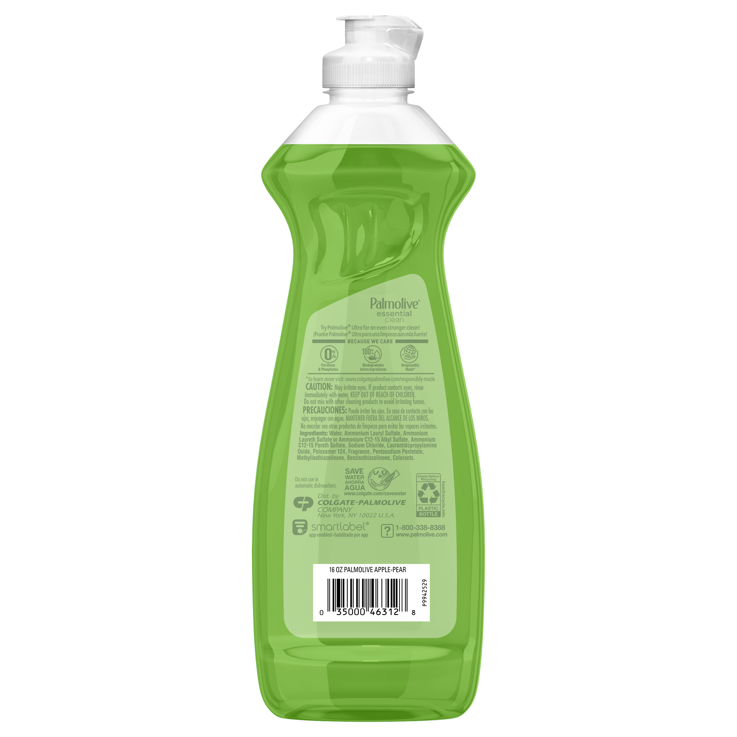 SKU 146312 Consumer Unit - GTIN 00035000463128 Case - GTIN 10035000463125 Product Category Home Care Product Sub Category Dish Hand Product Equity (Brand) Palmolive Product Sub Brand Palmolive Essential Clean HD Product Title Palmolive Essential Clean Liquid Dish Soap, Apple Pear - 16 Fluid Ounce Product Description Palmolive Orchard Burst, with the delightful scent of sweet, fresh apples, works hard on even the toughest greasy dishes. Palmolive is formulated to be tough on grease and soft on hands leaving your dishes sparkling and your skin cared for. Enjoy cooking more because Palmolive has got clean up covered. Bullet 1 Apple and pear scent Bullet 2 Tough on Grease, Soft on Hands Bullet 3 Phosphate-free Bullet 4 Kosher Bullet 5 Palmolive Ultra available for an even stronger clean!