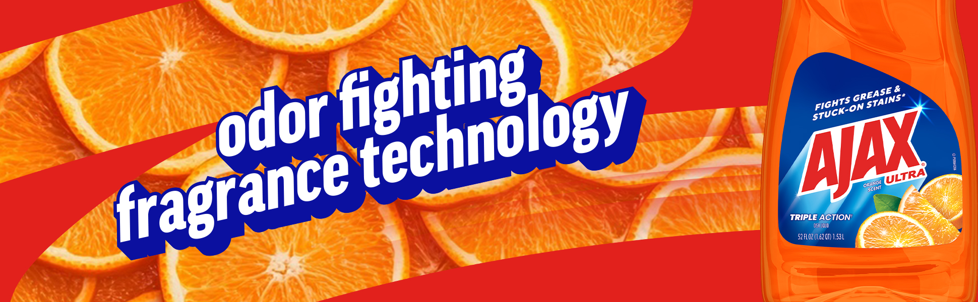 SKU 149860 Consumer Unit - GTIN 00035000498601 Case - GTIN 10035000498608 Product Category Home Care Product Sub Category Dish Hand Product Equity (Brand) Ajax Product Sub Brand Ajax HD Product Title Ajax Ultra Liquid Dish Soap Orange Scent,Triple Action, Mess-Free, Easy-Flip Cap, 52 fl oz Bottle Product Description Boost your dishwashing experience with Ajax Ultra Liquid Dish Soap. We have combined your favorite Orange scent with the efficacy of Ajax that fights grease and stuck-on stains. This variant's distinctive triple action ensures a superior cleaning experience every time. Our innovative formula cuts grease, leaves dishes sparkling clean, and contains an odor fighting fragrance technology*. This orange dish soap not only leaves your dishes sparkling clean but easily dissolves stuck-on grease with a delightful burst of citrus freshness. This dishwashing liquid is made with naturally inspired fragrances, zero parabens, and no phosphates. The bottle features a convenient easy-flip cap for added ease of use. The power of Ajax Ultra goes beyond the sink. This versatile kitchen dish soap allows you to pre-treat laundry, wash tires, and wipe down appliances. Life is tough, but you're tougher! We understand that life isn’t easy. You work hard—heck, REALLY hard. You tackle big and small tough jobs, without looking for applause. That’s why we at Ajax recognize you, the everyday heroes, who step up at the end of a long day and get the dishes done. Because, let’s face it, at the end of the day a clean home is a happy home. Leave the grime to us so you can get back to what really matters! * Cuts grease, leaves dishes sparkling clean, odor fighting fragrance technology eCommerce Copy- Long Description Experience the power of triple action. Boost your mood and your dishwashing experience: Ajax Ultra Triple Action Liquid Dish Soap with Orange Scent provides a pleasant cleaning experience with the lively scent of oranges, while leaving your dishes sparkling clean. Plus, this dish soap washes away bacteria from hands* and easily dissolves stuck-on grease. Enjoy the lively scent of oranges with this dish liquid made with 100% real citrus extract. This product is phosphate-free. Made with naturally inspired fragrances, 0% parabens and phosphates, and 100% biodegradable active ingredients, this dish soap is designed for everyday heroes like you. Plus, try this product to tackle tough jobs beyond dishwashing! Learn more at ajax.com. *When using as a hand soap to wash away bacteria from wet hands, scrub your hands for 20 seconds and then rinse under clean running water. Life is tough, but you're tougher! We understand that life isn’t easy. You work hard—heck, REALLY hard. You tackle big and small tough jobs, without looking for applause. That’s why we at Ajax recognize you, the everyday heroes, who step up at the end of a long day and get the dishes done. Because, let’s face it, at the end of the day a clean home is a happy home. By standing tall in the face of messes, you are an everyday hero. Leave the grime to us so you can get back to what really matters! Bullet 1 One 52 fl oz bottle of Ajax Ultra Liquid Dish Soap Orange Scent, Triple Action Bullet 2 This orange liquid dish soap provides a pleasant and powerful cleaning experience, bringing the refreshing scent of oranges to your kitchen Bullet 3 Our innovative formula cuts grease, leaves dishes sparkling clean, and contains an odor fighting fragrance technology* Bullet 4 This dishwashing liquid is made with naturally inspired fragrances, zero parabens, and no phosphates Bullet 5 The bottle features a convenient easy-flip cap for added ease of use Bullet 6 This versatile dish soap liquid allows you to pre-treat laundry, wash tires, wipe down appliances, and more Bullet 7 Life is tough, but Ajax applauds your resilience with a delightful twist that adds a burst of citrus freshness to your cleaning routine Amazon RPC B074V3N9VW AMZ URL https://www.amazon.com/dp/B074V3N9VW Walmart RPC 20971290 Walmart URL (Computed) https://www.walmart.com/ip/a/20971290 Target RPC 13460780 Target URL https://www.target.com/p/a/-/A-13460780 Albertsons RPC 960156689 Albertsons URL https://www.albertsons.com/shop/product-details.960156689.html CVS RPC 242020 Family Dollar RPC 1414197