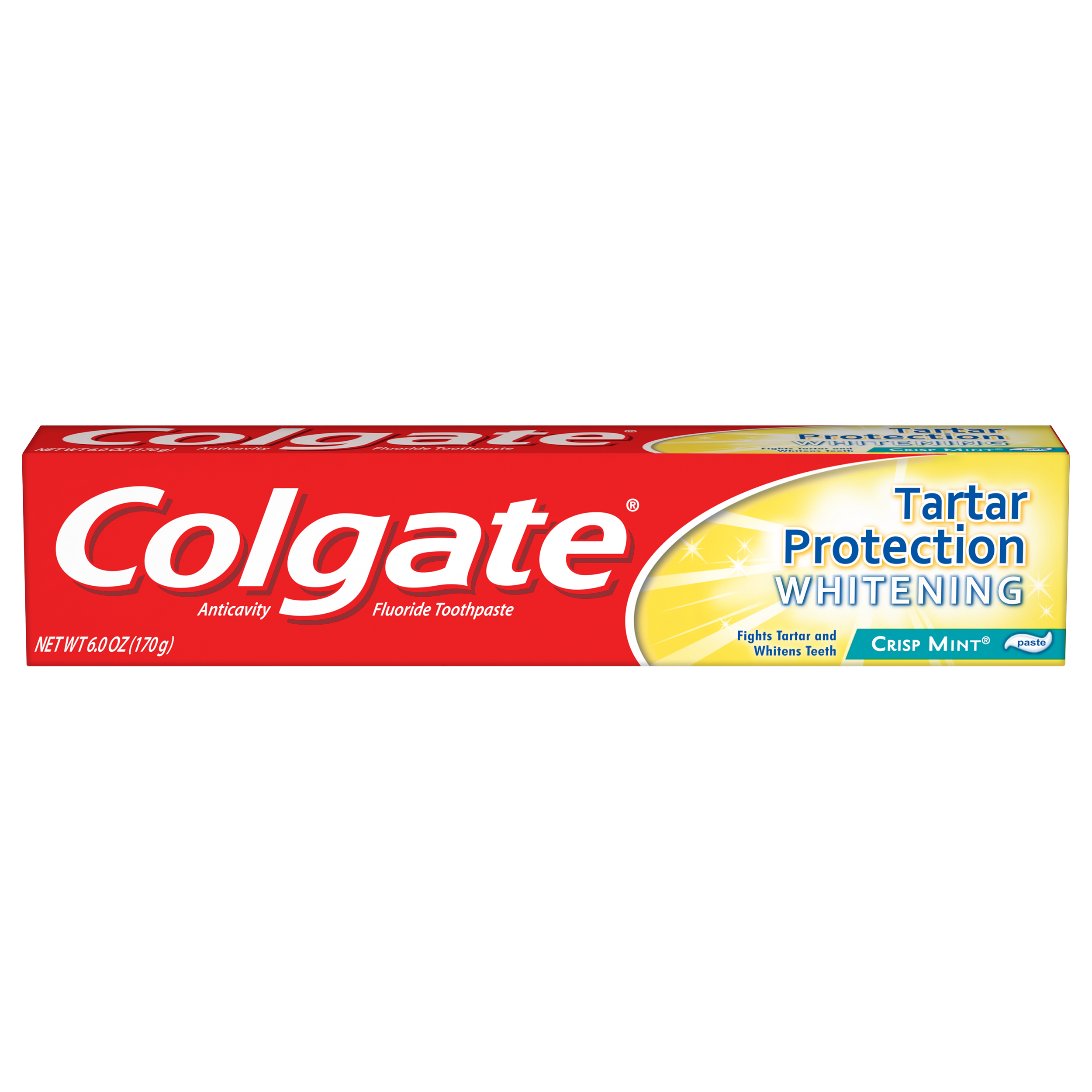 SKU 151090 Product Category Oral Care Product Sub Category Toothpaste Product Equity (Brand) Colgate Product Sub Brand Colgate Tartar Control TP Product Title Colgate Tartar Protection Toothpaste with Whitening, Mint - 6 ounce (6 Pack) Product Description Colgate Tartar Protection Toothpaste with Whitening, with a great Crisp Mint flavor, has a unique formula that fights cavities and tartar build-up to give you a brighter smile. Daily surface stains and tartar make teeth lose their natural shine. This tartar protection toothpaste contains cleaning crystals to help remove daily surface teeth stains. The great Crisp Mint flavor helps freshen your breath.