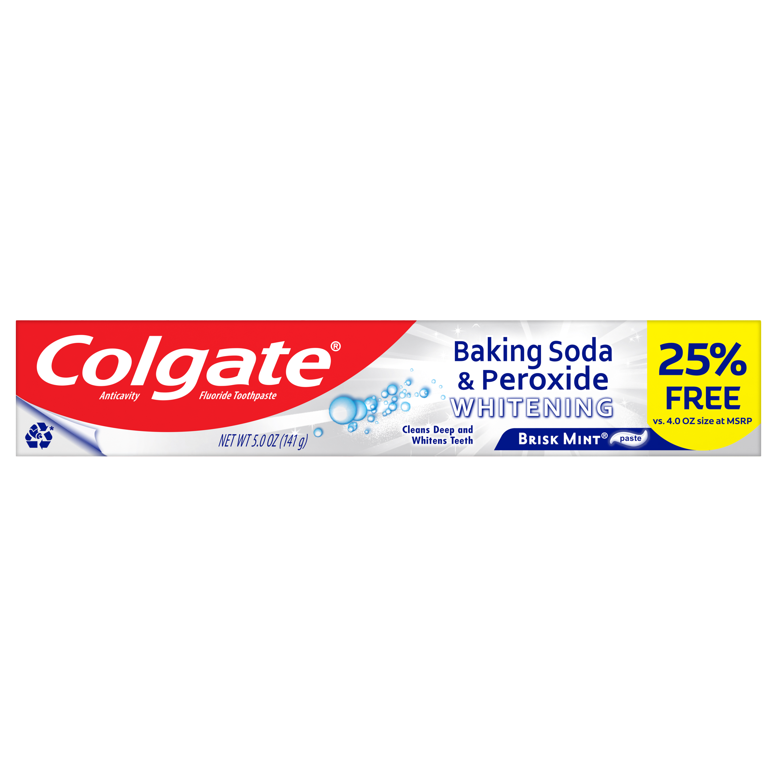 Colgate Baking Soda and Peroxide Whitening Toothpaste, Brisk Mint - 4 Ounce + 25% Free