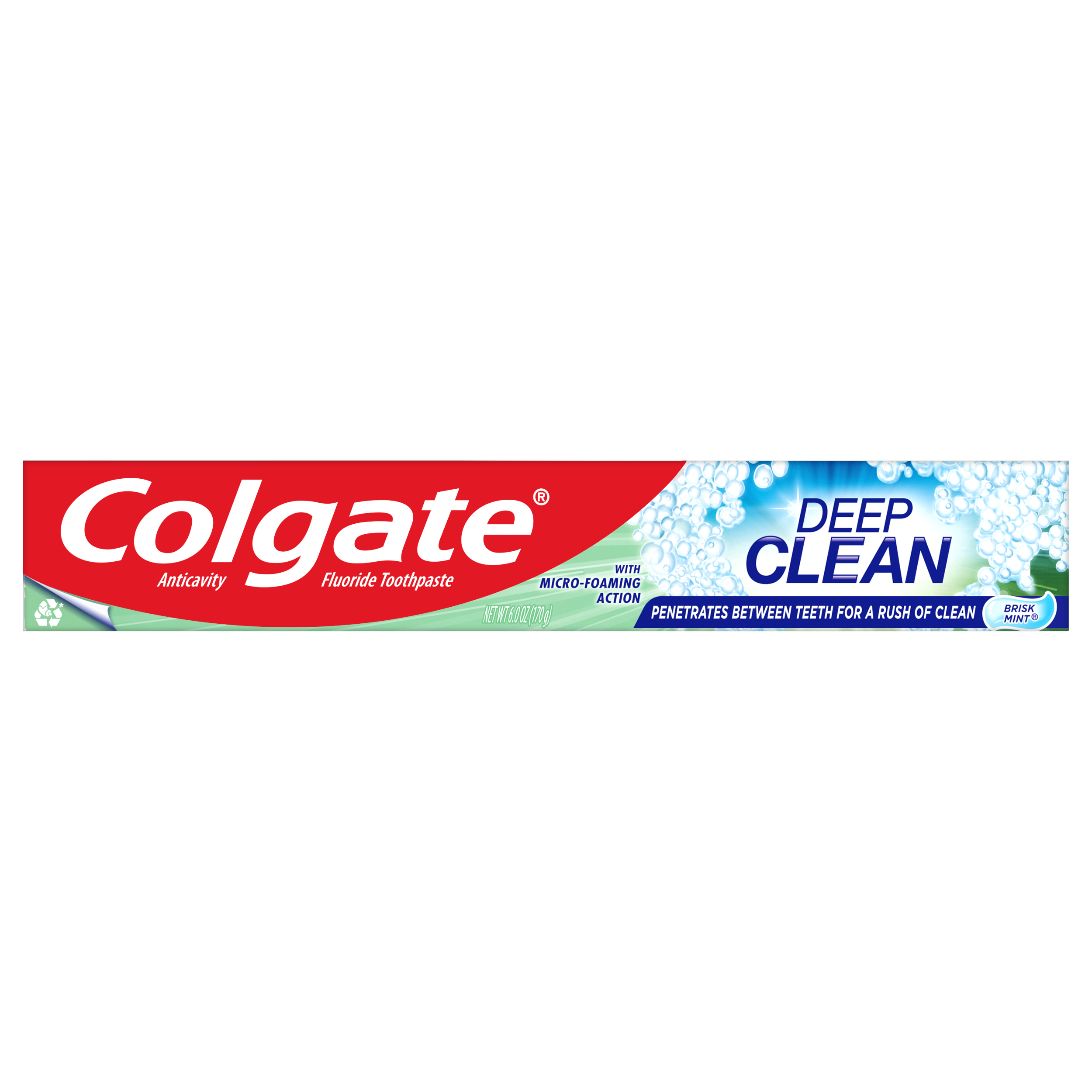 SKU 151102 Consumer Unit - GTIN 00035000511027 Case - GTIN 10035000511024 Product Category Oral Care Product Sub Category Toothpaste Product Equity (Brand) Colgate Product Sub Brand Colgate Whitening TP Product Title Colgate Deep Clean Brisk Mint Gel Toothpaste - 6 ounce eCommerce Copy- Long Description Brush your way to a healthy, naturally white smile when you use Colgate Deep Clean Whitening Toothpaste. With regular brushing, this teeth whitening toothpaste with baking soda gently removes surface stains and plaque to reveal a naturally white smile. The toothpaste also fights cavities and refreshes your mouth. It’s also been clinically proven, which is why this fluoride toothpaste from Colgate gives you more reasons to smile brightly. Bullet 1 Penetrates between teeth for a rush of clean Bullet 2 Micro-foaming action cleans between teeth and freshens breath Bullet 3 Cleans and protects to help fight cavities Bullet 4 Whitens teeth Active Ingredients Sodium Fluoride 0.24 % (0.14% w/v fluoride ion) Family Dollar RPC 900728