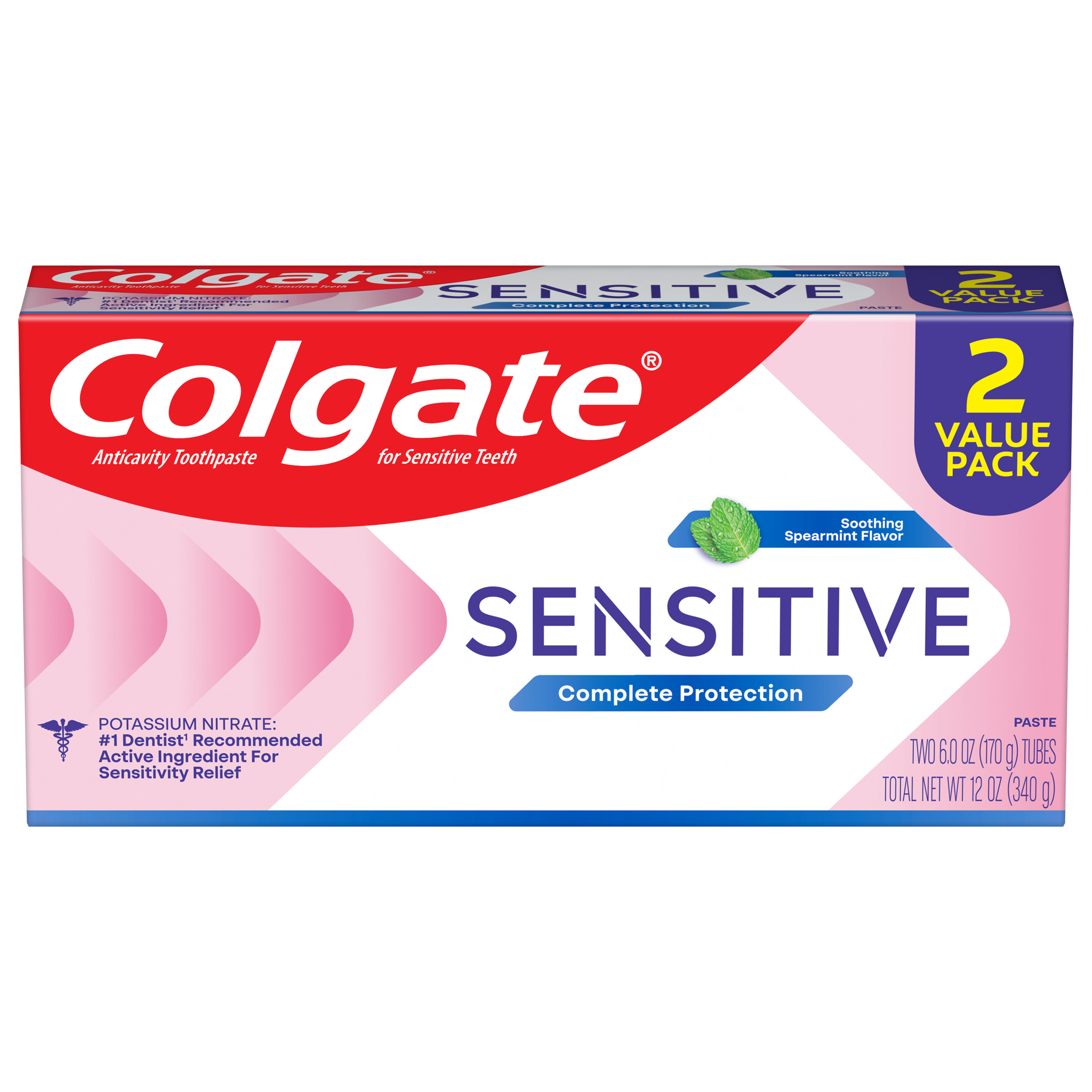 Colgate Sensitive Complete Protection Toothpaste for Sensitive Teeth, Spearmint, 2 Pack, 6 oz