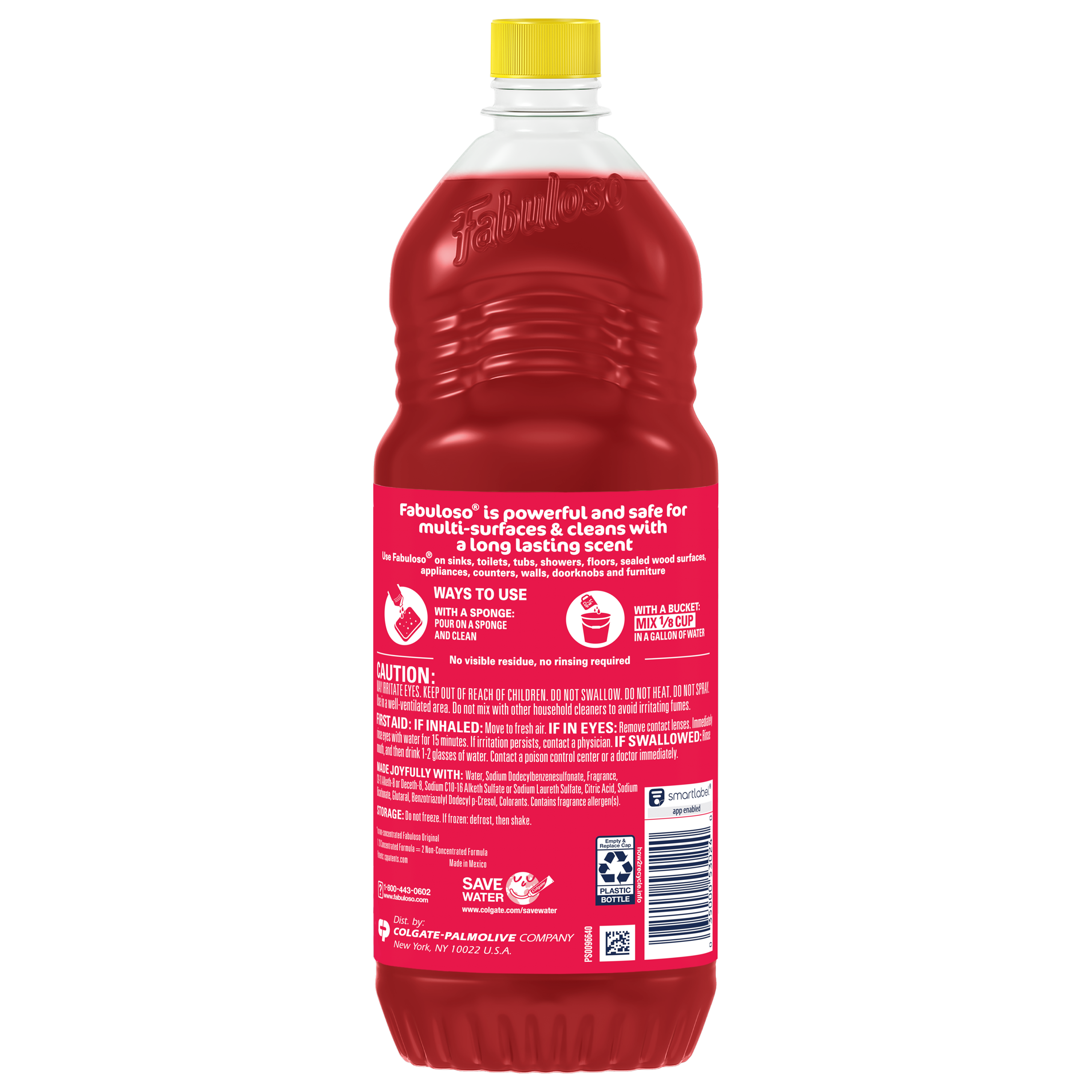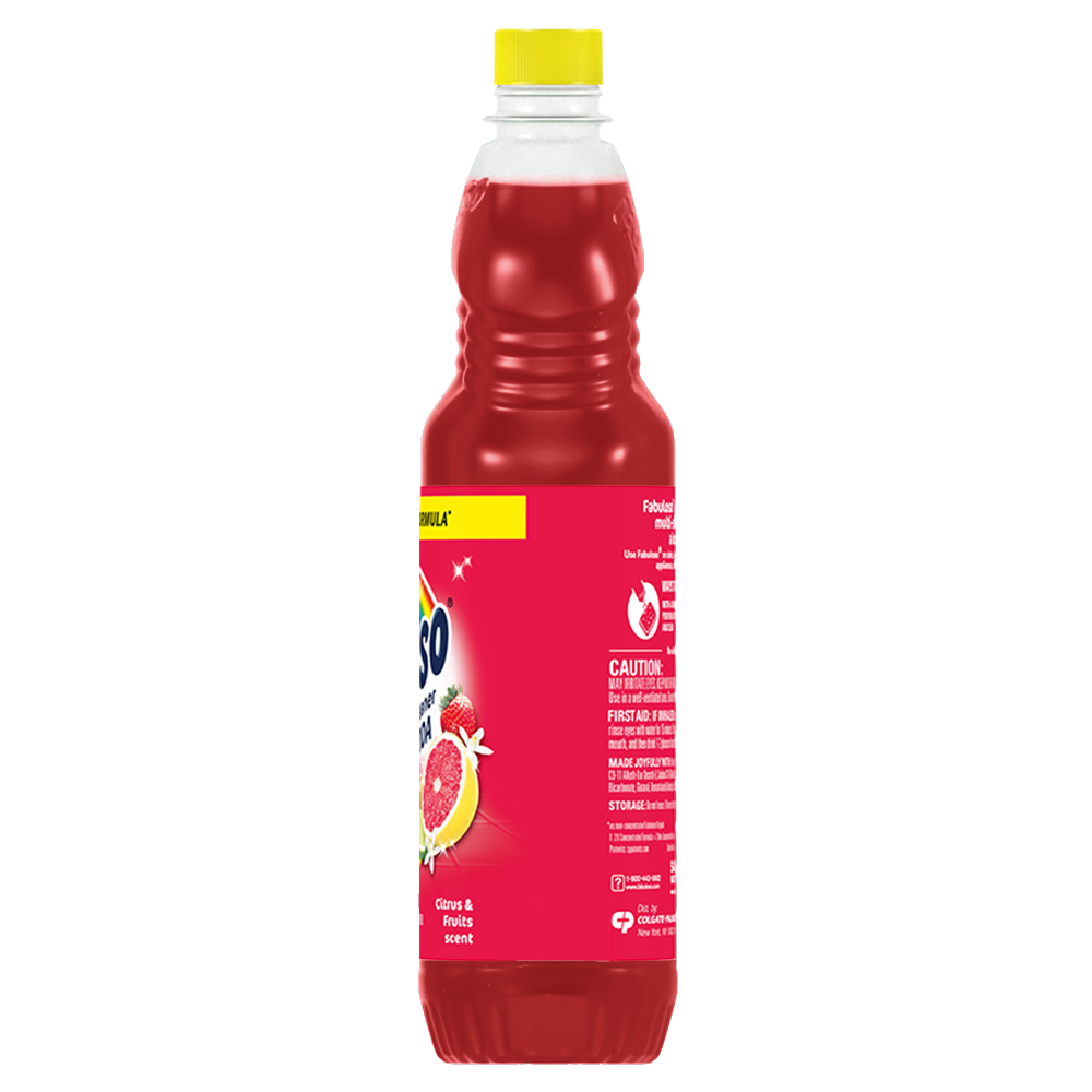 SKU 153024 Consumer Unit - GTIN 00035000530240 Case - GTIN 10035000530247 Product Category Home Care Product Sub Category Cleaners Liquid / Gel Product Equity (Brand) Fabuloso Product Sub Brand Fabuloso Liq Cln Product Title Fabuloso Multi-Purpose Cleaner, 2X Concentrated Formula, Citrus and Fruits with Baking Soda, 28 oz Product Description Fabuloso 2X Multi-Purpose Cleaner is the perfect solution for anyone looking for an effective way to keep their home clean and smelling great. Whether used as a bathroom cleaner, kitchen cleaner, or floor cleaner, the long-lasting Citrus and Fruits with Baking Soda scent will fill your home with joy. Our multi-purpose cleaner cuts through grease, grime, and dirt. Its easy-pour bottle delivers a colorful and satisfying pour every time. We understand that life isn't always easy, but cleaning it up can be with Fabuloso multi-purpose surface cleaner. Our 2X concentrated formula provides 2x more uses and 2x more active ingredients vs our non-concentrated Fabuloso Original. It also uses 50% less plastic by following dosing instructions and getting twice as many uses out of one bottle vs. the same size of Fabuloso Original. It's important to use Fabuloso cleaning products safely, please follow the instructions on the label. Mix 1/8 cup in a gallon of water or pour on a sponge and clean. eCommerce Copy- Long Description Fabuloso® Multi-Purpose Cleaner, 2X Concentrated Formula, Citrus and Fruits with Baking Soda Scent Fabuloso® Multi-Purpose Cleaner, 2X Concentrated Formula in Citrus and Fruits with Baking Soda Scent transforms your home with a fresh scent that lasts. Bring the fragrance of citrus and fruits indoors, and experience a warm, joyful feeling your friends and family will love. Fabuloso®’s 2X Concentrated Formula now provides 2X more active ingredients compared to non-concentrated Fabuloso Original, giving you 2X the dosage in the same bottle. Every colorful pour from the easy-pour bottle delivers a long-lasting, unmistakable freshness and leaves your home bright and clean. Use Fabuloso® Multi-Purpose Cleaner, on sinks, toilets, tubs, showers, kitchen and bathroom floors, sealed wood surfaces, appliances, counters, windows, mirrors, walls, doorknobs and furniture, and fill every room in your home with joy. Uplifting fragrances. Clean surfaces. Irresistible joy. Life isn’t always easy, but cleaning it up sure can be. Fabuloso® combines cleaning power with fresh scents that fill your home with joy, to make it a welcoming place no matter how hard your day. Fabuloso®’s 2X Concentrated Formula provides 2X more uses in the same bottle compared to non-concentrated Fabuloso Original. From the kitchen to the bathroom and beyond, Fabuloso® Multi-Purpose, Cleaner 2X Concentrated has a wide variety of long-lasting fragrances that deliver hope for a better tomorrow. Try all of our uplifting scents: Refreshing Lemon, Passion of Fruits, Citrus & Fruits with Baking Soda, Bleach Alternative† Spring Fresh, Tropical Spring, and Orange Scent with Baking Soda. † Bleach-free option with 20% more active ingredients vs other Fabuloso 2X Concentrated products Shared Moments of Joy All Over the World Our story begins in Venezuela, circa 1980. Cleaning products lacked fragrance and distinction. But families wanted lasting scents that kept their homes fresh and clean for hours. Enter the bold colors and joyful fragrances of Fabuloso® ! 16 years later, families across America also got to experience the joy: we became a household staple thanks to our rainbow of colors and playful, distinctive scents. Today, across the world, we’re more than cleaning products. We’re a catalyst for joy. Bullet 1 2X concentrated formula provides 2X more active ingredients compared to non-concentrated Fabuloso Original Bullet 2 Multi-purpose cleaner for a wide range of surfaces, from floors to furniture to appliances Bullet 3 Mix 1/8 cup in a gallon of water or pour on a sponge and clean Bullet 4 Citrus and Fruits with Baking Soda scent provides long-lasting freshness Bullet 5 Uses 50% less plastic by following dosing instructions to get twice as many uses out of one bottle v. the same size of Fabuloso Original Family Dollar RPC 1498337