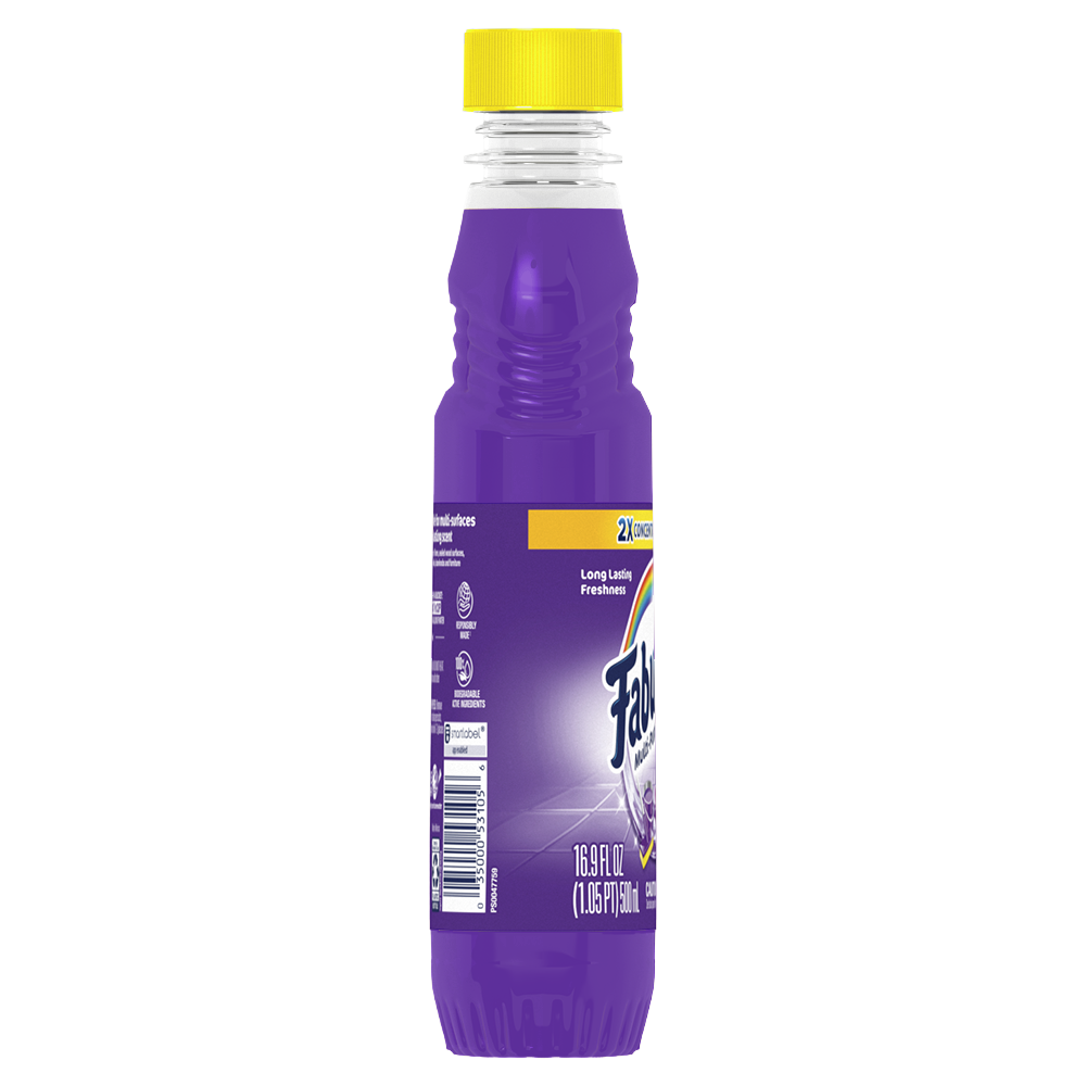 SKU 153105 Consumer Unit - GTIN 00035000531056 Case - GTIN 10035000531053 Product Category Home Care Product Sub Category Cleaners Liquid / Gel Product Equity (Brand) Fabuloso Product Sub Brand Fabuloso Liq Cln Product Title Fabuloso Multi-Purpose Cleaner, 2X Concentrated Formula, Lavender Scent, 16.9 oz Product Description Fabuloso Multi-Purpose Cleaner is the perfect solution for anyone looking for an effective way to keep their home clean and smelling great. Whether used as a bathroom cleaner, kitchen cleaner, or floor cleaner, the long-lasting lavender fragrance will fill your home with joy. Our multi-purpose cleaner cuts through grease, grime, and dirt. Its easy-pour bottle delivers a colorful and satisfying pour every time. We understand that life isn't always easy, but cleaning it up can be with Fabuloso multi-purpose surface cleaner. Our 2X concentrated formula provides 2x more uses and 2x more active ingredients vs our non-concentrated Fabuloso Original. It also uses 50% less plastic by following dosing instructions and getting twice as many uses out of one bottle vs. the same size of Fabuloso Original. It's important to use Fabuloso cleaning products safely, please follow the instructions on the label. Mix 1/8 cup in a gallon of water or pour on a sponge and clean. eCommerce Copy- Long Description Fabuloso® Multi-Purpose Cleaner, 2X Concentrated Formula, Lavender Scent Fabuloso® Multi-Purpose Cleaner, 2X Concentrated Formula in Lavender Scent transforms your home with a fresh scent that lasts. Bring the fragrance of lavender indoors, and experience a warm, joyful feeling your friends and family will love. Fabuloso®’s 2X Concentrated Formula now provides 2X more active ingredients compared to non-concentrated Fabuloso Original, giving you 2X the dosage in the same bottle. Every colorful pour from the easy-pour bottle delivers a long-lasting, unmistakable freshness and leaves your home bright and clean. Use Fabuloso® Multi-Purpose Cleaner, on sinks, toilets, tubs, showers, kitchen and bathroom floors, sealed wood surfaces, appliances, counters, windows, mirrors, walls, doorknobs and furniture, and fill every room in your home with joy. Uplifting fragrances. Clean surfaces. Irresistible joy. Life isn’t always easy, but cleaning it up sure can be. Fabuloso® combines cleaning power with fresh scents that fill your home with joy, to make it a welcoming place no matter how hard your day. Fabuloso®’s 2X Concentrated Formula provides 2X more uses in the same bottle compared to non-concentrated Fabuloso Original. From the kitchen to the bathroom and beyond, Fabuloso® Multi-Purpose, Cleaner 2X Concentrated has a wide variety of long-lasting fragrances that deliver hope for a better tomorrow. Try all of our uplifting scents: Refreshing Lemon, Passion of Fruits, Citrus & Fruits with Baking Soda, Bleach Alternative† Spring Fresh, Tropical Spring, and Orange Scent with Baking Soda. † Bleach-free option with 20% more active ingredients vs other Fabuloso 2X Concentrated products Bullet 1 2X concentrated formula provides 2X more active ingredients compared to non-concentrated Fabuloso Original Bullet 2 Multi-purpose cleaner for a wide range of surfaces, from floors to furniture to appliances Bullet 3 Mix 1/8 cup in a gallon of water or pour on a sponge and clean Bullet 4 Lavender scent provides long-lasting freshness Bullet 5 Uses 50% less plastic by following dosing instructions to get twice as many uses out of one bottle v. the same size of Fabuloso Original Walmart RPC 180062194 Walmart URL (Computed) https://www.walmart.com/ip/a/180062194 Albertsons RPC 73060110 Albertsons URL https://www.albertsons.com/shop/product-details.73060110.html
