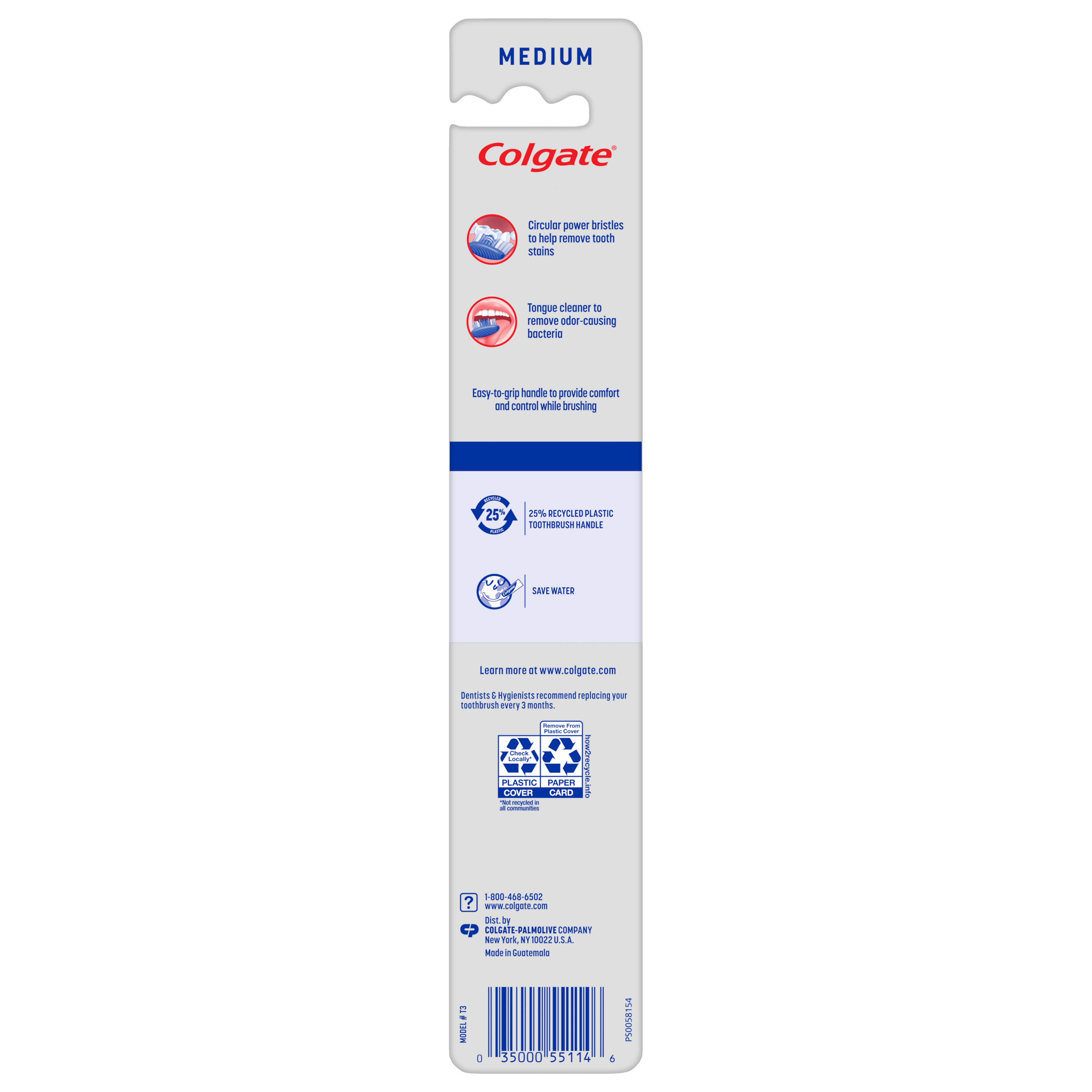 SKU 155114 Consumer Unit - GTIN 00035000551146 Case - GTIN 10035000551143 Product Category Oral Care Product Sub Category Manual TB Product Equity (Brand) Colgate Product Sub Brand Colgate Extra Clean Man TB Product Title Colgate Extra Clean Full Head Toothbrush, Medium - 1 Count eCommerce Copy- Long Description Colgate Extra Clean Full Head Medium Toothbrush is designed with circular power bristles to help remove tooth stains. Its cleaning tip bristles effectively reach and clean back teeth and between teeth. This manual toothbrush also has an easy-to-grip handle to provide comfort and control while brushing. Remember to change your toothbrush every 3 months. Walmart RPC 46212473 Walmart URL (Computed) https://www.walmart.com/ip/a/46212473 Target RPC 14356495 Target URL https://www.target.com/p/a/-/A-14356495 Albertsons RPC 960138878 Albertsons URL https://www.albertsons.com/shop/product-details.960138878.html CVS RPC 492403 Family Dollar RPC 905543