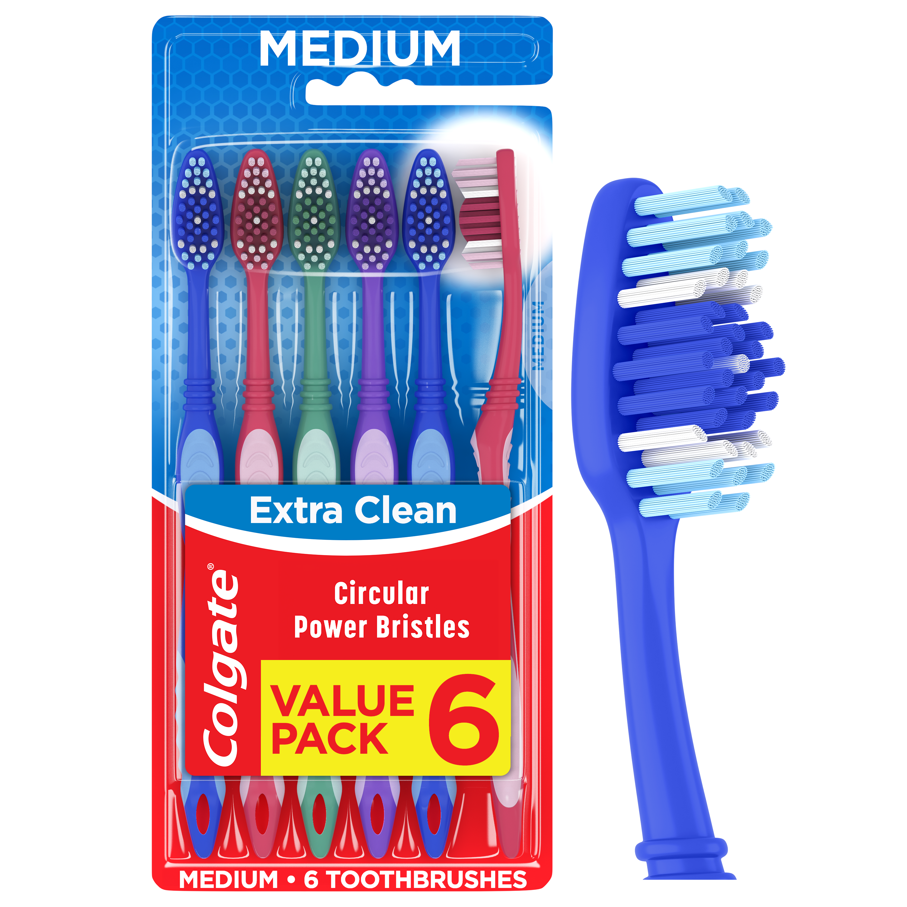 Colgate Extra Clean Full Head Medium Adult Manual Toothbrush, 6 pack