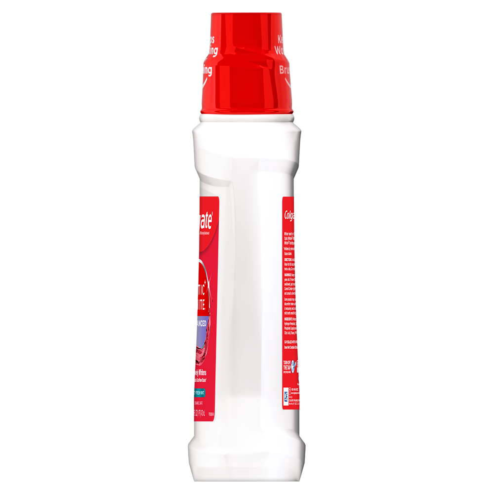 eCommerce Copy- Long Description <lt/>p<gt/>Colgate Optic White High Impact White whitening mouthwash contains 2% hydrogen peroxide to effectively whiten teeth by removing surface stains. This alcohol-free mouthwash (does not contain ethanol) is available in a Sparkling Fresh Mint flavor to freshen breath while whitening teeth and contains Whiteseal technology to help prevent future stains. The mouthwash's action reaches hard-to-brush places, helping to whiten teeth and freshen breath. For an extra white smile, use after brushing with Colgate Optic White toothbrushes and toothpastes. <lt/>/p<gt/> Bullet 1 Whiter Teeth Between Brushings Bullet 2 Hydrogen Peroxide High Impact Whitening Formula Bullet 3 Actively Whitens Teeth and WhiteSeal Technology Helps to Prevent Future Stains Bullet 4 Kills Bad Breath Germs and Bacteria Bullet 5 Alcohol-Free Formula Amazon RPC B00EZWSQSW AMZ URL https://www.amazon.com/dp/B00EZWSQSW Albertsons RPC 960076338 Albertsons URL https://www.albertsons.com/shop/product-details.960076338.html CVS RPC 747330 Family Dollar RPC 999043