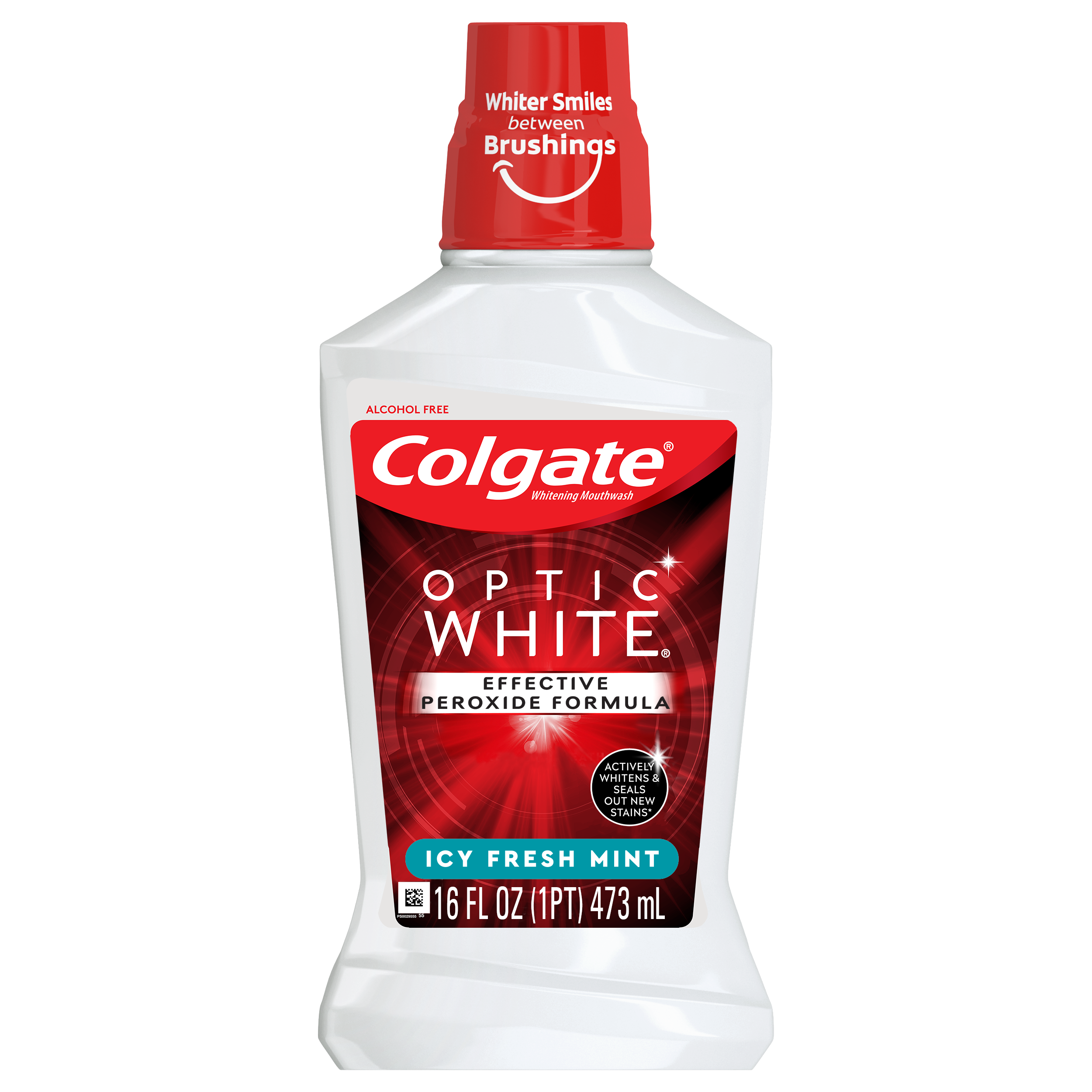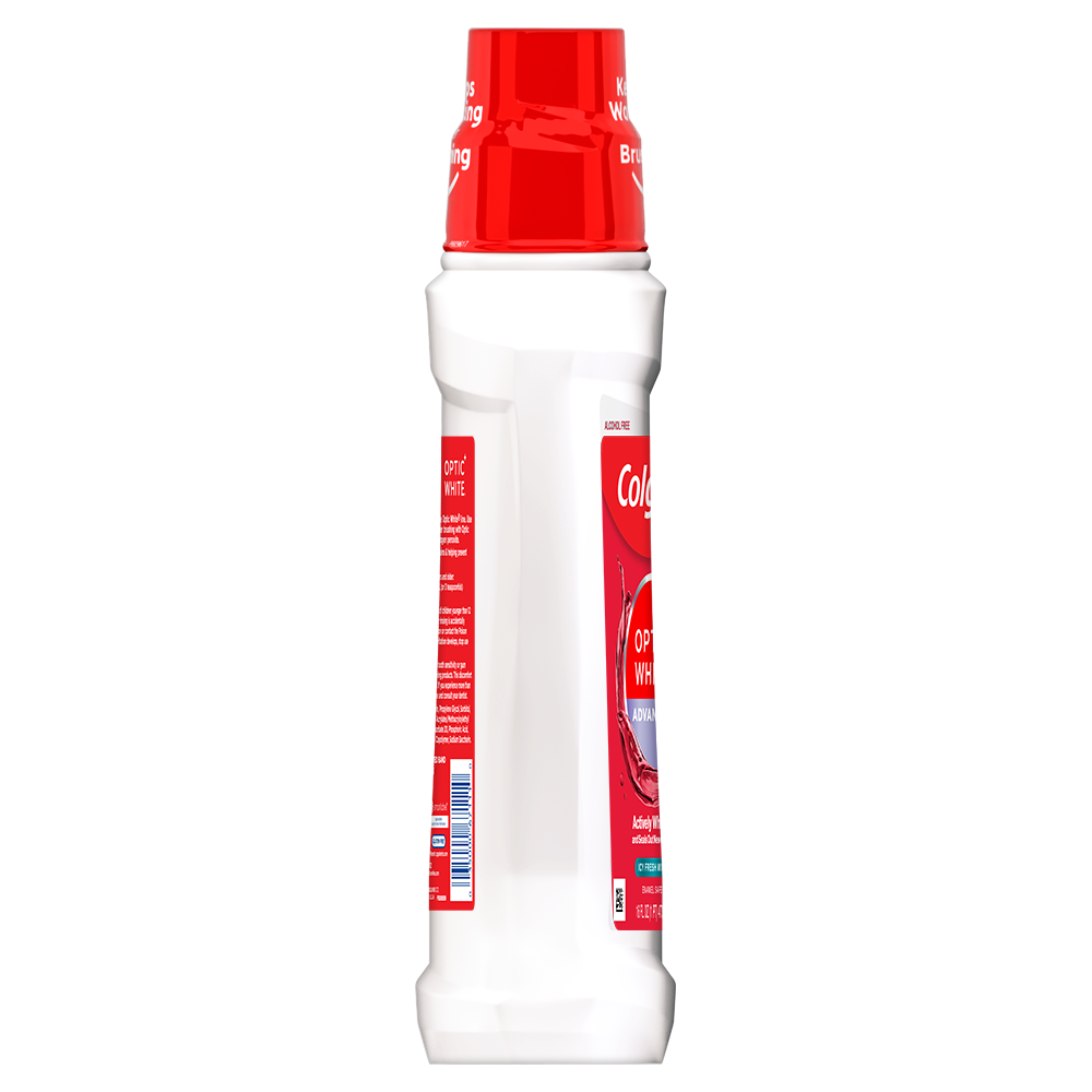 SKU 167111 Consumer Unit - GTIN 00035000671110 Case - GTIN 10035000671117 Product Category Oral Care Product Sub Category Mouthwash Product Equity (Brand) Colgate Product Sub Brand Colgate Optic White MW Product Title Colgate Optic White Whitening Mouthwash, 2% Hydrogen Peroxide, Fresh Mint - 473 mL, 16 fl.oz. (6 Pack) Product Description Colgate Optic White High Impact White whitening mouthwash contains 2% hydrogen peroxide to effectively whiten teeth by removing surface stains. This alcohol-free mouthwash (does not contain ethanol) is available in a Sparkling Fresh Mint flavor to freshen breath while whitening teeth and contains Whiteseal technology to help prevent future stains. The mouthwash's action reaches hard-to-brush places, helping to whiten teeth and freshen breath. For an extra white smile, use after brushing with Colgate Optic White toothbrushes and toothpastes.