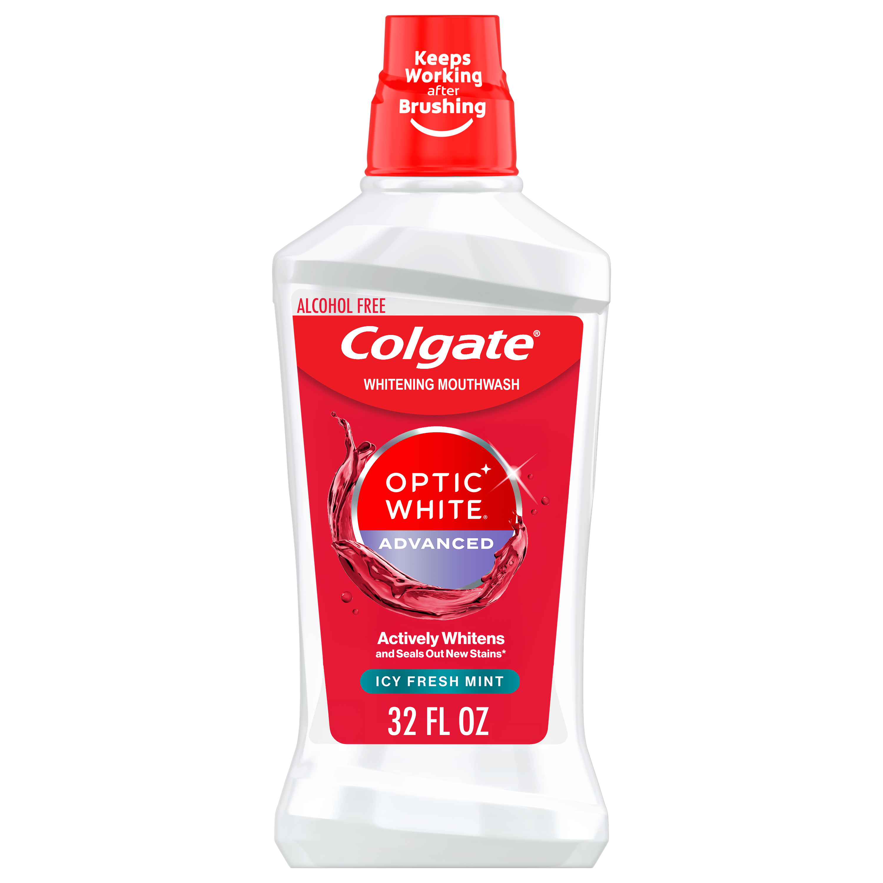 SKU 167112 Consumer Unit - GTIN 00035000671127 Case - GTIN 10035000671124 Product Category Oral Care Product Sub Category Mouthwash Product Equity (Brand) Colgate Product Sub Brand Colgate Optic White MW Product Title Colgate Optic White Advanced Whitening Mouthwash with Icy Fresh Mint Flavor and 2% Hydrogen Peroxide, 32 OZ Product Description Actively whiten your teeth and seal out new stains* with Colgate Optic White Teeth Whitening Mouthwash. Get whiter teeth in 5 days by using Optic White Mouthwash after brushing with Optic White Toothpaste with hydrogen peroxide. This oral rinse triple pack is your go-to choice for enamel safe teeth whitening, and its Icy Fresh Mint flavor makes rinsing a delight. Plus, it’s alcohol free**. Get a refreshing oral rinse with our clear mouthwash. Does it make your teeth whiter? Formulated with hydrogen peroxide—the same whitening ingredient used by dentists—Teeth Whitening Mouthwash actively whitens your teeth by removing surface stains*, and it does double duty by sealing out new stains*. Combine it with Optic White toothpaste with hydrogen peroxide for whiter teeth in 5 days. Is it enamel safe? Yes, our Teeth Whitening Mouthwash is enamel safe. Now, you can remove surface stains* with peace of mind. Does it taste fresh? This clear mouthwash takes on bad breath with an Icy Fresh Mint flavor. Optic White Teeth Whitening Mouthwash is the fresh breath oral rinse that actively whitens teeth and seals out new stains*. *Whitens by removing surface stains and helping prevent future stains **Does not contain ethanol eCommerce Copy- Long Description Colgate Optic White High Impact White whitening mouthwash contains 2% hydrogen peroxide to effectively whiten teeth by removing surface stains. This alcohol-free mouthwash (does not contain ethanol) is available in a Sparkling Fresh Mint flavor to freshen breath while whitening teeth and contains Whiteseal technology to help prevent future stains. The mouthwash's action reaches hard-to-brush places, helping to whiten teeth and freshen breath. For an extra white smile, use after brushing with Colgate Optic White toothbrushes and toothpastes. Bullet 1 One 32 OZ bottle of Colgate Optic White Teeth Whitening Mouthwash Bullet 2 Actively whitens and seals out new stains* (*Whitens by removing surface stains and helping prevent future stains) Bullet 3 Powered by hydrogen peroxide Bullet 4 Get whiter teeth in 5 days with the Optic White line; use Optic White Mouthwash after brushing with Optic White Toothpaste with hydrogen peroxide Bullet 5 This clear mouthwash is enamel safe and alcohol free** (**Does not contain ethanol) Bullet 6 Delight in a refreshing oral rinse experience with this fresh breath mouthwash in an Icy Fresh Mint flavor Bullet 7 Teeth Whitening Mouthwash is fluoride free Amazon RPC B07CHFLZZV AMZ URL https://www.amazon.com/dp/B07CHFLZZV Walmart RPC 21551140 Walmart URL (Computed) https://www.walmart.com/ip/a/21551140 Albertsons RPC 960318702 Albertsons URL https://www.albertsons.com/shop/product-details.960318702.html CVS RPC 897465