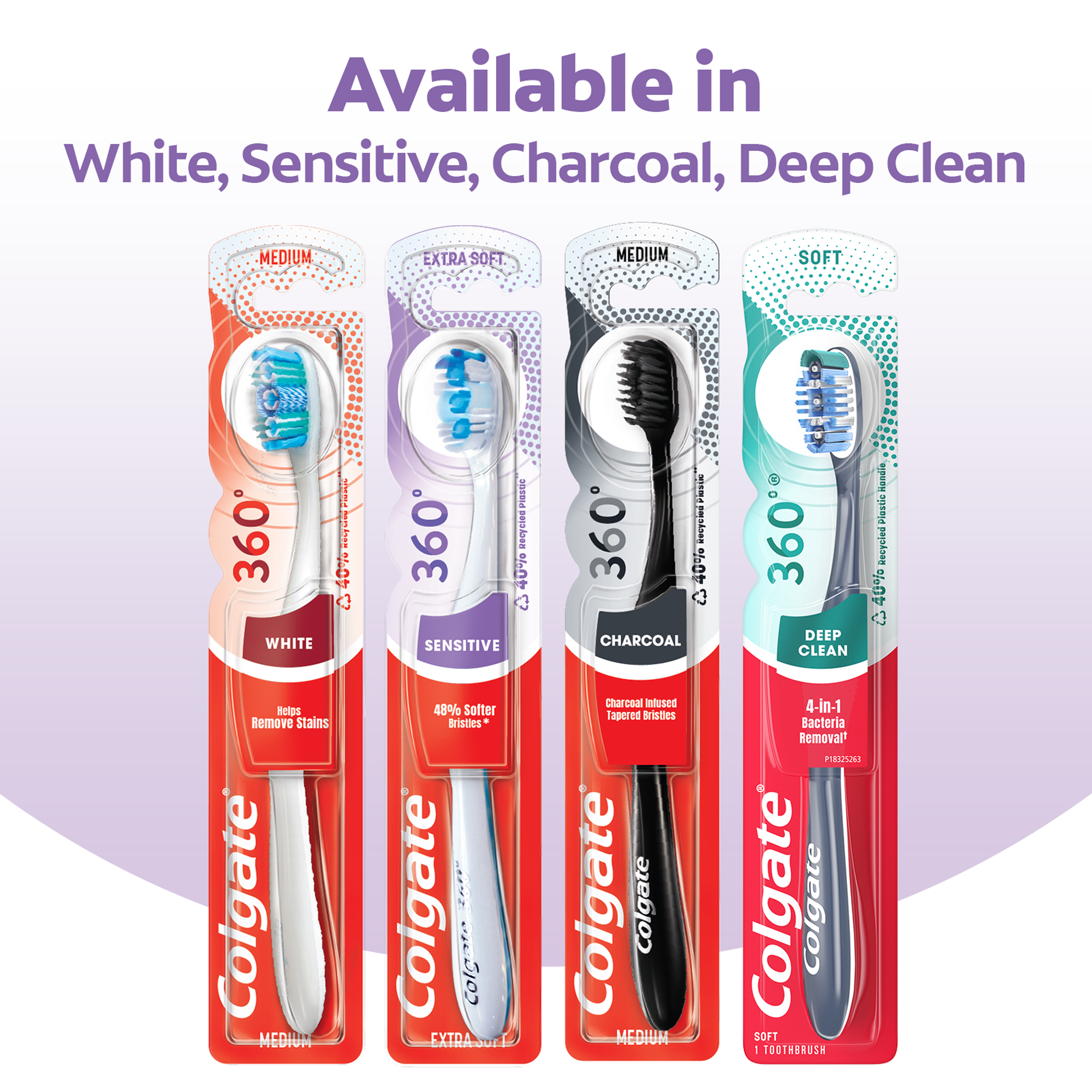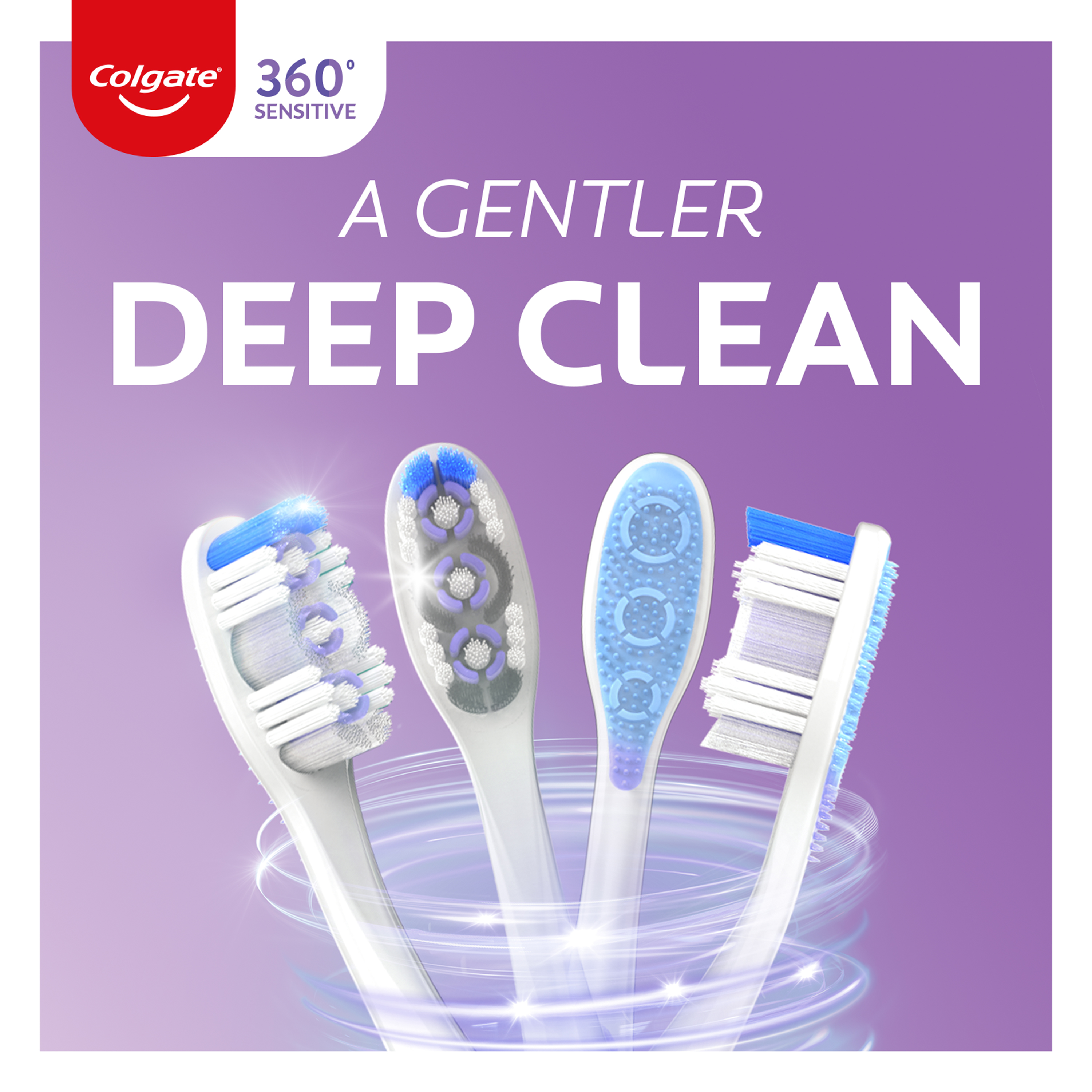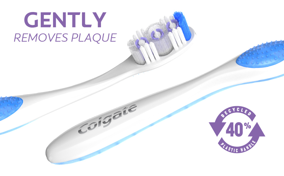 SKU 168176 Consumer Unit - GTIN 00035000681768 Case - GTIN 10035000681765 Product Category Oral Care Product Sub Category Manual TB Product Equity (Brand) Colgate Product Sub Brand Colgate 360 Man TB Product Title Colgate 360 Sensitive Toothbrush, Extra Soft, 1 Pack Product Description Comfortably clean sensitive teeth and gums with the Colgate 360 Sensitive Toothbrush with Extra Soft Bristles. This extra soft toothbrush features bristles that are 48% softer* for sensitive teeth and gums. In addition, this extra soft adult toothbrush includes a unique cheek and tongue cleaner that helps remove odor-causing bacteria. Plus, this extra soft toothbrush is equipped with polishing whitening cups that remove stains for a bright smile. The packaging is made from 85% recycled paperboard backercard and the sensitive toothbrush handle is made from 40% recycled plastic. The Colgate 360 Sensitive Toothbrush is ideal for anyone looking for a comfortable adult toothbrush that provides a gentle clean. *vs. an ordinary soft manual toothbrush eCommerce Copy- Long Description The Colgate 360⁰ Enamel Health Sensitive manual extra soft toothbrush has 48% softer bristles (vs. an ordinary soft manual toothbrush) to help protect enamel surfaces and gums. This extra soft toothbrush features a raised cleaning tip that helps get into hard-to-reach areas, polishing whitening cups that gently remove stains for a bright smile, and the unique cheek & tongue cleaner that helps remove odor-causing bacteria. Bullet 1 Includes one (1) Colgate 360 Sensitive Toothbrush with Extra Soft Bristles, Manual Adult Toothbrush Bullet 2 This extra soft toothbrush feature bristles that are 48% softer* for sensitive teeth and gums (*vs. an ordinary soft manual toothbrush) Bullet 3 Cleans hard-to-reach areas using a raised cleaning tip on the end of the manual toothbrush head Bullet 4 This extra soft adult toothbrush removes surface stains using polishing whitening cups Bullet 5 The Colgate 360 Sensitive Manual Toothbrush is designed to comfortably clean your cheeks, tongue, teeth and gums Bullet 6 The Colgate 360 Sensitive Toothbrush is an ideal manual toothbrush for anyone looking for a comfortable adult toothbrush with gentle bristles Bullet 7 The sensitive toothbrush handle is made from 40% recycled plastic and the toothbrush packaging is made from 85% recycled paperback backercard Walmart RPC 38543185 Walmart URL (Computed) https://www.walmart.com/ip/a/38543185 Albertsons RPC 960115621 Albertsons URL https://www.albertsons.com/shop/product-details.960115621.html CVS RPC 977022