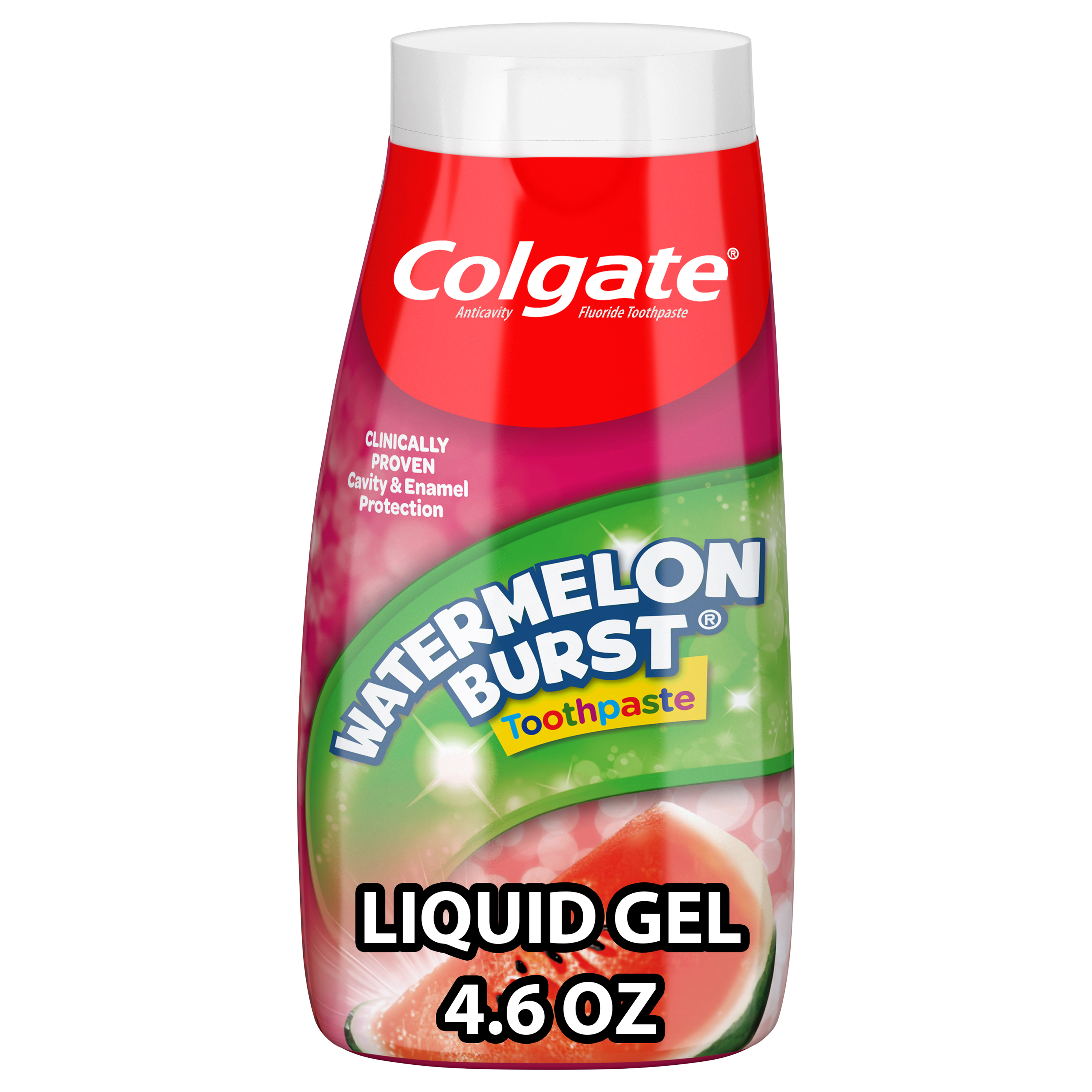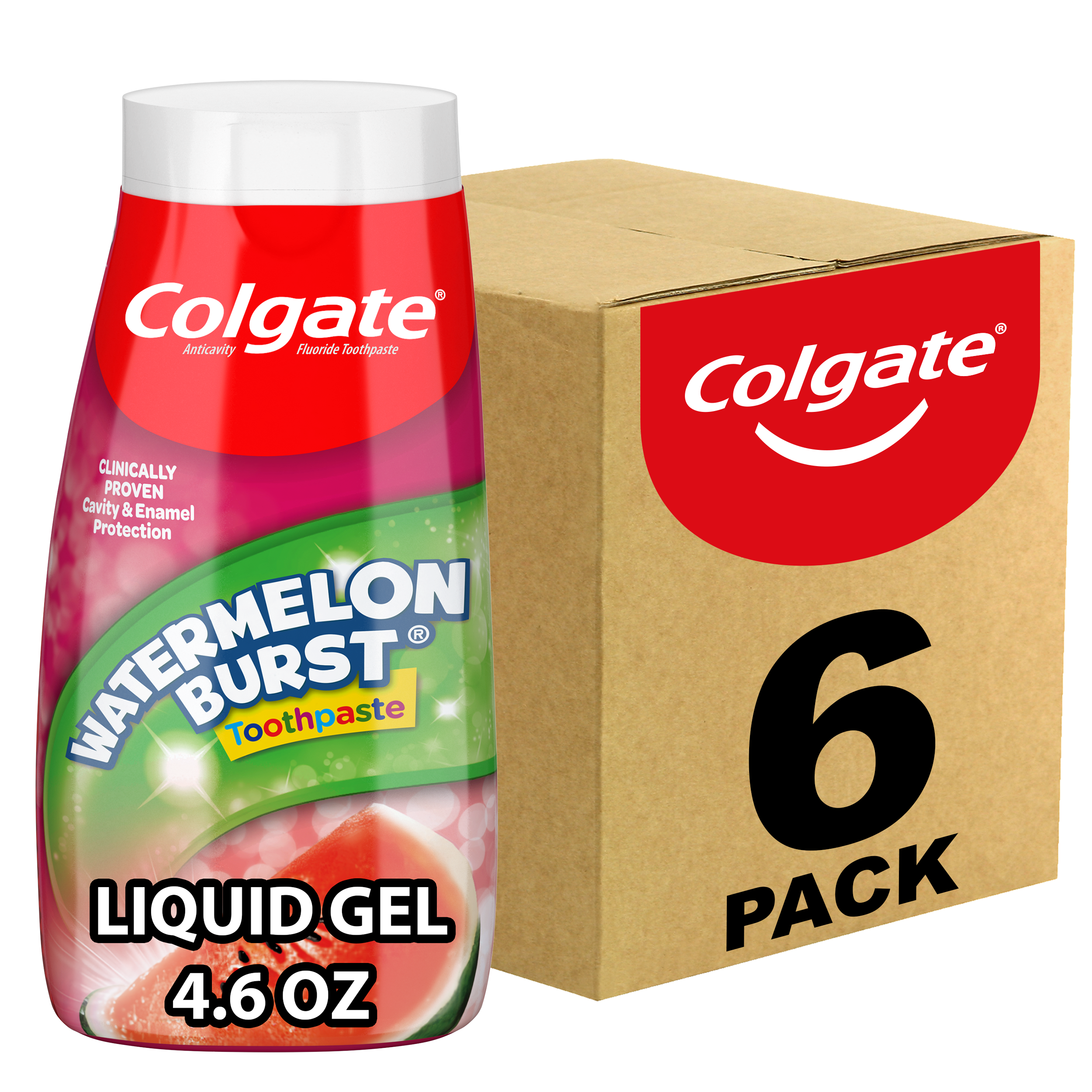 SKU 176441 Consumer Unit - GTIN 00035000764416 Case - GTIN 10035000764413 Product Category Oral Care Product Sub Category Toothpaste Product Equity (Brand) Colgate Product Sub Brand Colgate 2 in 1 TP Product Title Colgate Kids Fluoride Toothpaste, Watermelon Burst, 4.6 ounces (6 Pack) Product Description Colgate Fluoride Toothpaste , Watermelon Burst 6 Pack is a kids fluoride toothpaste that makes brushing enjoyable and encourages your child to maintain a daily oral care routine. Formulated in liquid gel form, this kids fluoride toothpaste provides clinically proven cavity and enamel protection and freshens the mouth with a burst of watermelon flavor loved by kids. The watermelon flavored toothpaste is also sugar- and gluten-free. Fun Flavored Toothpaste Loved by Kids When it comes to dental care, encouraging children to start brushing early and regularly is important. Colgate Kids Fluoride Toothpaste makes brushing fun. This easy to dispense gel toothpaste offers cavity and enamel protection, a fun, refreshing flavor, colorful packaging and a lifetime of bright smiles. Healthy Smiles With Colgate At Colgate, we make toothpaste that promotes healthy smiles. Not only because having a healthy smile is important to your overall health, but because when you have a healthy smile, you actually smile more – and that’s a powerful thing. Smiles are the simplest form of optimism, something we need now more than ever. That’s why we’re committed to raising oral healthcare standards everywhere. eCommerce Copy- Long Description Colgate Fluoride Toothpaste, Watermelon Burst is a kids fluoride toothpaste that makes brushing enjoyable and encourages your child to maintain a daily oral care routine. Formulated in liquid gel form, this kids fluoride toothpaste provides clinically proven cavity and enamel protection and freshens the mouth with a burst of watermelon flavor loved by kids. The watermelon flavored toothpaste is also sugar- and gluten-free. Bullet 1 Fluoride Toothpaste for Kids Bullet 2 Clinically proven cavity and enamel protection Bullet 3 Easy to dispense gel toothpaste Bullet 4 Fun watermelon flavor to encourage regular brushing Bullet 5 Bright and coloful package that your kids will like Bullet 6 Less mess Bullet 7 Helps protect against cavities Amazon RPC B0014CQA16 AMZ URL https://www.amazon.com/dp/B0014CQA16 Walmart RPC 10311745 Walmart URL (Computed) https://www.walmart.com/ip/a/10311745 Target RPC 13773703 Target URL https://www.target.com/p/a/-/A-13773703 Albertsons RPC 150010699 Albertsons URL https://www.albertsons.com/shop/product-details.150010699.html CVS RPC 272194