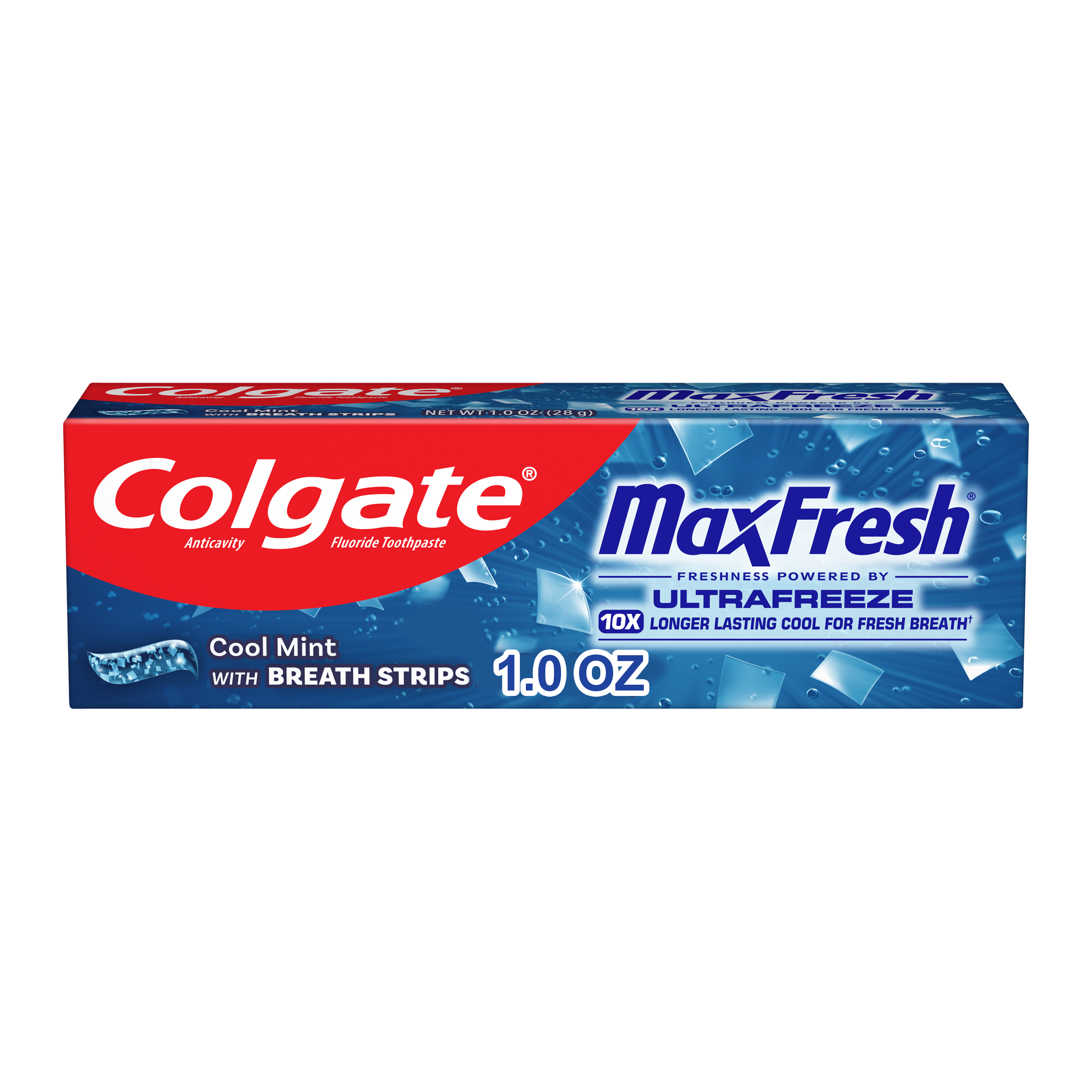 Colgate Max Fresh Travel Size Toothpaste with Mini Breath Strips, Cool Mint - 1.0 Ounce