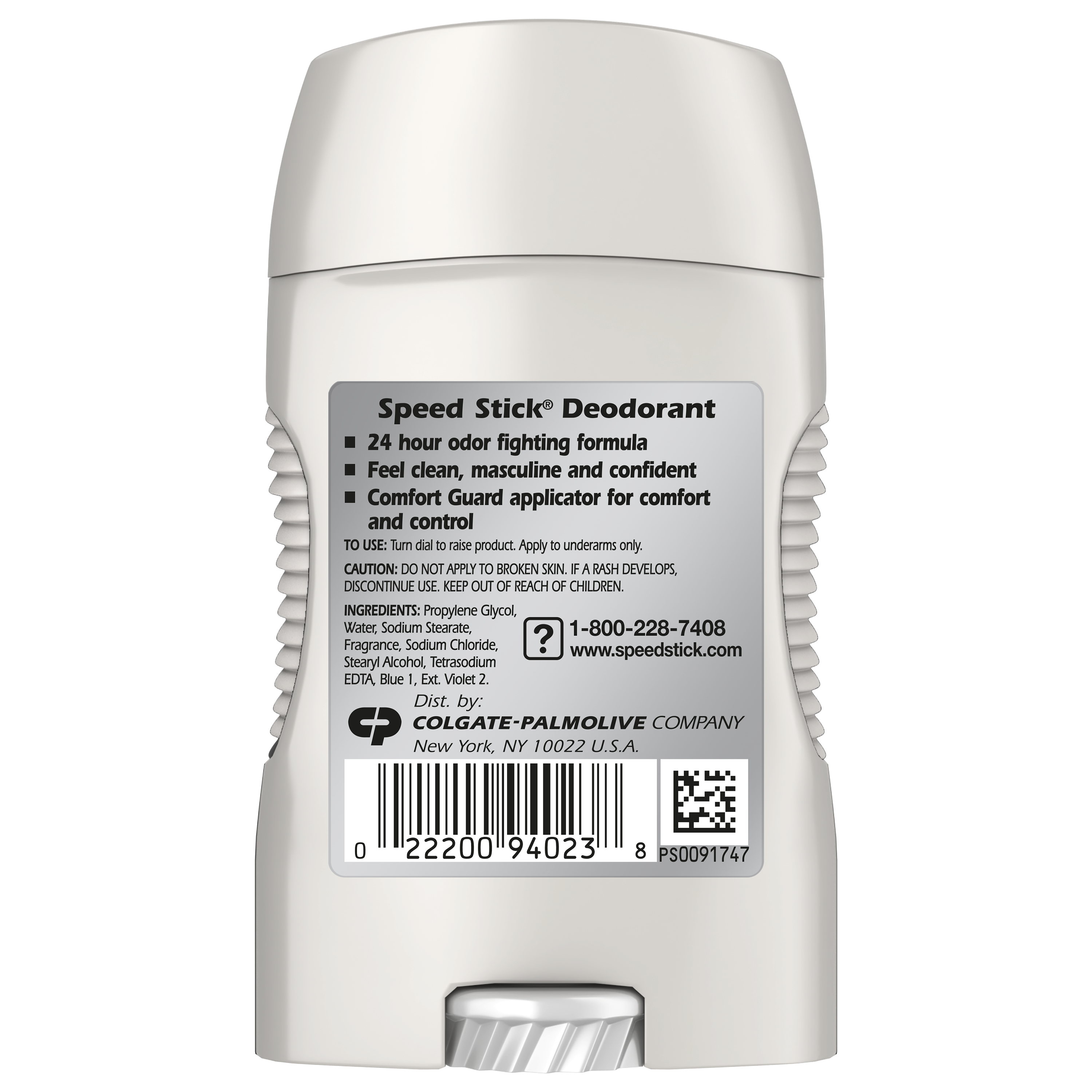 SKU 194023 Consumer Unit - GTIN 00022200940238 Case - GTIN 10022200940235 Product Category Personal Care Product Sub Category AP > Deo Product Equity (Brand) Mennen Speed Stick Product Sub Brand Mennen Speed Stick AP/Deo Product Title Speed Stick Men's Deodorant, Ocean Surf - 1.8 Ounce Product Description It’s time to be your own man in a world where the old patterns, rules and stages of progression are being redefined. Achieving your dreams takes courage when it counts. Feel clean, masculine and confident with Speed Stick Deodorant for Men, Ocean Surf scent. Odor fighting formula that provides 24 hour freshness for maximum confidence. Includes comfort guard applicator for comfort and control. eCommerce Copy- Long Description Feel clean, masculine and confident with Speed Stick Deodorant for Men, Ocean Surf scent. This odor-fighting formula provides 24 hour freshness for maximum confidence. This Speed Stick men’s deodorant includes a comfort guard applicator for comfort and control. This solid stick deodorant for men is aluminum free. The classic scent of Speed Stick Men’s Deodorant, Ocean Surf scent, will help you smell fresh and confident all day. Speed Stick Men’s Deodorant is aluminum free and provides all day freshness. With a 24 hour odor fighting formula, this deodorant for men will help you feel great and smell fresh all day. Feel confident to take on the day. The Speed Stick line of men’s deodorants and men’s antiperspirants come in a variety of scents and benefits. These include Zero, Aluminum Free, Irish Spring, Stainguard and Power variants. Speed Stick Irish Spring antiperspirant combines the protection of Speed Stick with the freshness of Irish Spring. Speed Stick Power antiperspirants provide 24 hour odor and wetness protection. Try them today to find the right deodorant and antiperspirant for you. Feel clean, masculine and confident with Speed Stick. Speed Stick deodorants and antiperspirants should only be applied directly underneath the arms. Remove the cap from the product. Turn the dial on the bottom clockwise to raise the deodorant or antiperspirant stick so that it is protruding from the container. Simply rub the deodorant or antiperspirant directly on the armpit and replace the cap. Bullet 1 Men's Deodorant with Odor Fighting Formula that Provides 24 Hour Freshness for maximum confidence Bullet 2 Feel clean, masculine and confident Bullet 3 Aluminum Free Bullet 4 Includes guard applicator for comfort and control Dollar Tree RPC 165186 Family Dollar RPC 2008429