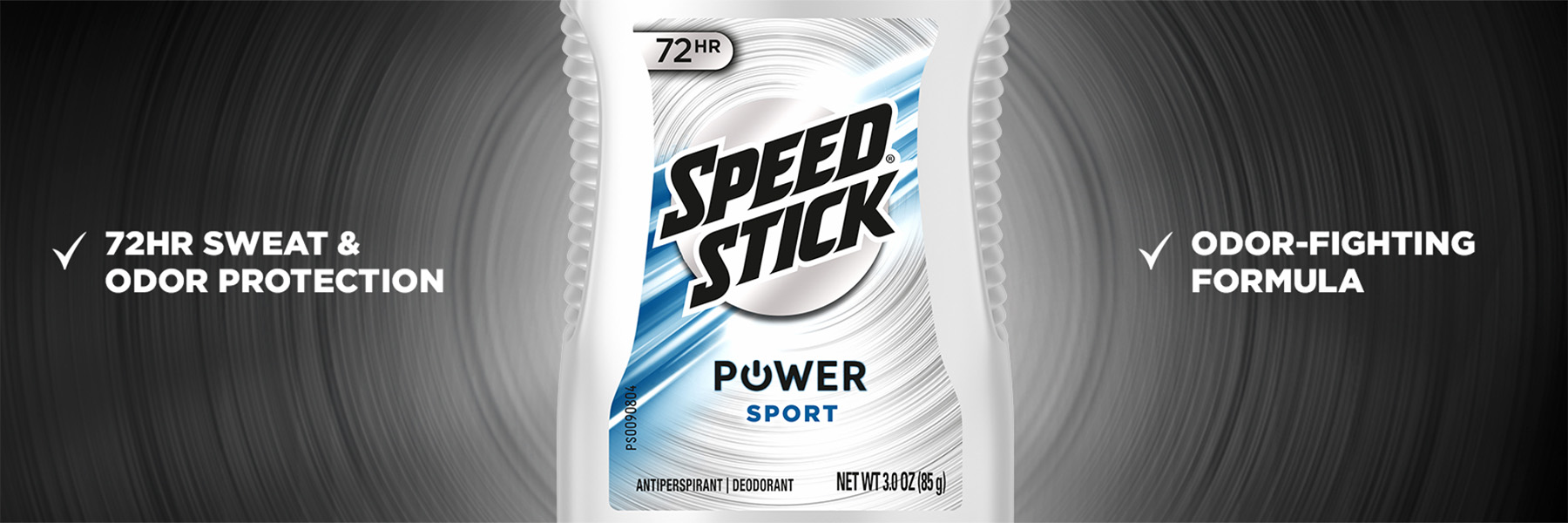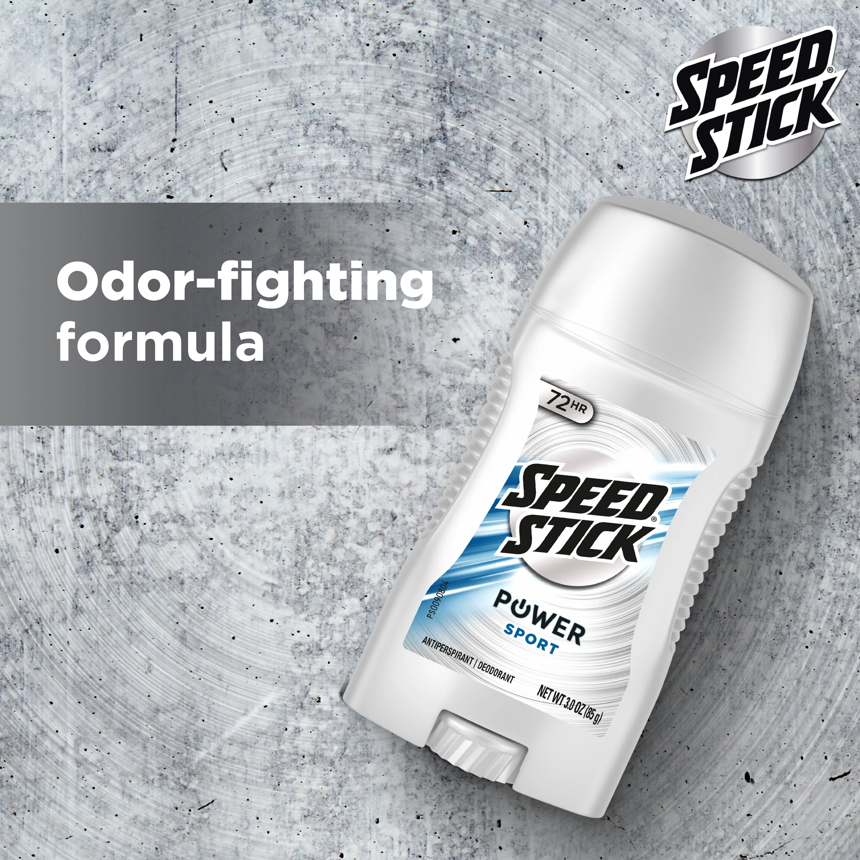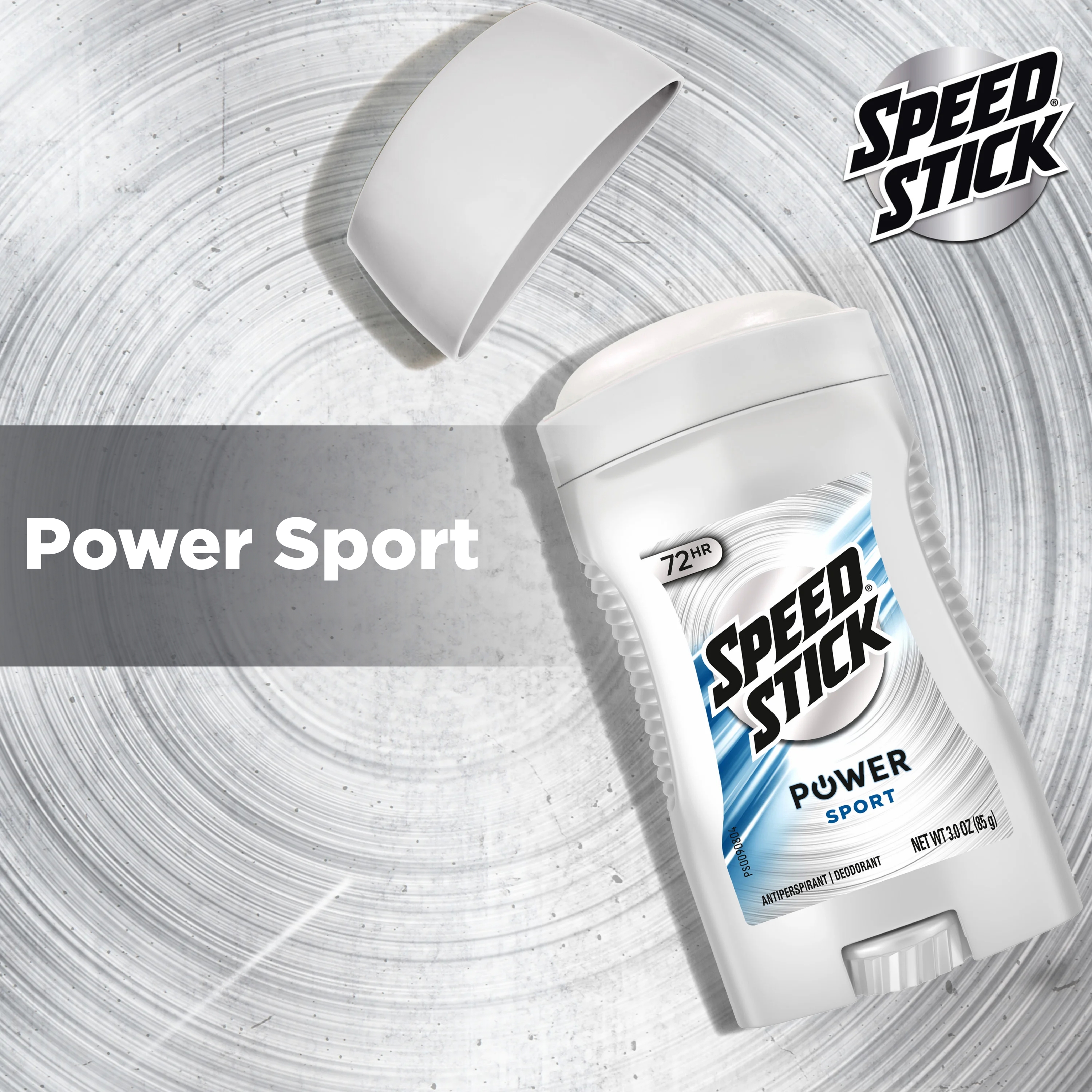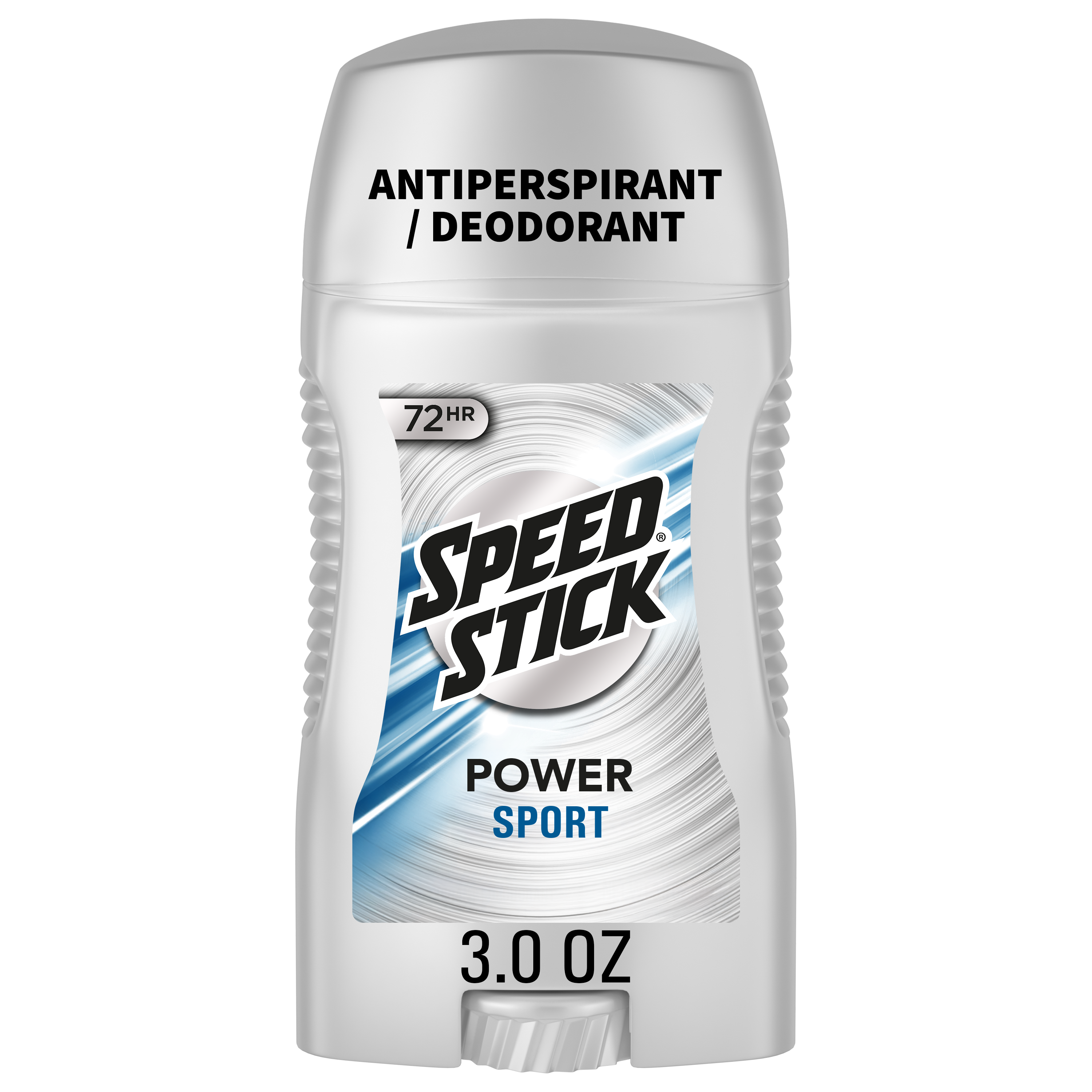 SKU 195100 Consumer Unit - GTIN 00022200004923 Case - GTIN 00022200951005 Product Category Personal Care Product Sub Category AP > Deo Product Equity (Brand) Speed Stick Product Sub Brand Mennen Speed Stick Ultimate AP/Deo Product Title Speed Stick Power Antiperspirant Deodorant for Men, 72 HR Sweat & Odor Protection, Sport Scent, 3.0 oz Stick Product Description Speed Stick Antiperspirant Deodorant features a Sport Scent that ignites your day. Powered by long‑lasting antiperspirant protection, this solid stick delivers 72 hour sweat and odor protection, so you stay fresh, dry, and confident from your morning to night. The fragrance blends bright citrus with juicy pear, eucalyptus and mint, water fruits, and subtle notes of musk, cedarwood, and amber for a clean, masculine finish. Engineered for comfort and control, the unique comfort guard applicator delivers a smooth, precise glide and even coverage every time. Whether you’re conquering the office, hitting the gym, or heading out after hours, Speed Stick keeps you covered with premium performance you can rely on. Elevate your grooming routine with antiperspirant deodorant protection that helps you feel confident in any situation—clean, dry, and ready to move with Speed Stick Deodorant for Men. eCommerce Copy- Long Description Feel clean, masculine and confident with Speed Stick Antiperspirant and Deodorant for Men, Ultimate Sport scent. This Speed Stick men’s antiperspirant provides 24 hour odor and wetness protection for maximum confidence. This Speed Stick men’s deodorant includes a comfort guard applicator for comfort and control. This solid stick deodorant for men keeps you dry all day. With an Ultimate Sport scent, this deodorant for men will help you smell great and feel confident all day. Speed Stick Men’s Antiperspirant and Deodorant provides 24 hour odor and wetness protection so you can feel fresh and dry all day. Feel confident to take on the day. The Speed Stick line of men’s deodorants and men’s antiperspirants come in a variety of scents and benefits. These include Zero, Aluminum Free, Irish Spring, Stainguard and Power variants. Speed Stick Irish Spring antiperspirant combines the protection of Speed Stick with the freshness of Irish Spring. Speed Stick Power antiperspirants provide 24 hour odor and wetness protection. Try them today to find the right deodorant and antiperspirant for you. Feel clean, masculine and confident with Speed Stick. Speed Stick deodorants and antiperspirants should only be applied directly underneath the arms. Remove the cap from the product. Turn the dial on the bottom clockwise to raise the deodorant or antiperspirant stick so that it is protruding from the container. Simply rub the deodorant or antiperspirant directly on the armpit and replace the cap. Bullet 1 Includes one 3.0 oz stick of Speed Stick Power Antiperspirant Deodorant For Men, Sport Scent Bullet 2 Our underarm deodorant in Sport Scent delivers a classic fragrance that complements any lifestyle Bullet 3 Powered by long‑lasting antiperspirant protection, this solid stick delivers 72 hour sweat and odor protection, so you stay fresh, dry, and confident Bullet 4 This men's antiperspirant includes a unique comfort guard applicator, ensuring a smooth application process Bullet 5 Reliable performance for gym sessions, busy workdays, and nights out—designed for men and ideal for active lifestyles Bullet 6 Elevate your grooming routine with antiperspirant deodorant protection that helps you feel confident in any situation with Speed Stick Deodorant for Men Active Ingredients Aluminum Zirconium Tetrachlorohydrex GLY 15.8% Walmart RPC 10403210 Walmart URL (Computed) https://www.walmart.com/ip/a/10403210