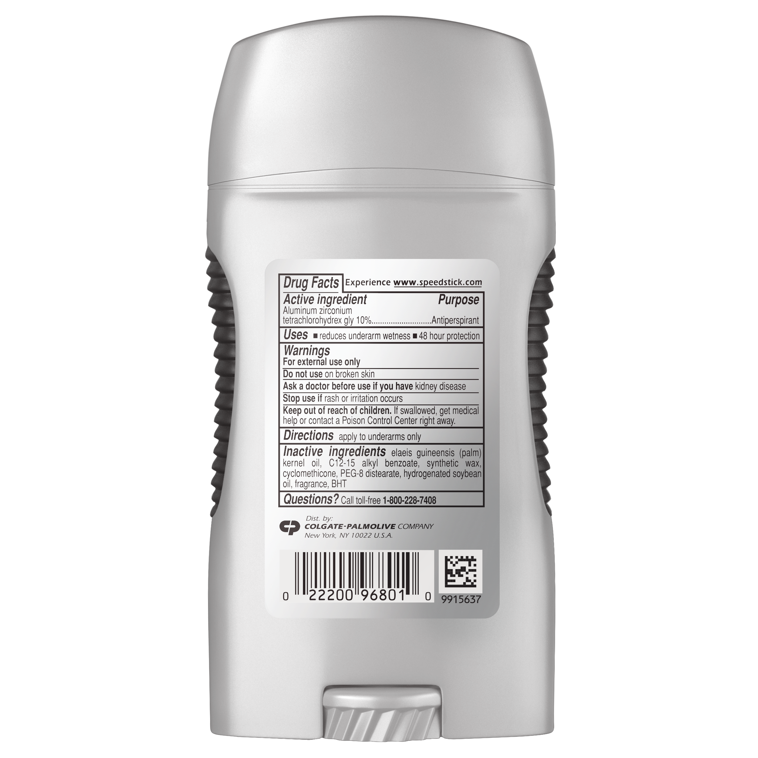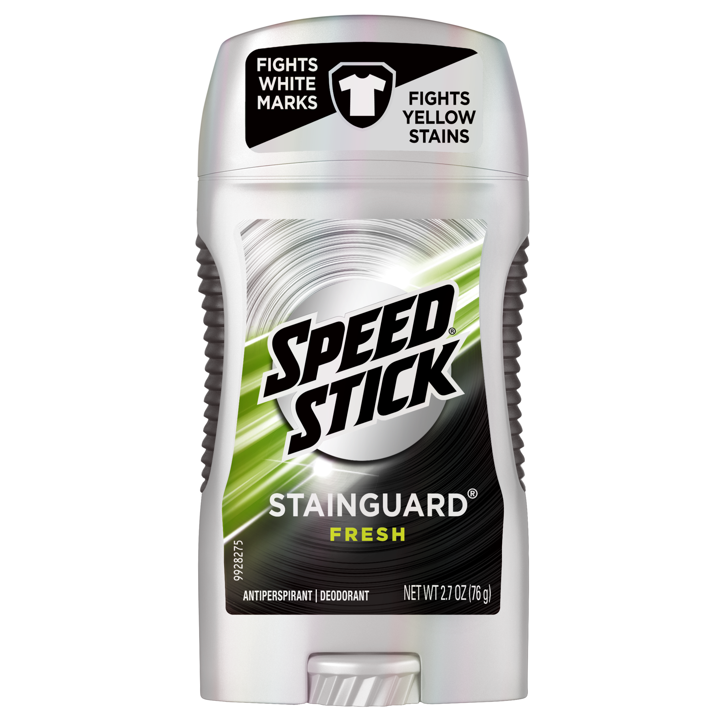 SKU 196801 Consumer Unit - GTIN 00022200968010 Case - GTIN 10022200968017 Product Category Personal Care Product Sub Category AP > Deo Product Equity (Brand) Speed Stick Product Sub Brand Mennen Speed Stick Stainguard AP/Deo Product Title Speed Stick Men's Stainguard Antiperspirant, Fresh Scent - 2.7oz Product Description We know you've been preparing all your life for those moments that matter and that sometimes, out of nowhere, a bit of self-doubt creeps in. That’s not you! Remember, you don’t sweat it – because you’ve got game and you’ve got Speed Stick. Speed Stick Overtime Stainguard, Antiperspirant & Deodorant for Men delivers invisible application, for 48 hour odor and wetness protection. Active Ingredients Active Ingredient: Aluminum Zirconium Tetrachlorohydrex Gly (10%). Purpose: Antiperspirant.