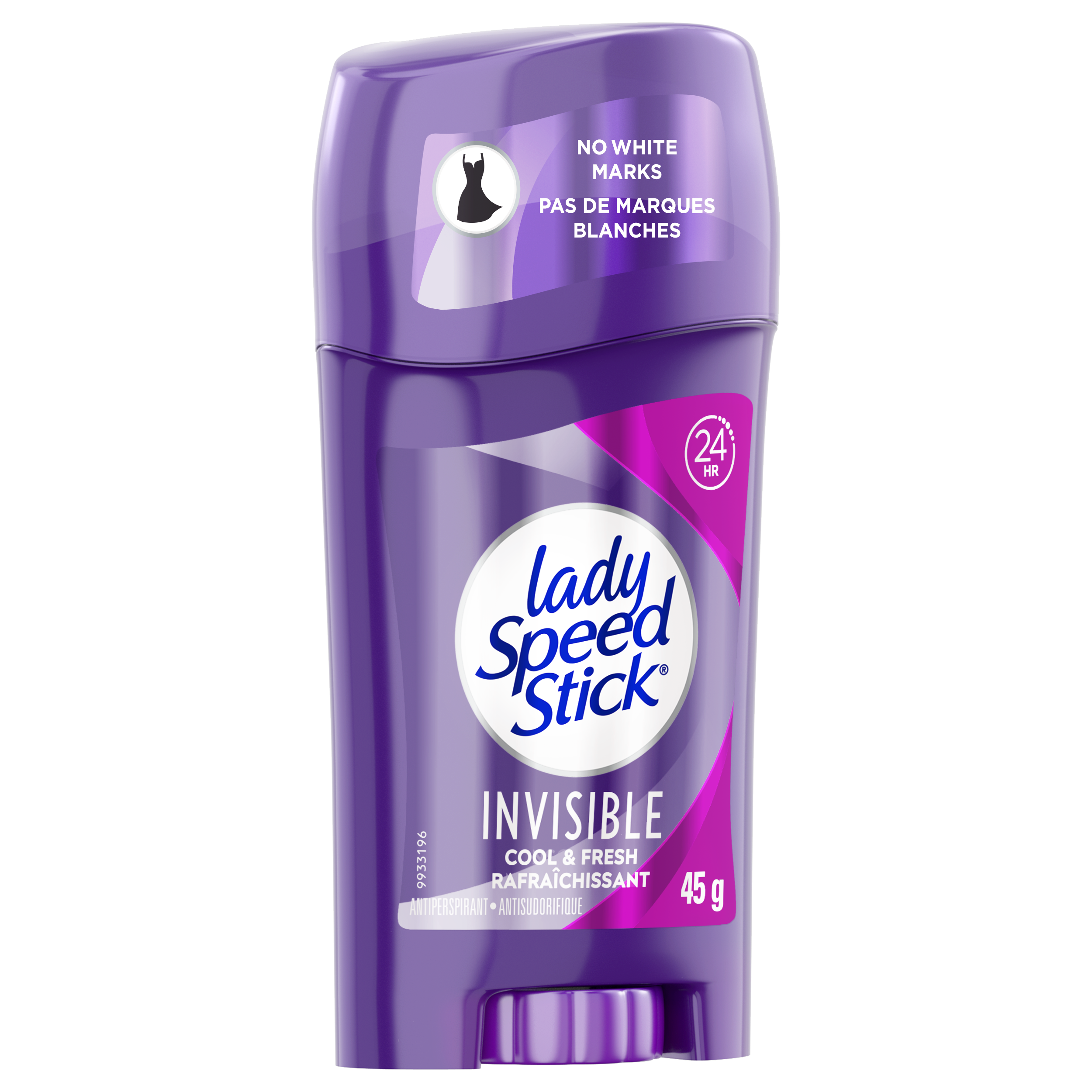 SKU 312487 Consumer Unit - GTIN 00058000001855 Case - GTIN 10058000001852 Product Category Personal Care Product Sub Category AP > Deo Product Equity (Brand) Lady Speed Stick Product Sub Brand Lady Speed Stick Invisible AP/Deo Product Title Lady Speed Stick Antiperspirant Deodorant, Invisible, Cool Fresh, 45g Product Description Stay comfortable and dry all day long with Lady Speed Stick Invisible Antiperspirant Deodorant. This antiperspirant deodorant features a scent renewal formula to give you a confident, fresh scent throughout the day. Lady Speed Stick Antiperspirant Deodorant, reduces underarm perspiration, leaves no residue and offers 24-hour protection. This antiperspirant deodorant goes on clear for added security. This allows you to wear that little black dress with confidence. eCommerce Copy- Long Description Stay comfortable and dry all day long with Lady Speed Stick Invisible Antiperspirant Deodorant. This antiperspirant deodorant features a scent renewal formula to give you a confident, fresh scent throughout the day. Lady Speed Stick Antiperspirant Deodorant, reduces underarm perspiration, leaves no residue and offers 24-hour protection. This antiperspirant deodorant goes on clear for added security. This allows you to wear that little black dress with confidence. Bullet 1 Stay comfortable and dry all day long with Lady Speed Stick Invisible Antiperspirant Deodorant. Bullet 2 This antiperspirant deodorant features a scent renewal formula to give you a confident, fresh scent throughout the day. Bullet 3 Lady Speed Stick Antiperspirant Deodorant, reduces underarm perspiration, leaves no residue and offers 24-hour protection. Bullet 4 This antiperspirant deodorant goes on clear for added security. Active Ingredients Active Ingredient: Aluminum Zirconium Tetrachlorohydrex Gly (15.4%) Purpose: Antiperspirant.