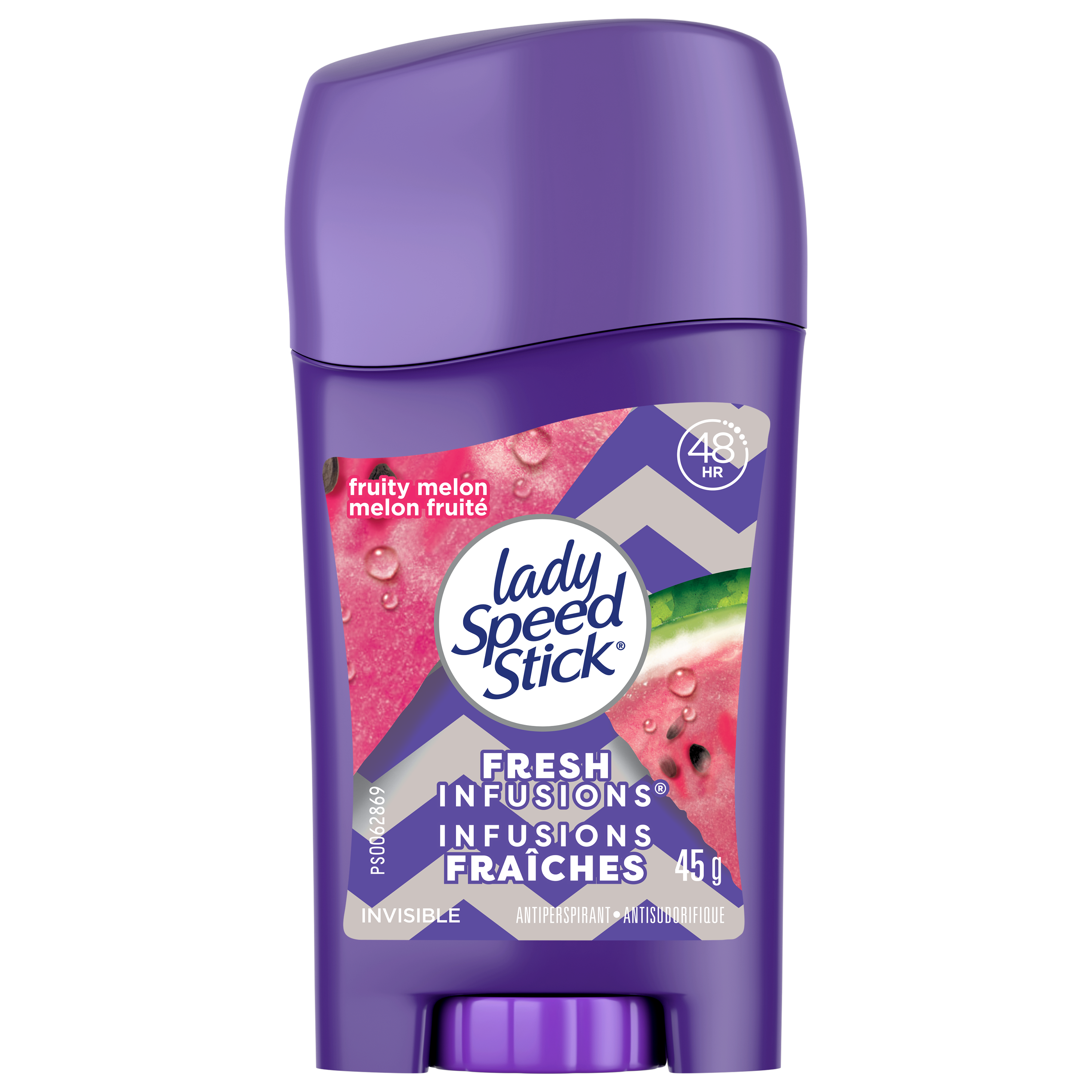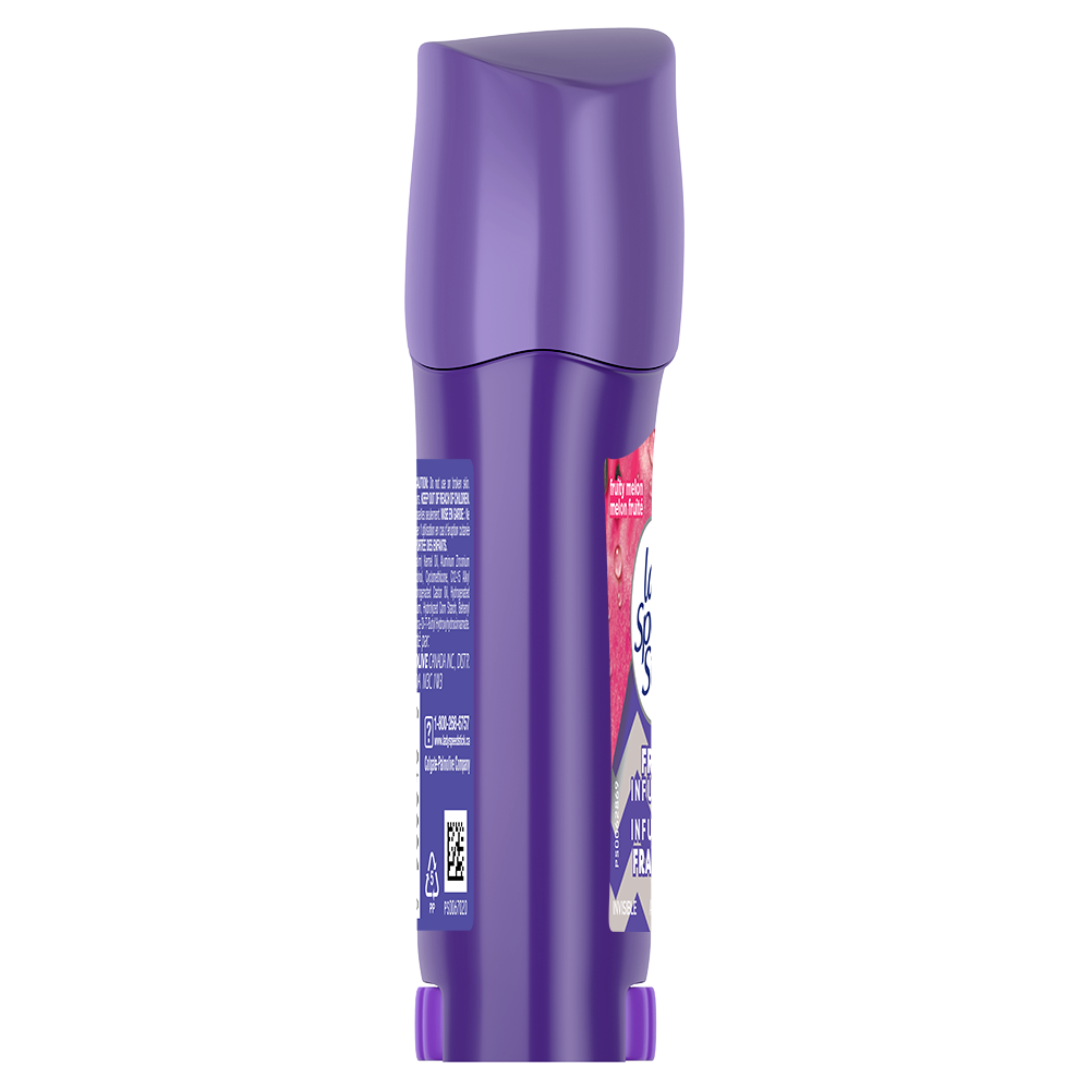 SKU 312519 Consumer Unit - GTIN 00058000006843 Case - GTIN 10058000006840 Product Category Personal Care Product Sub Category AP > Deo Product Equity (Brand) Lady Speed Stick Product Sub Brand Lady Speed Stick Fresh Infusion AP/Deo Product Title Lady Speed Stick Antiperspirant Deodorant, Fresh Infusions, Fruity Melon, 45g Product Description Lady Speed Stick Antiperspirant Deodorant, Fresh Infusions Invisible Solid, helps you feel forever fresh with 48 hour protection and a burst of vibrant fragrance. This Antiperspirant Deodorant provides you with a 48 hour odour and wetness protection. This Antiperspirant Deodorant is invisible, so it goes on clear for added confidence. eCommerce Copy- Long Description Lady Speed Stick Antiperspirant Deodorant, Fresh Infusions Invisible Solid, helps you feel forever fresh with 48 hour protection and a burst of vibrant fragrance. This Antiperspirant Deodorant provides you with a 48 hour odour and wetness protection. This Antiperspirant Deodorant is invisible, so it goes on clear for added confidence. Bullet 1 Lady Speed Stick Antiperspirant Deodorant, Fresh Infusions Invisible Solid, helps you feel forever fresh with 48 hour protection and a burst of vibrant fragrance. Bullet 2 This Antiperspirant Deodorant provides you with a 48 hour odour and wetness protection. Bullet 3 This Antiperspirant Deodorant is invisible, so it goes on clear for added confidence.