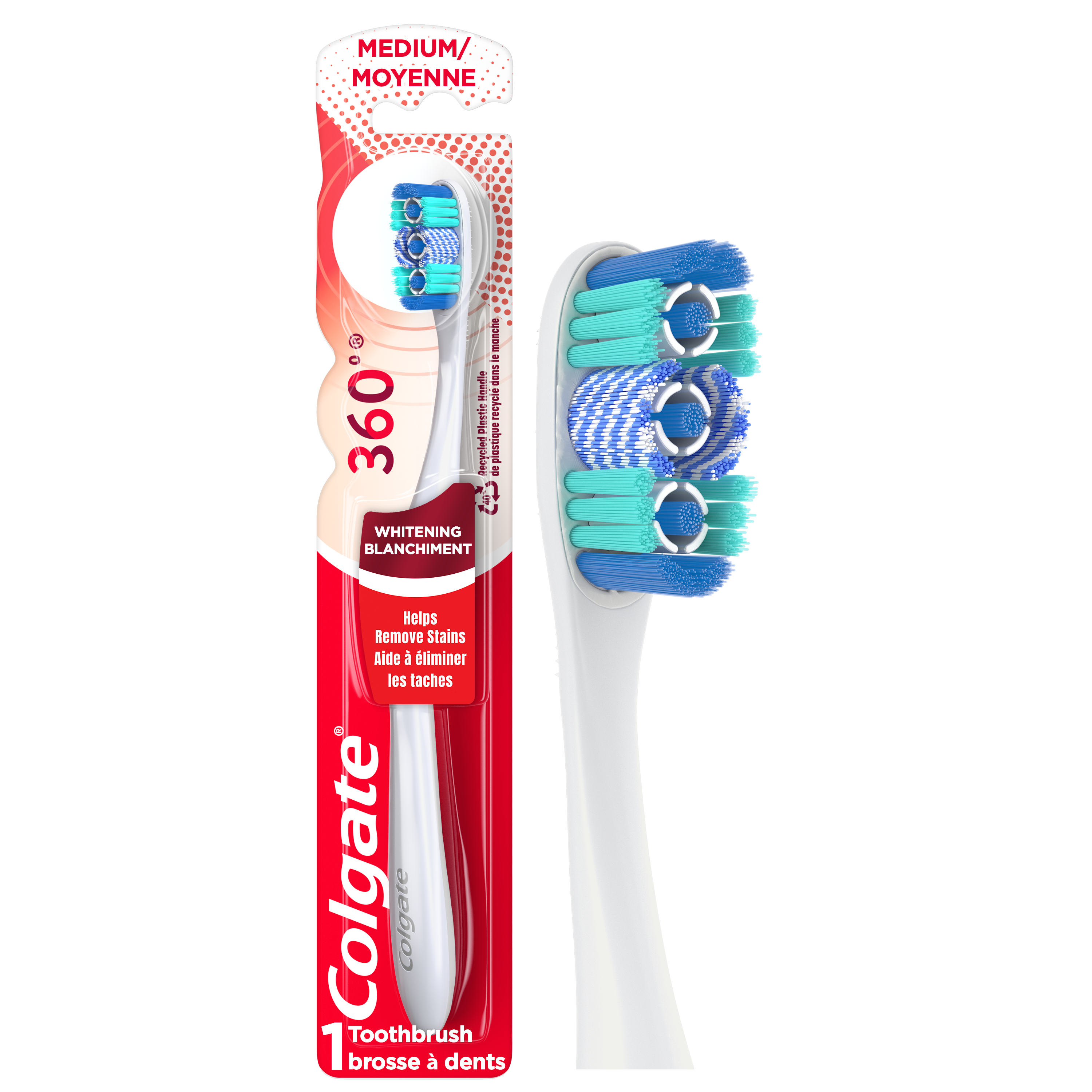 Colgate 360 Optic White Whitening Toothbrush, Medium