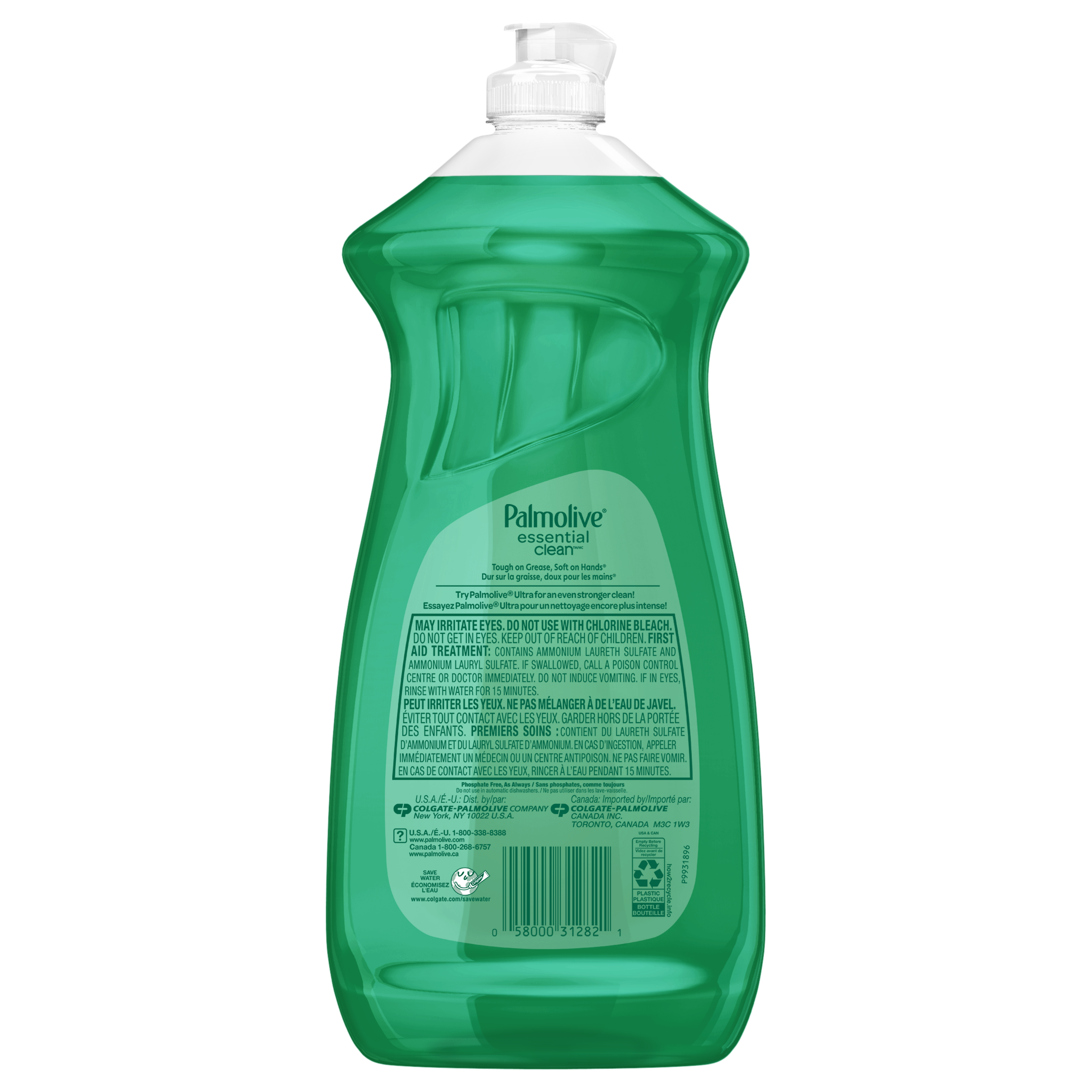 SKU 321055 Consumer Unit - GTIN 00058000312821 Case - GTIN 10058000312828 Product Category Home Care Product Sub Category Dish Hand Product Equity (Brand) Palmolive Product Sub Brand Palmolive HD Product Title Palmolive Essential Clean Liquid Dish Soap, Original - 1 Liter Product Description Remove stubborn food grime and particles from your plates with this Original Palmolive Dish Liquid. It contains a formula designed to be tough on grease while remaining soft on your hands. This phosphate-free dish washing liquid is suitable for tackling even your hardest-to-clean pots and pans. eCommerce Copy- Long Description Remove stubborn food grime and particles from your plates with this Original Palmolive Dish Liquid. It contains a formula designed to be tough on grease while remaining soft on your hands. This phosphate-free dish washing liquid is suitable for tackling even your hardest-to-clean pots and pans. Bullet 1 Sparkling clean dishes Bullet 2 Kosher Bullet 3 Non-concentrated