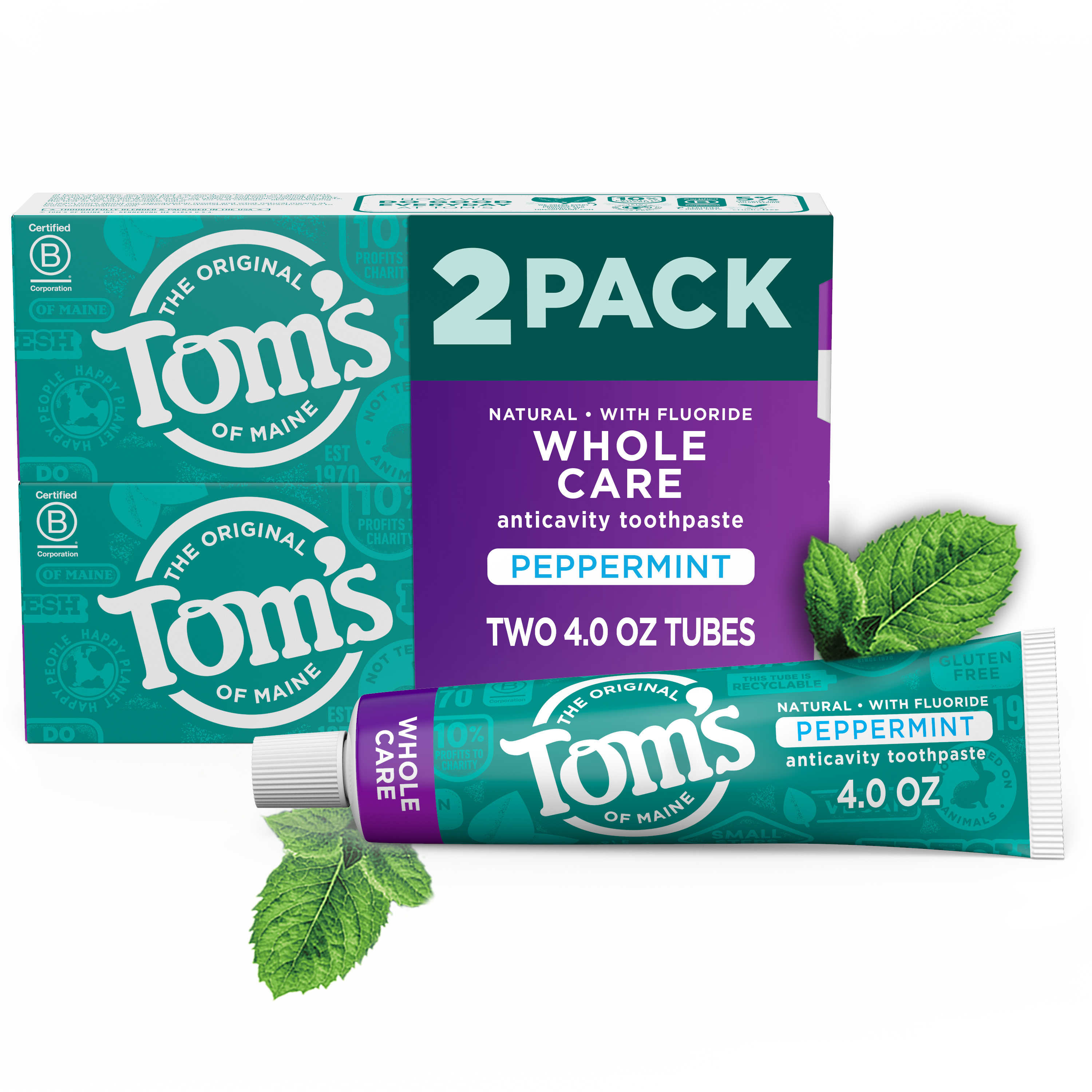 Tom’s of Maine Whole Care Natural Toothpaste Pack with Fluoride, Peppermint