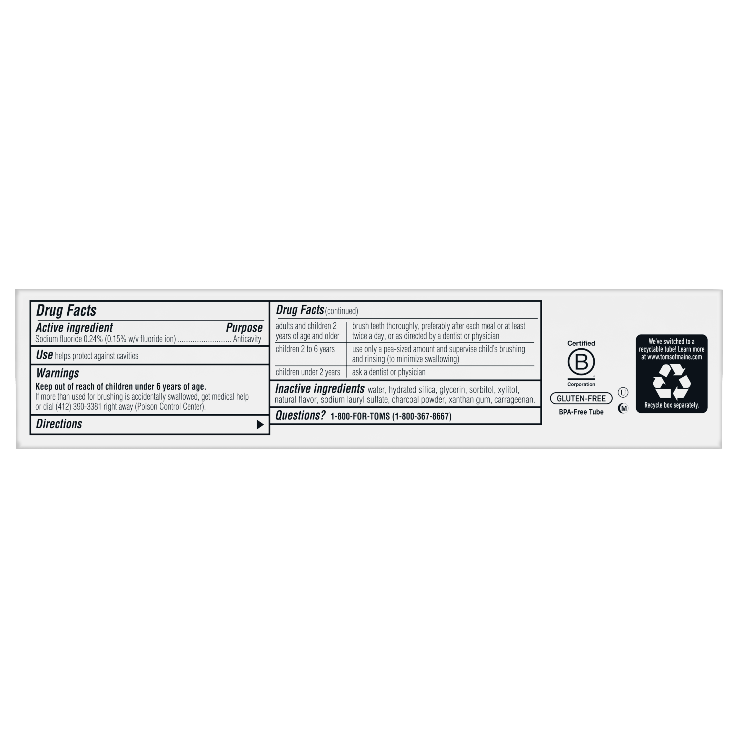 SKU 61011810 Consumer Unit - GTIN 00035000987778 Case - GTIN 10035000987775 Product Category Oral Care Product Sub Category Toothpaste Product Equity (Brand) Tom's of Maine Product Sub Brand Tom's Luminous White TP Product Title Tom's of Maine Luminous White Natural Toothpaste With Charcoal, Peppermint, 4 oz.