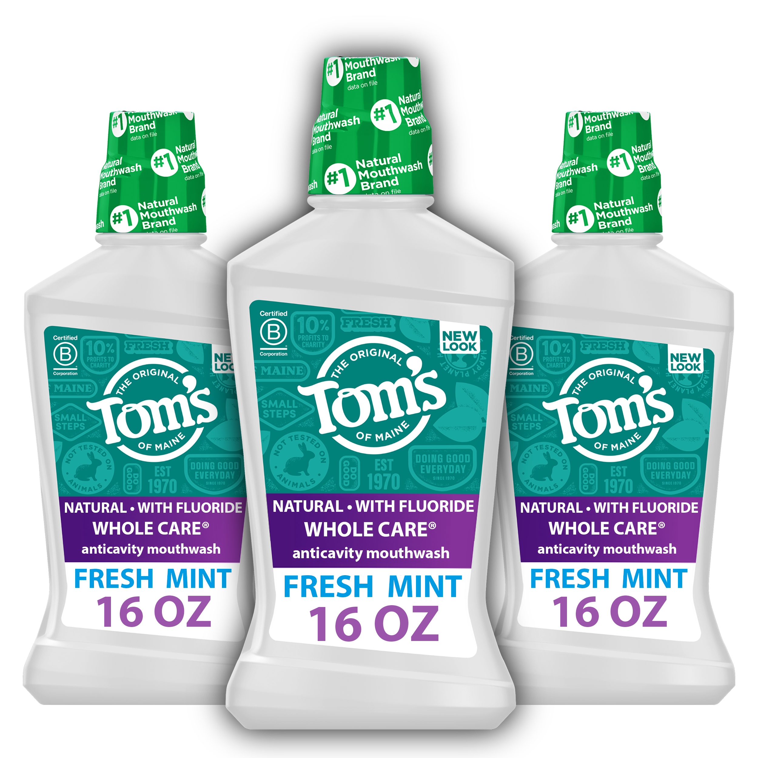 Tom's of Maine Whole Care Natural Fluoride Mouthwash, Fresh Mint, 16 oz. 3-Pack