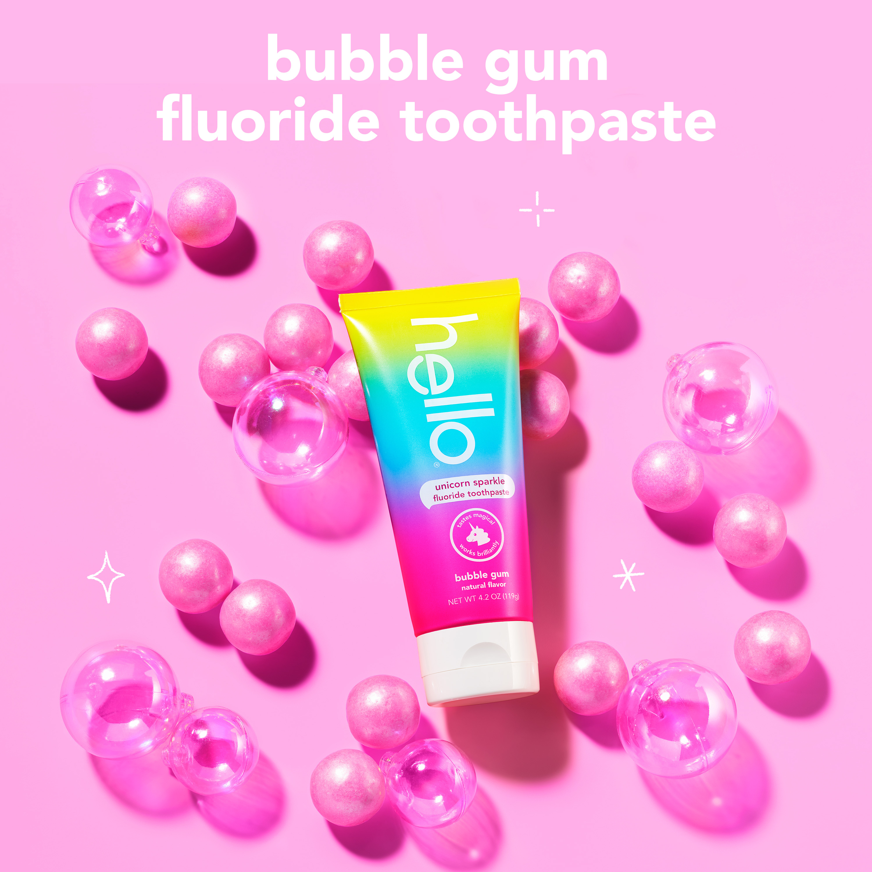 hello Unicorn Sparkle Kids Toothpaste with Fluoride, Bubble Gum Toothpaste, 4.2 Oz Tube