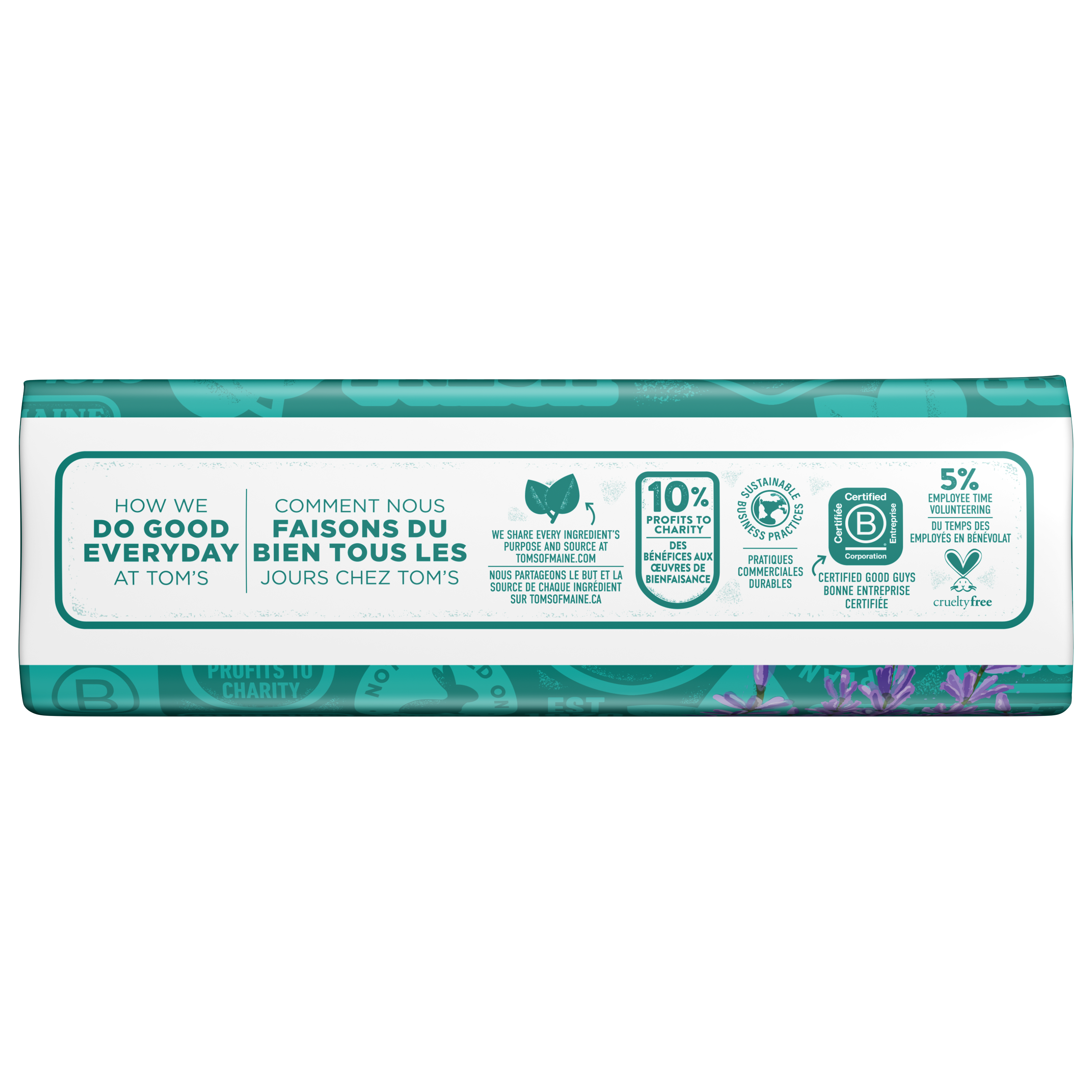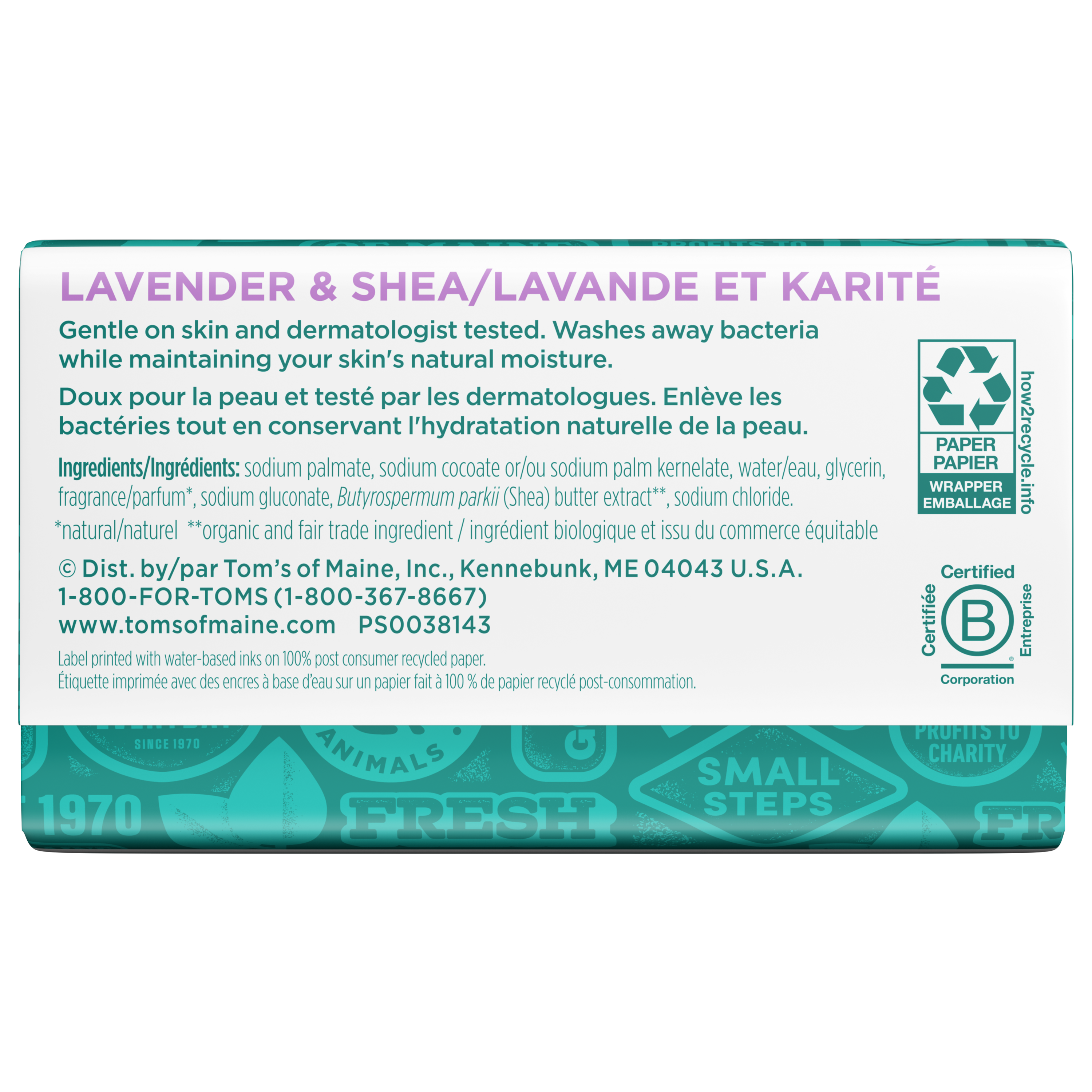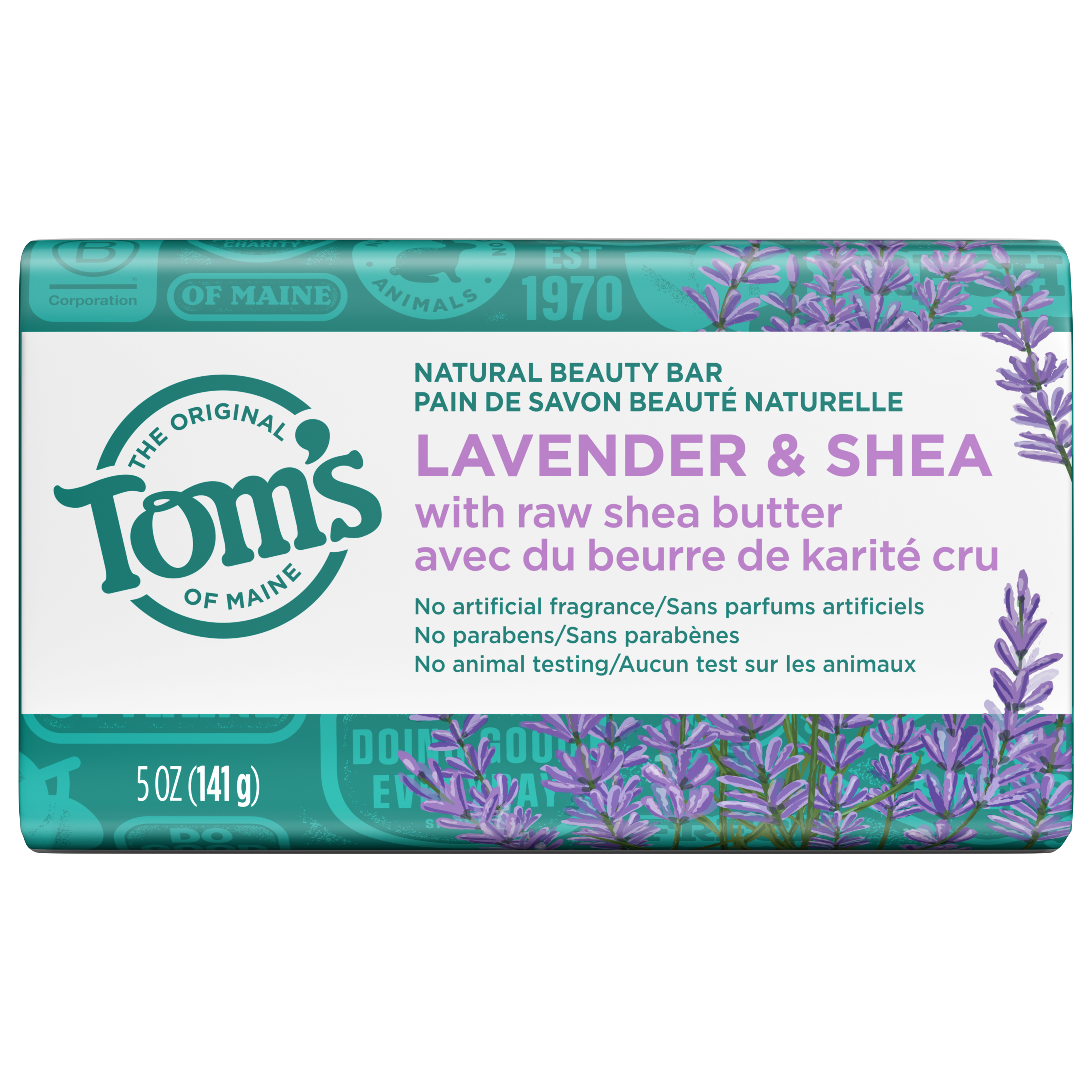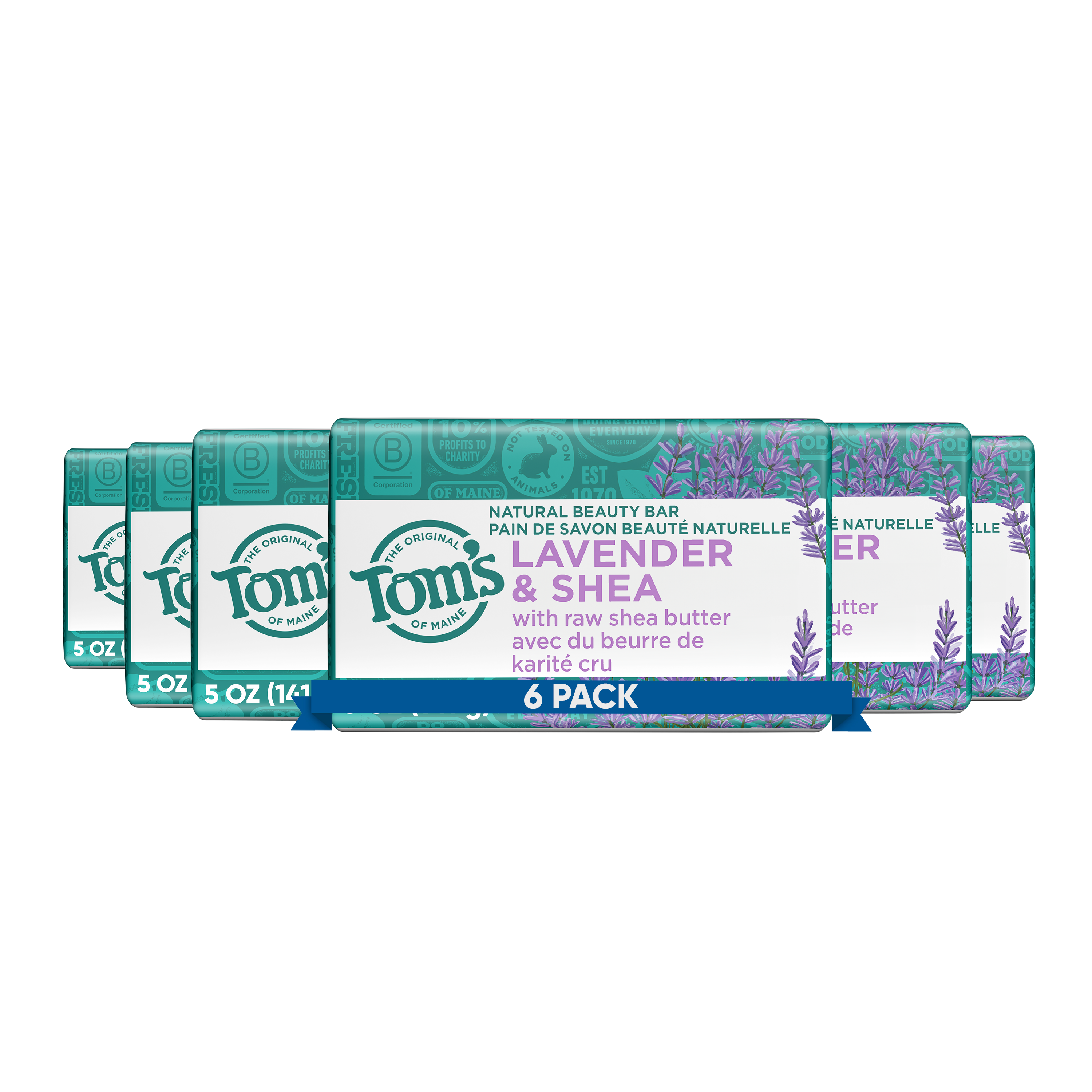 SKU 61015142 Consumer Unit - GTIN 00035000992642 Case - GTIN 10035000992649 Product Category Personal Care Product Sub Category Bar Soap Product Equity (Brand) Tom's of Maine Product Sub Brand Tom's Natural Beauty BS Product Title Tom’s of Maine Natural Beauty Bar Soap For Women and Men, Lavender & Shea, 5 oz Bar (Pack of 6) Product Description Elevate your daily routine with Tom's of Maine Natural Lavender & Shea Beauty Bar Soap. This dermatologist tested soap effectively washes away bacteria while maintaining your skin’s natural moisture, ensuring it is gentle on your skin. Each wash releases the calming scent of lavender and is made with shea butter for a soothing experience. Our vegan bar soap is crafted with organic botanical coconut oil and is made with no artificial fragrances and no parabens. Breathe in the refreshing fragrance of Lavender & Shea with every wash with Tom's of Maine, a brand dedicated to responsible and sustainable practices. Our bar soaps are not tested on animals, free from preservatives, and provide a refreshing bathing experience. Bullet 1 Six (6) 5 oz bars of Tom's of Maine Lavender & Shea Natural Beauty Bar Soap For Men and Women; Made with organic botanical coconut oil Bullet 2 Lavender bar soap that is enriched with raw shea butter Bullet 3 This body bar soap washes away bacteria and helps retain skin’s natural moisture Bullet 4 Our natural bar soap is gentle on skin and dermatologically tested Bullet 5 This soap bar is free from artificial fragrances, parabens, and preservatives, and is not tested on animals Amazon RPC B01MQD8LHR AMZ URL https://www.amazon.com/dp/B01MQD8LHR