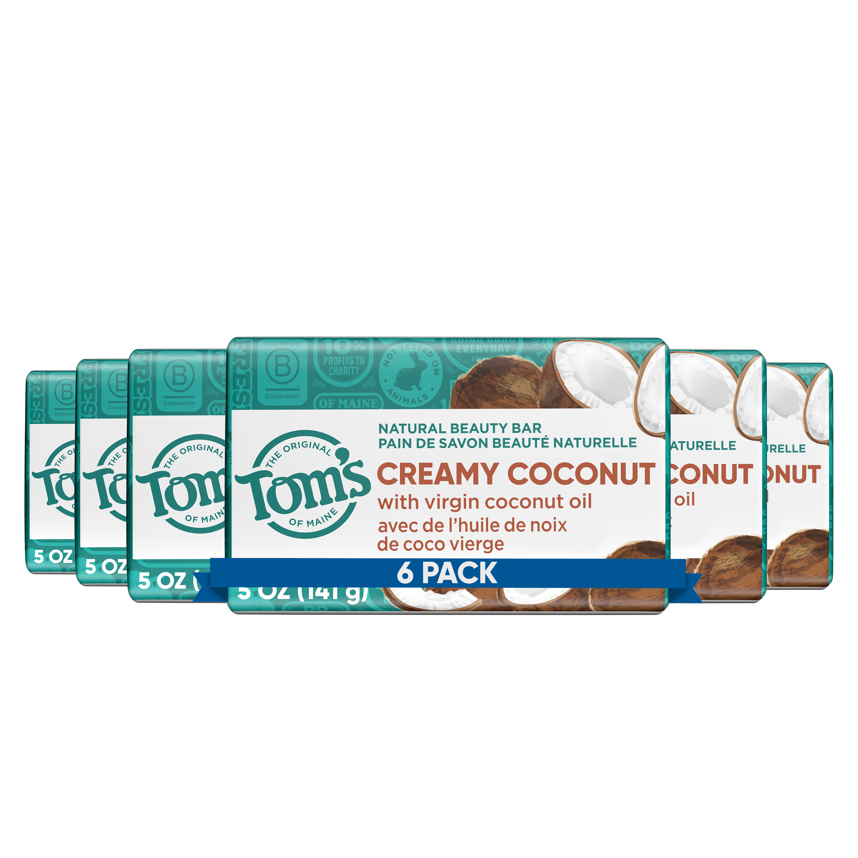 Tom’s of Maine Natural Beauty Bar Soap For Women and Men, Creamy Coconut, 5 oz Bar (Pack of 6)