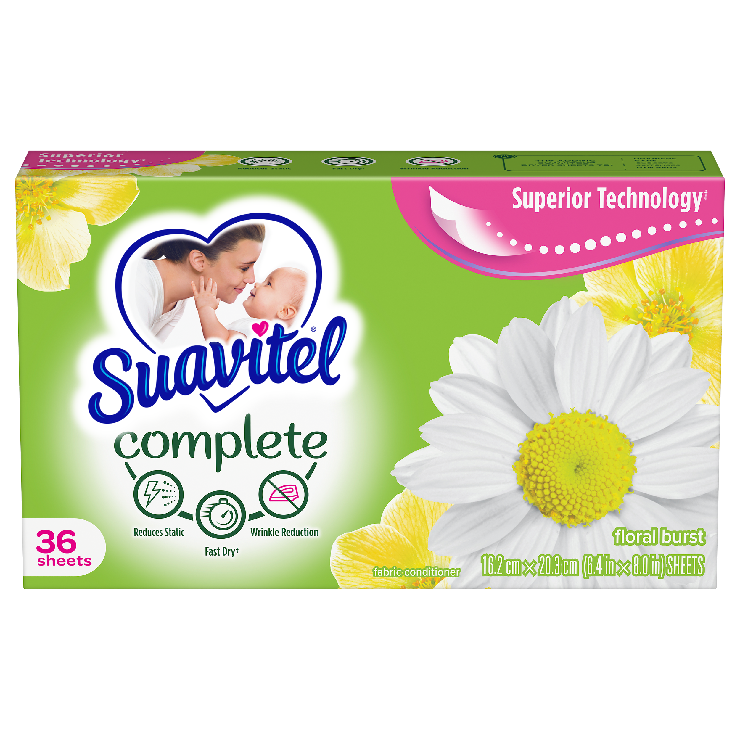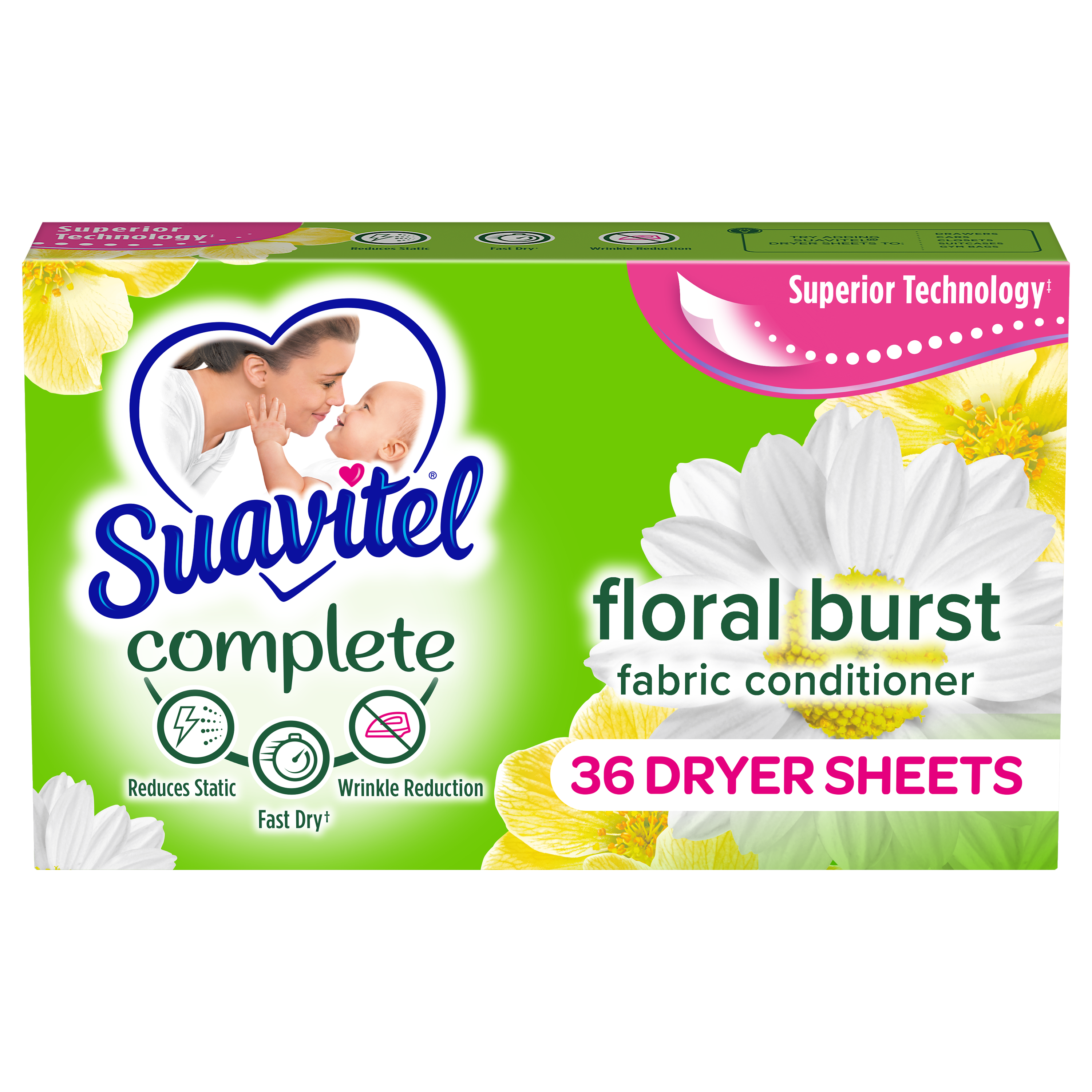 Suavitel Complete Dryer Sheets, Fabric Conditioner, Floral Burst Scent, 36 Sheets