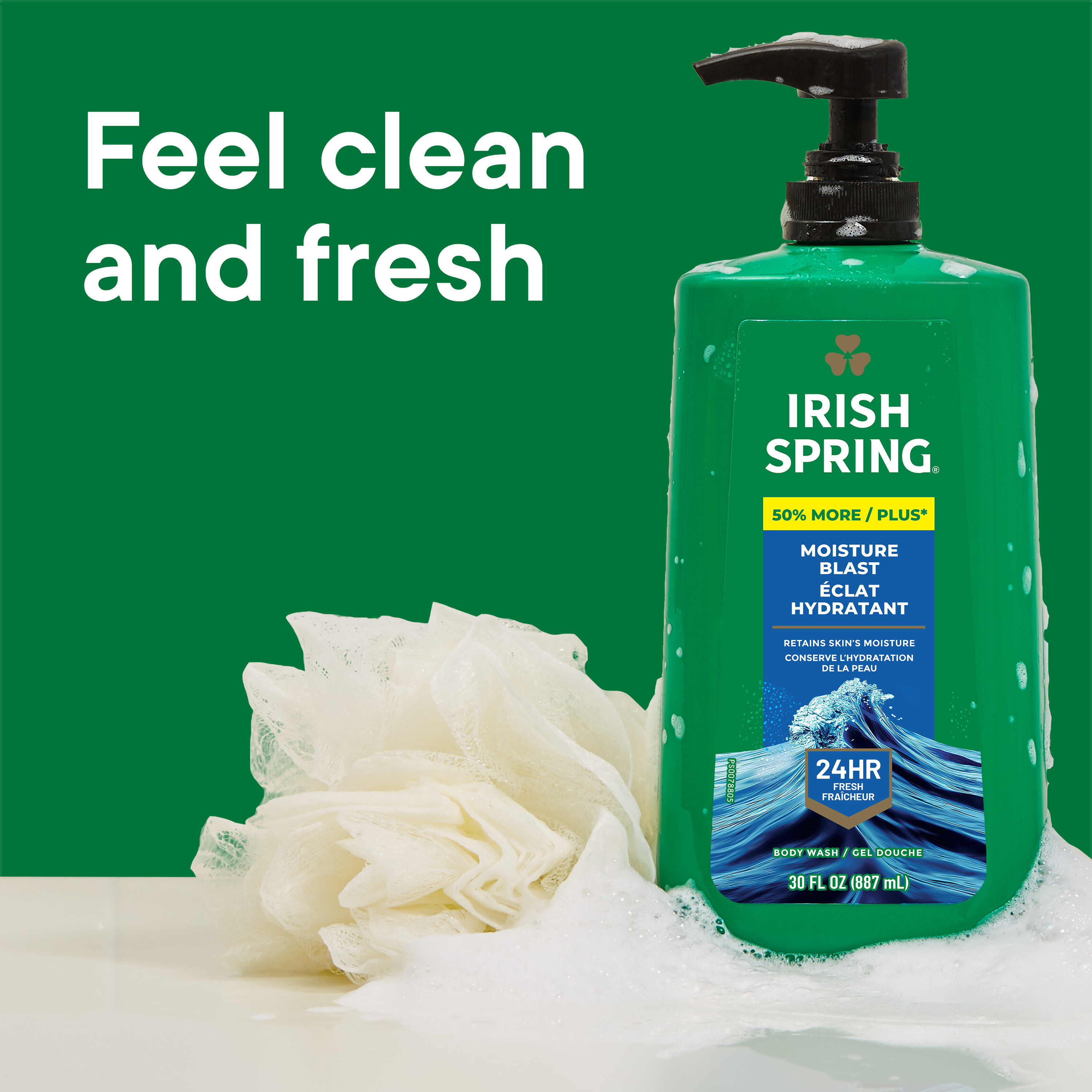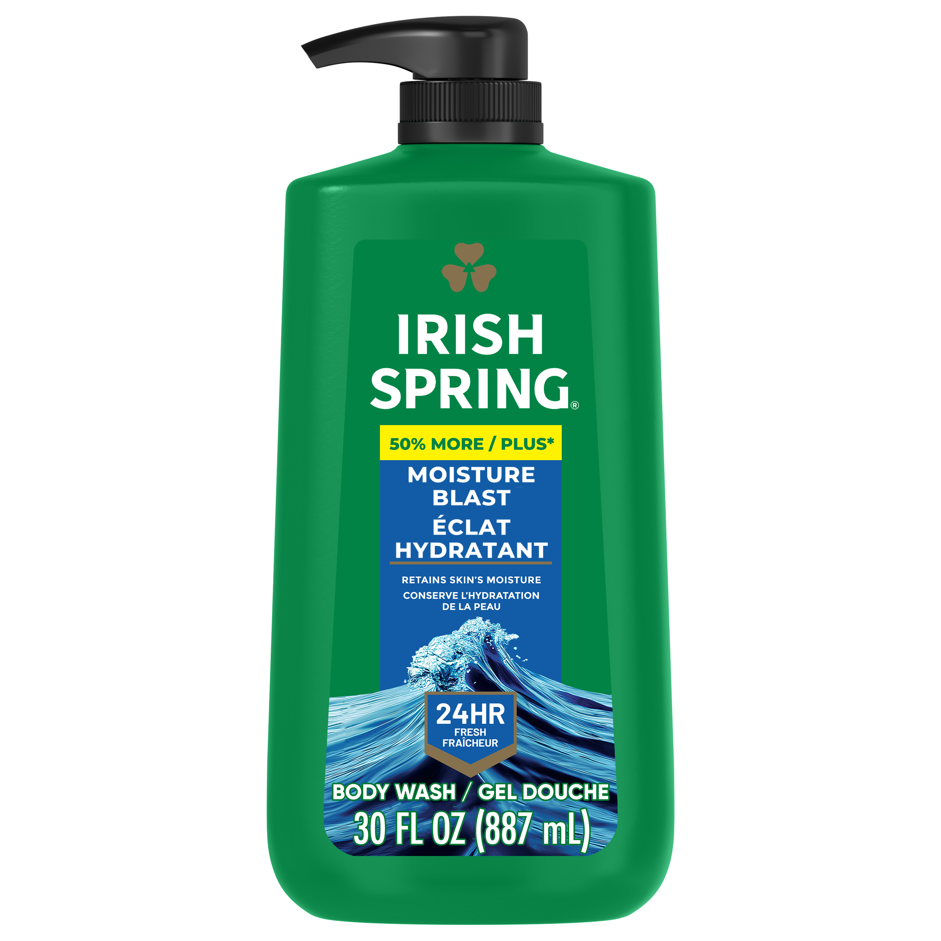 SKU 61017105 Consumer Unit - GTIN 00035000993991 Case - GTIN 10035000993998 Product Category Personal Care Product Sub Category Body Wash Product Equity (Brand) Irish Spring Product Sub Brand Irish Spring BW Product Title Irish Spring Moisture Blast Moisturizing Body Wash for Men, 24-Hour Fresh, Face and Body Wash, Men’s Body Wash, Biodegradable Ingredients, Paraben Free, Cool Fresh Scent, 30 fl oz Pump Bottle Product Description Start your day with the invigorating clean of Irish Spring Moisture Blast Body and Face Wash for Men, designed to provide 24 hours of long-lasting freshness. Infused with a cool outdoor fresh scent, it transports you to nature with every wash, so you are ready to take on the day. Our body wash for men is specially crafted to retain skin’s moisture. It’s also paraben free and formulated without phthalates. Designed for use on both the face and body, it simplifies your daily routine while delivering the same refreshing experience you expect from Irish Spring. Irish Spring has a new cap with leak-proof design ensuring you stay fresh no matter where your journey takes you. eCommerce Copy- Long Description Irish Spring Moisture Blast Body Wash, 30 Oz Pump Smell like you came from a nice-smelling place with Irish Spring Body Wash. Count on Irish Spring Moisture Blast Body Wash to leave your skin feeling clean — our Moisture Blast body wash for men retains skin’s natural moisture while keeping you fresh for 24 hours. Keep the good smells going with Irish Spring body wash. Fresh Look, Great Smell Feel clean, smell serene with the new Irish Spring. Our body wash pump might have a refreshed design, but it’s still the same great body wash you love. Our packaging refresh is all part of our master plan to bring the amazing places you love to smell straight to your bathroom. Plus, with its convenient pump bottle, this body wash pump is shower-shelf ready. Get as fresh as the great outdoors and add some adventure to your everyday with the whole Spring of bar soaps and body washes for men. We want you to smell as great as you feel, so you can focus on moments that turn into memories. Body Wash for Body, Hands and Face Irish Spring Moisture Blast Body Wash has a sudsy lather that washes away bacteria, so you can use it as a face wash or hand soap and keep the fresh smell going all day long. Made with biodegradable cleansing ingredients, this men’s body wash is paraben free and formulated without phthalates. Feel good while washing from head-to-toe with Irish Spring. Bullet 1 What’s Included: One 30 fl oz pump bottle of Irish Spring Moisture Blast Face and Body Wash for Men Bullet 2 Feel Clean and Fresh: Enjoy 24 hours of long-lasting freshness Bullet 3 Retains Skin’s Moisture: Use as a men’s body wash or face wash Bullet 4 Cap With Leak-Proof Design: Comes with a new cap with leak-proof design so you can stay fresh no matter where your journey takes you Bullet 5 Feeling Clean: Formulated without phthalates and parabens leaving you clean Bullet 6 Moisturizing Body Wash: Our body wash for men is specially crafted to retain skin’s moisture Bullet 7 No Luck Required: Fresh. Green. Irish Amazon RPC B09GN14Y2S AMZ URL https://www.amazon.com/dp/B09GN14Y2S Walmart RPC 899419863 Walmart URL (Computed) https://www.walmart.com/ip/a/899419863 Target RPC 85692061 Target URL https://www.target.com/p/a/-/A-85692061 Albertsons RPC 970361789 Albertsons URL https://www.albertsons.com/shop/product-details.970361789.html CVS RPC 741916 Family Dollar RPC 2094414