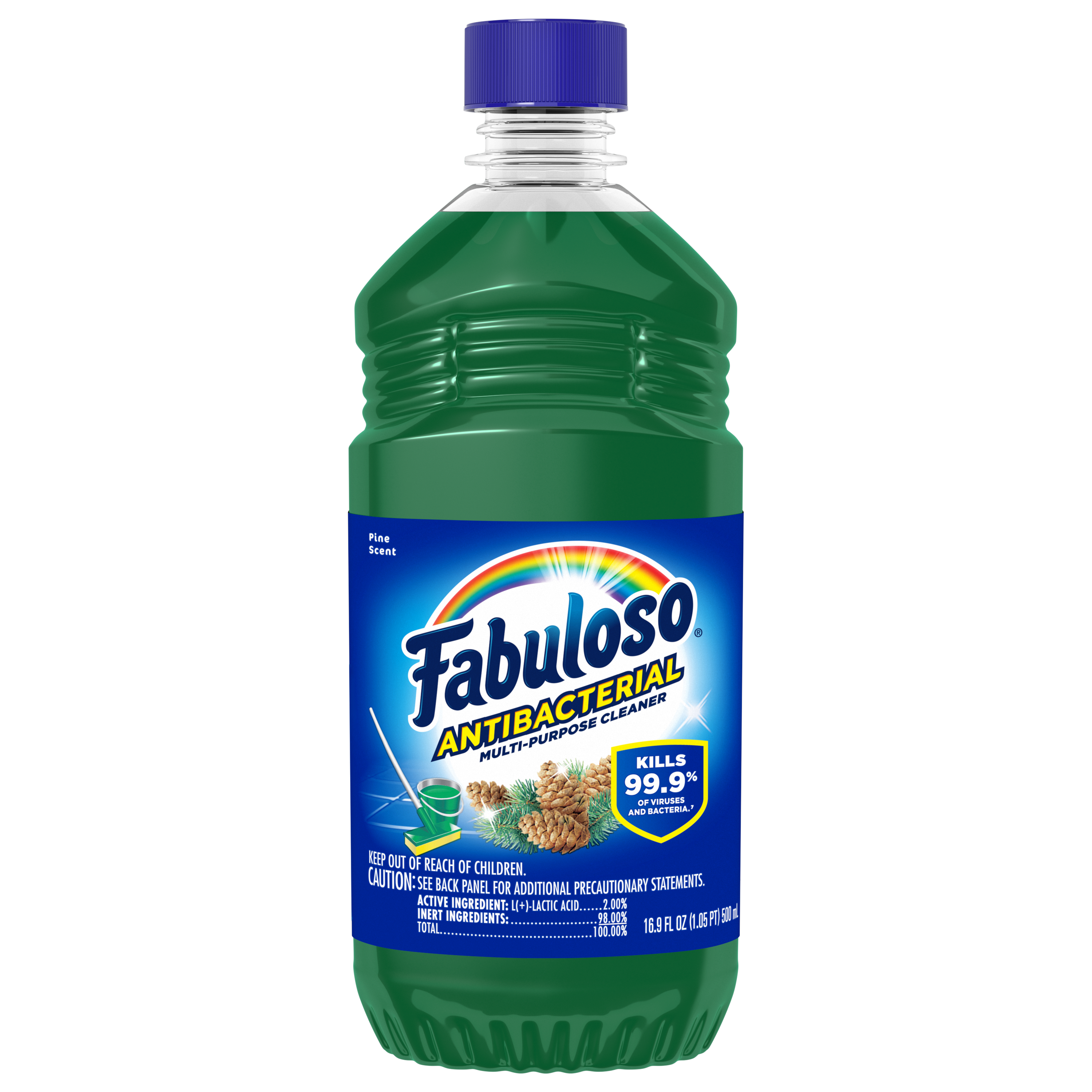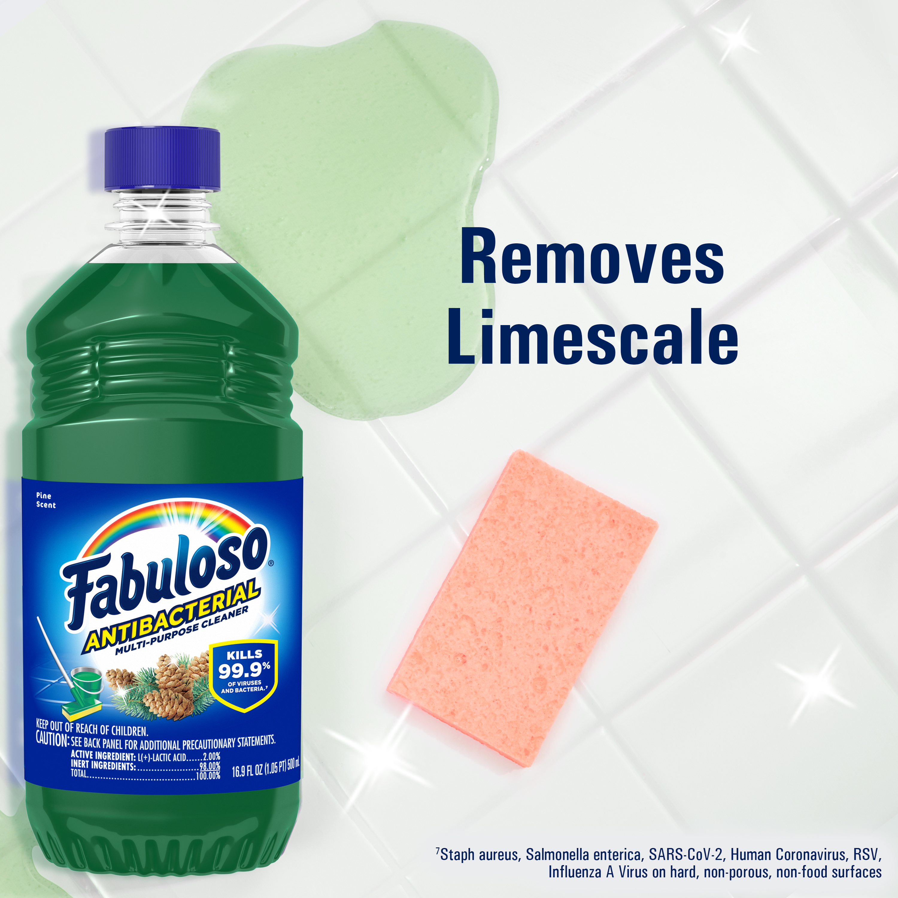 Fabuloso Antibacterial multi-purpose cleaner cuts through grease and removes limescale. It also kills 99.9% of viruses and bacteria 7. Fabuloso Antibacterial Pine is an all in one cleaner that can be used on floors, walls, bathrooms, living rooms, and almost every hard surface. For visibly soiled surfaces, preclean surfaces before sanitizing or disinfecting.