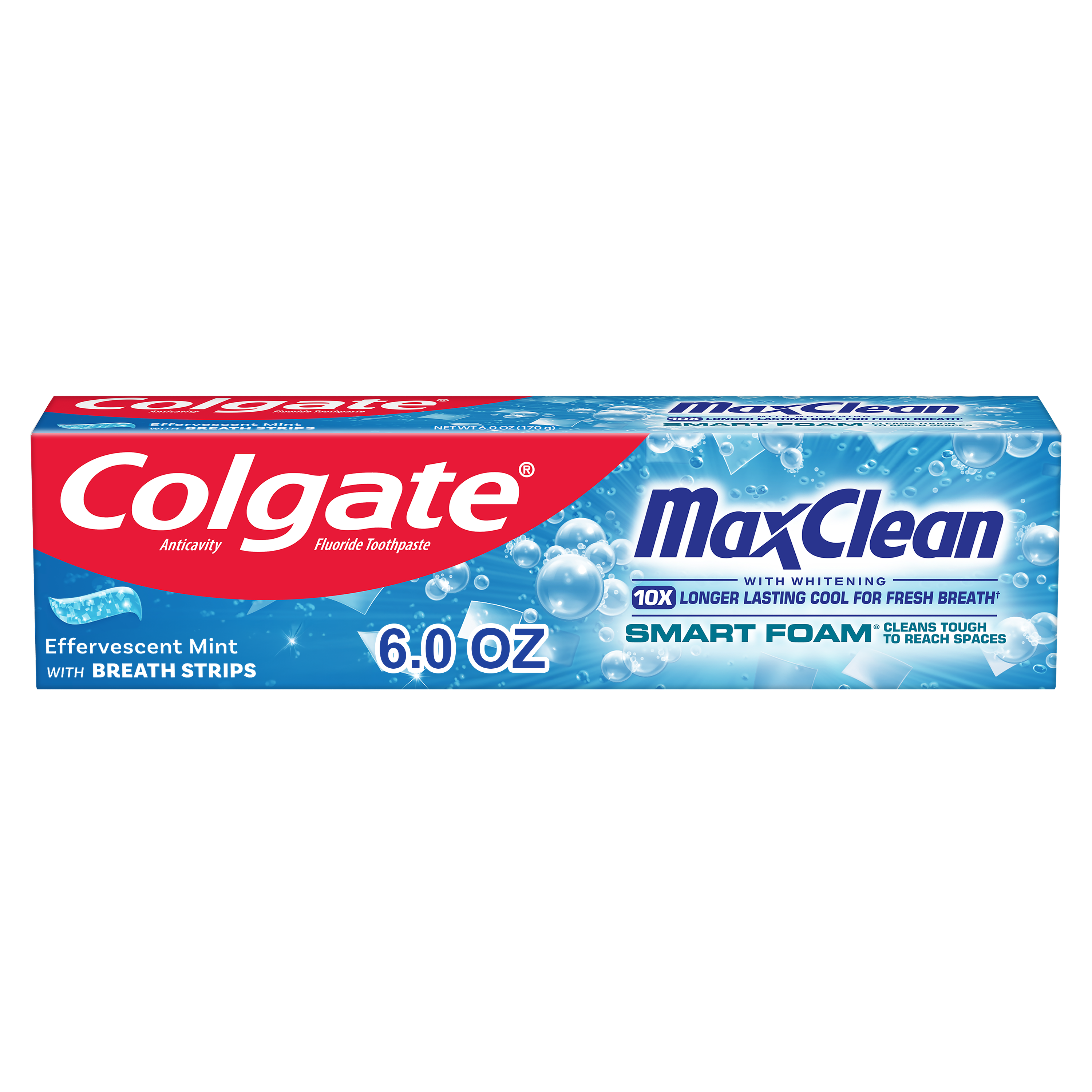 Colgate Max Clean Smart Foam Whitening Toothpaste, Effervescent Mint, 6.0 oz