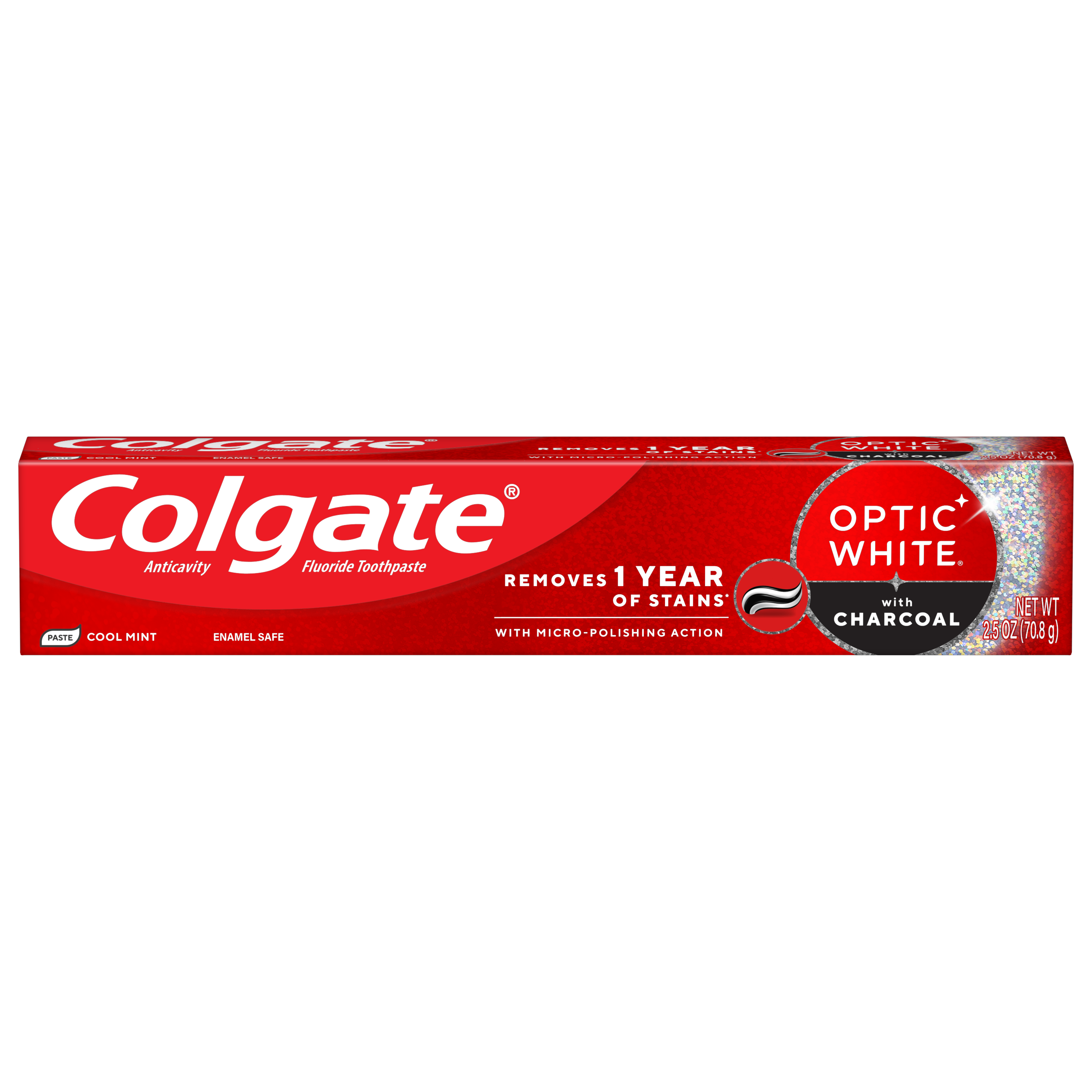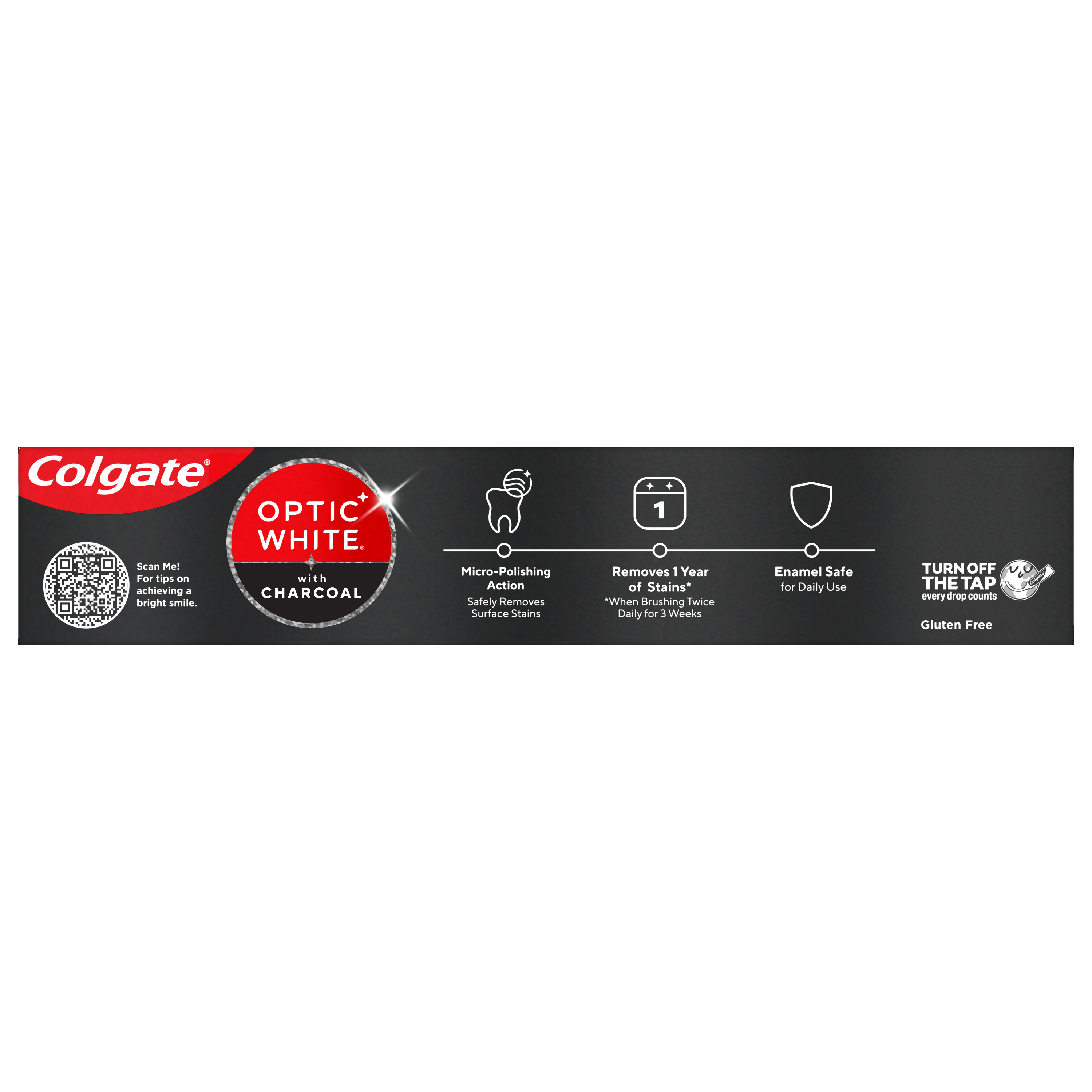Colgate Optic White with Charcoal Teeth Whitening Toothpaste, Anticavity Toothpaste with Fluoride, Cool Mint Flavor, 3.8 OZ
