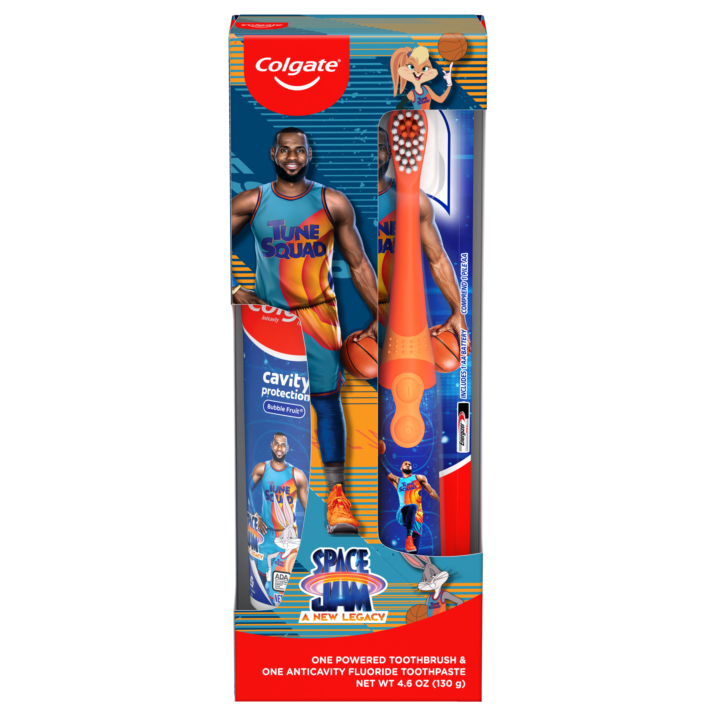 Colgate Kids Toothbrush Set with Toothpaste, Space Jam Gift Set - 1 Battery Tootbrush and 1 Toothpaste