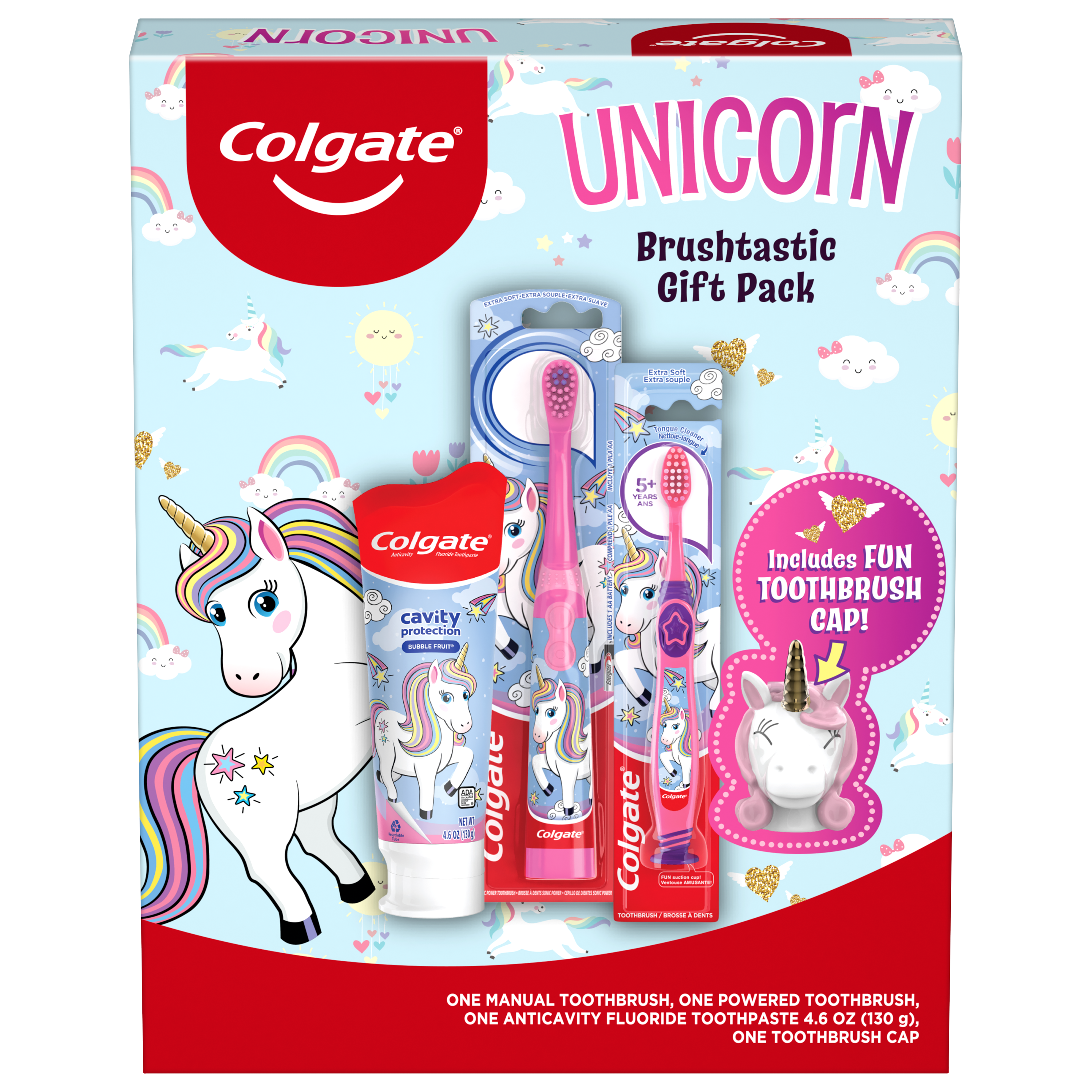 Colgate Kids Toothbrush Set with Toothpaste, Unicorn Gift Set, 1 manual toothbrush, one powered toothbrush and one Toothpaste