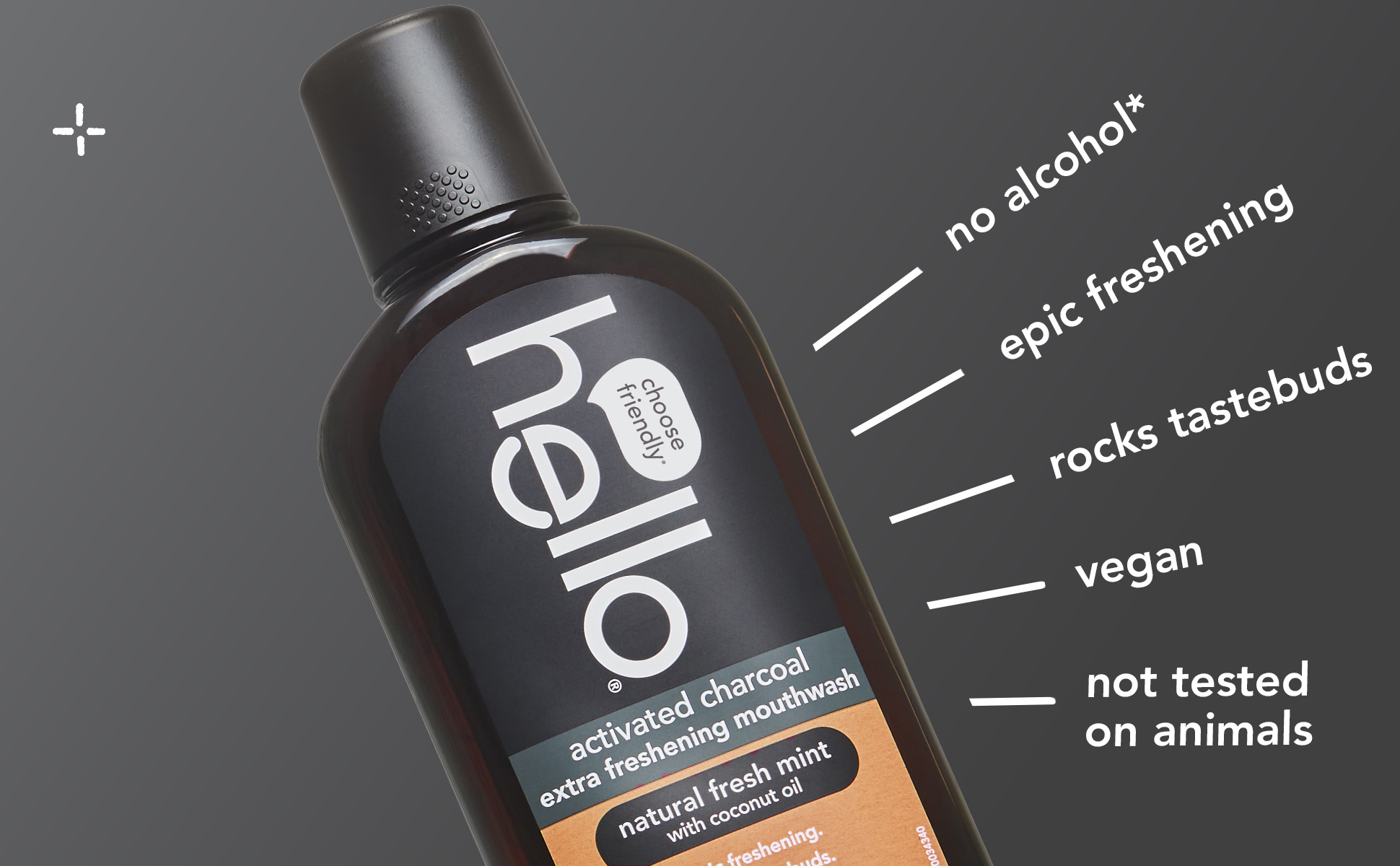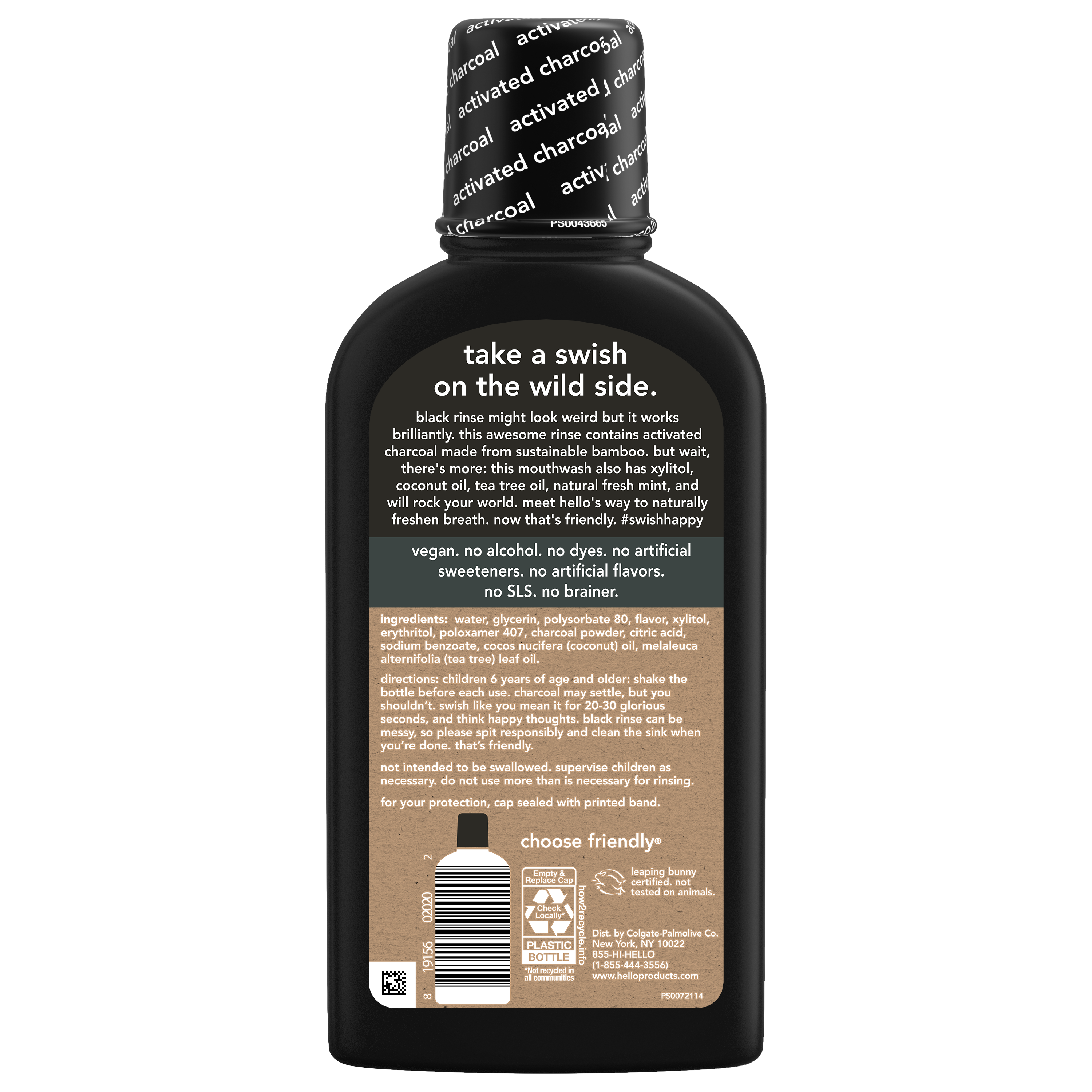 SKU 61027715 Consumer Unit - GTIN 00819156020202 Case - GTIN 30819156020203 Product Category Oral Care Product Sub Category Mouthwash Product Equity (Brand) hello Product Sub Brand Hello Adult MW Product Title hello Alcohol Free Activated Charcoal Mouthwash, Natural Fresh Mint, 16 Fl Oz Bottle Product Description Reinvigorate your senses with the epic freshening power of hello Alcohol Free Activated Charcoal Mouthwash, a minty alcohol free mouthwash* that will rock your taste buds. This thoughtfully crafted non-alcoholic mint mouthwash helps keep your mouth feeling cool, clean, and irresistibly refreshed. hello Activated Charcoal Mouthwash is a fresh breath mouthwash that delivers a rush of freshness with every swish. Whether you have a big day ahead of you or just need a little extra zing in your day, hello Activated Charcoal Mouthwash ensures you’re always on top of your game. hello Charcoal Alcohol Free Mouthwash is vegan and made with no artificial flavors or artificial sweeteners, no dyes, no parabens, no gluten, and no SLS, making this hello mouthwash for bad breath a no-brainer. Plus, this non-alcoholic oral rinse is not tested on animals. Get ready to rock your taste buds with extra freshening hello Activated Charcoal Mouthwash. *this formula does not contain ethyl alcohol eCommerce Copy- Long Description say hello to naturally friendly activated charcoal extra freshening mouthwash. thoughtfully formulated with activated charcoal (made from sustainable bamboo), coconut oil, tea tree oil, fresh mint to freshen breath, and xylitol because it rocks. but buckle-up, there's more goodness: hello contains no alcohol, no artificial sweeteners, no artificial flavors, no dyes and no SLS. as if that weren't enough magic for one bottle, hello is also vegan and not tested on animals (leaping bunny certified). finally, a naturally friendly and healthy way to show your mouth some love. Bullet 1 Includes one (1) 16 fl oz bottle of hello Activated Charcoal Mouthwash, Natural Fresh Mint Alcohol Free Mouthwash* Bullet 2 Experience epic minty freshness without the harshness using this alcohol free hello mouthwash Bullet 3 Get ready to rock your taste buds with hello Activated Charcoal Mouthwash, an epic mint mouthwash that reinvigorates the senses Bullet 4 Keep your breath feeling next-level fresh with this minty hello Alcohol Free Activated Charcoal Mouthwash Bullet 5 This vegan mouthwash is made with no artificial flavors, sweeteners, parabens, dyes, gluten, or SLS Albertsons RPC 50150125 Albertsons URL https://www.albertsons.com/shop/product-details.50150125.html